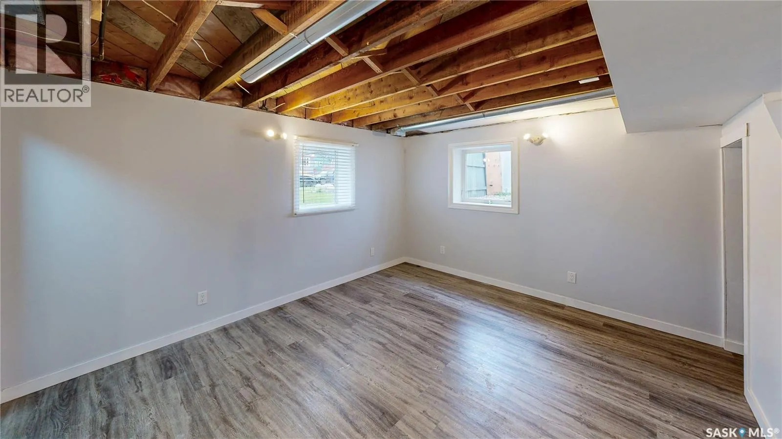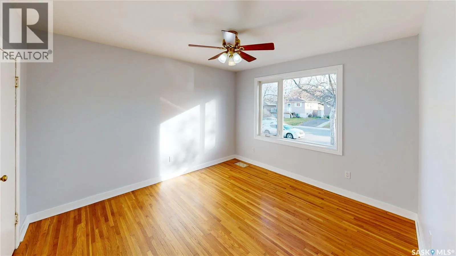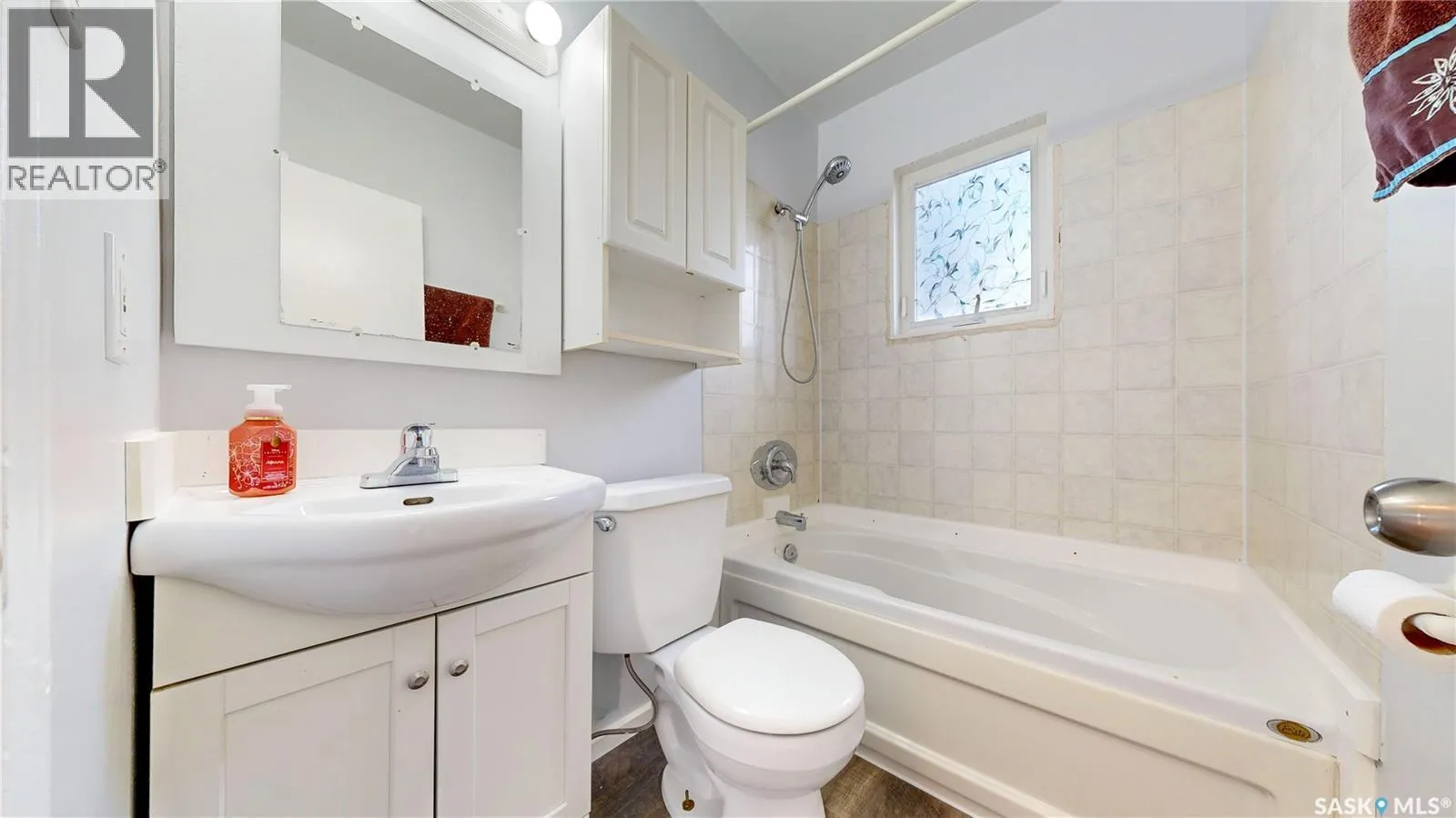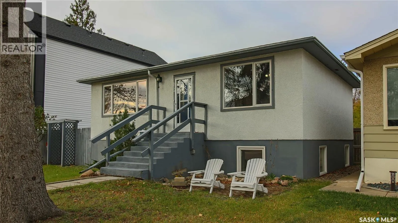 Welcome to 2736 Reynolds Street in the family friendly Arnhem Place neighborhood just steps away from Candy Cane Park, Wascana Park, The Science Center with attached IMAX Theatre, and all the walking and biking and cross-country skiing baths around the Wascana Centre. Both Miller and Balfour high schools and the strip mall anchored by Neilâs Independent grocery store are also close by, making this an extremely convenient and vibrant place to live! This 1952 built, 832 square foot, raised bungalow has 4 bedrooms and 2 bathrooms and sits on double lots measuring 50 x 125 with a back alley lane. The front yard has a lawn, a large tree, and a cute sitting area. The huge backyard is fully fenced with a lawn, trees and shrubs, an extra tall shed, and a single detached garage! The back of the fence features a double gate with a parking pad that is great for RV or additional vehicle parking! You enter the home into the foyer with a handy coat closet to store your outdoor gear. The living room has original hardwood and is super bright thanks to the large picture window! There are two good sized bedrooms on the main as well as a 4 piece bathroom. The kitchen has a pantry for extra storage and a fair amount of cabinets and countertop space. Thereâs modern vinyl plank flooring here, and the fridge and stove are included. Downstairs, the rec room makes an excellent second living space or play area. As the house sits high out of the ground the large windows make it extra bright and it doesnât even feel like youâre in a basement here. The combined laundry and bathroom feels almost spa-like with a deep soaker jet tub, cupboard and counter space. The washer and dryer are both included as well. Finishing off the home are two more bedrooms also with large windows. This home also features an owned high efficiency furnace and a 100 amp electrical panel! (id:27476)