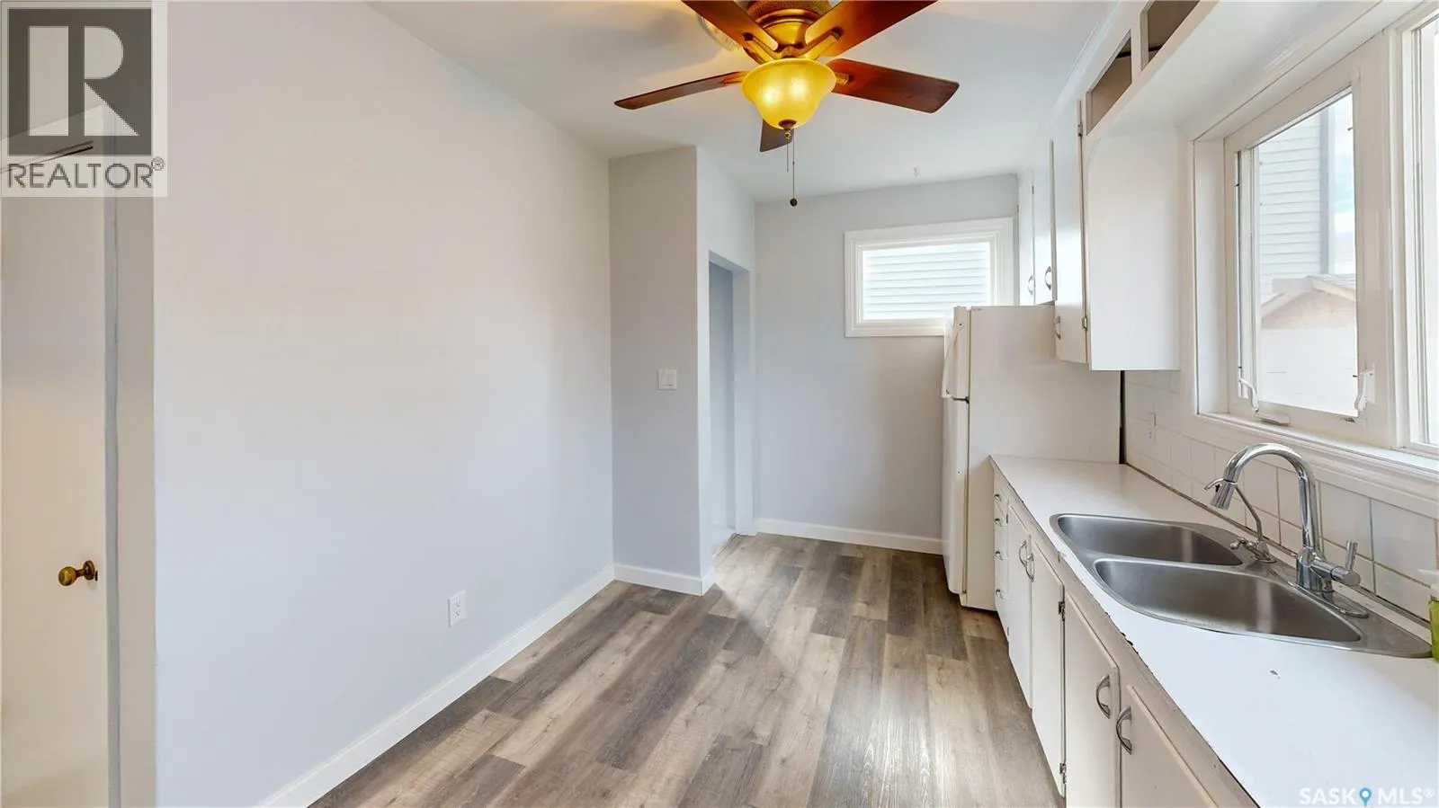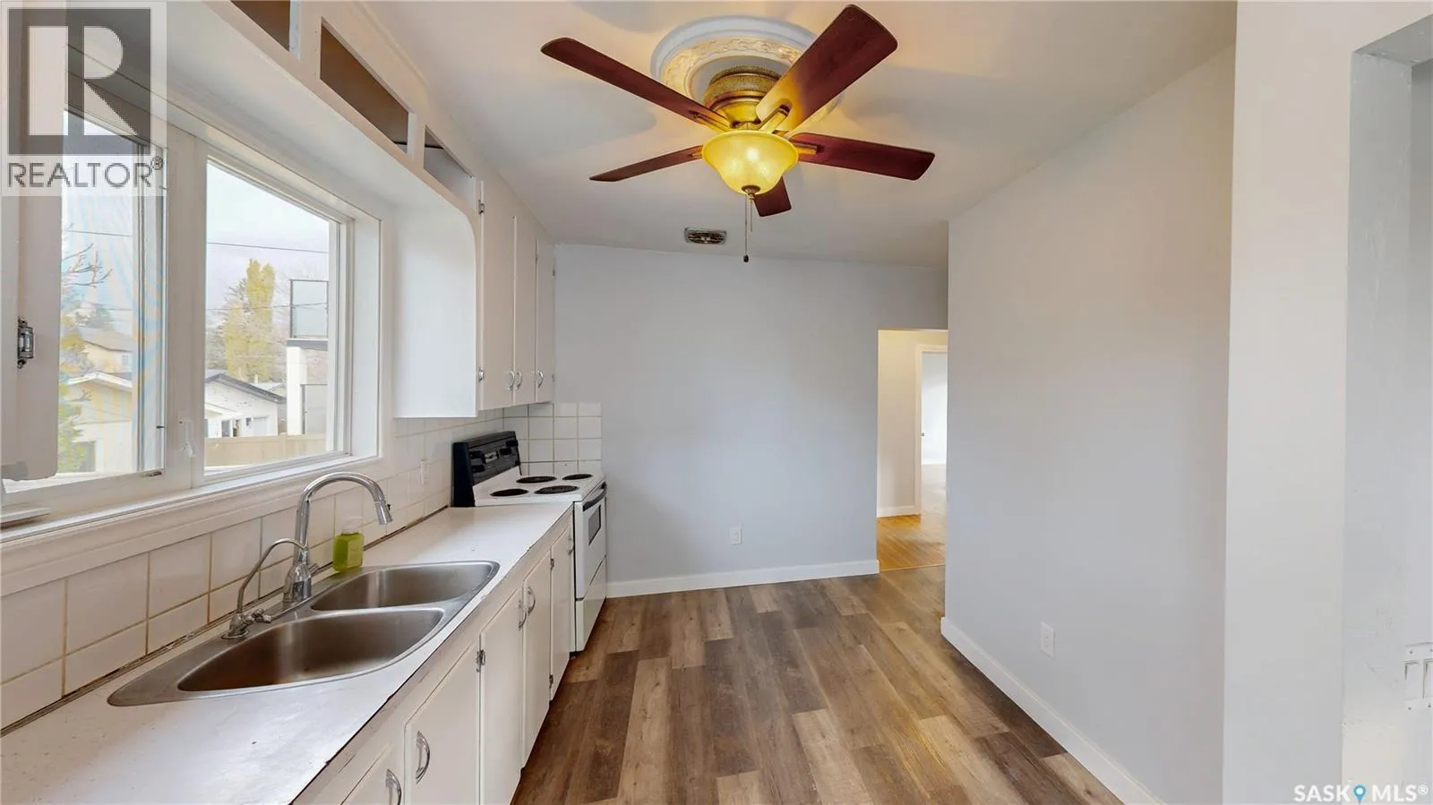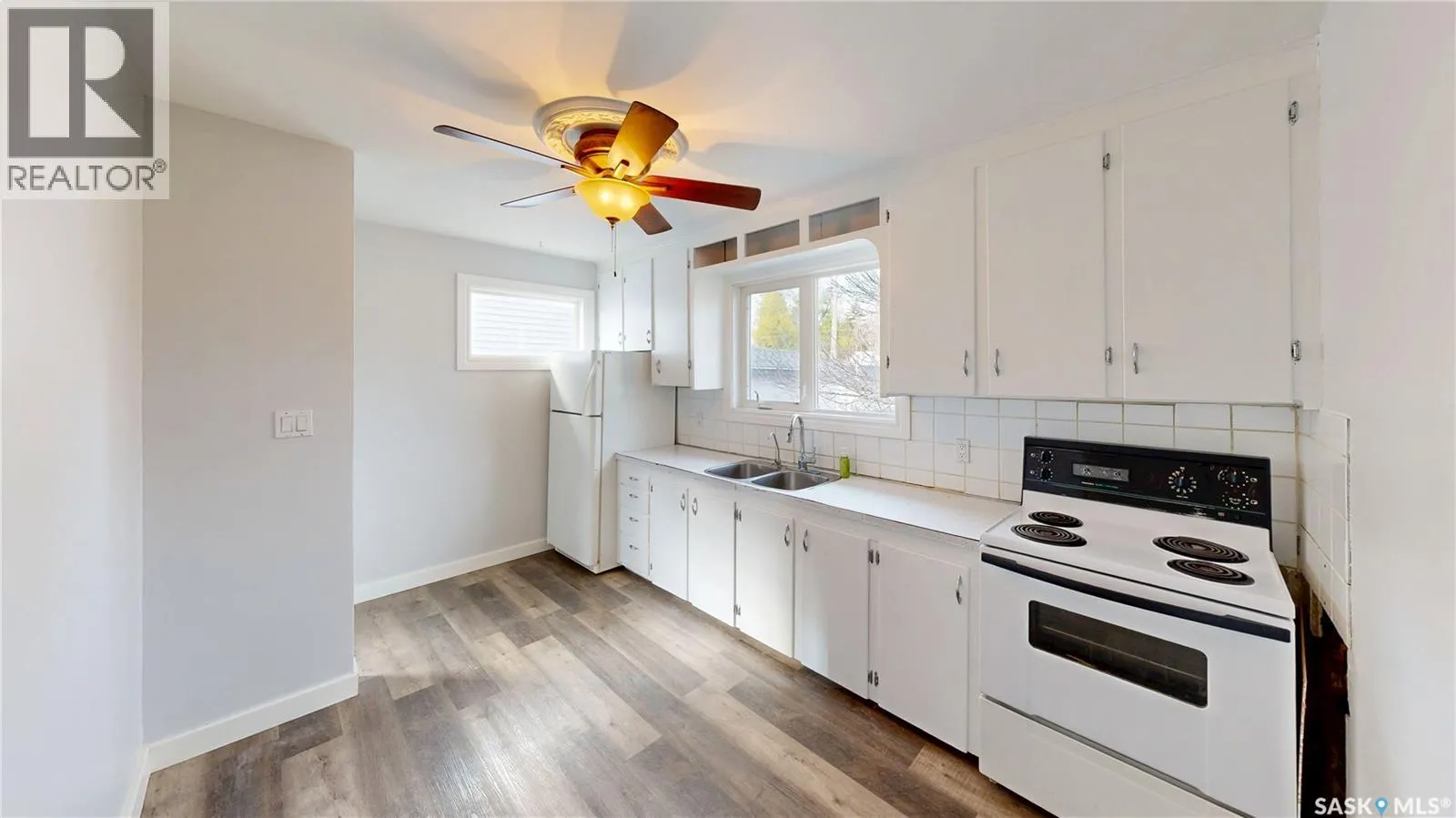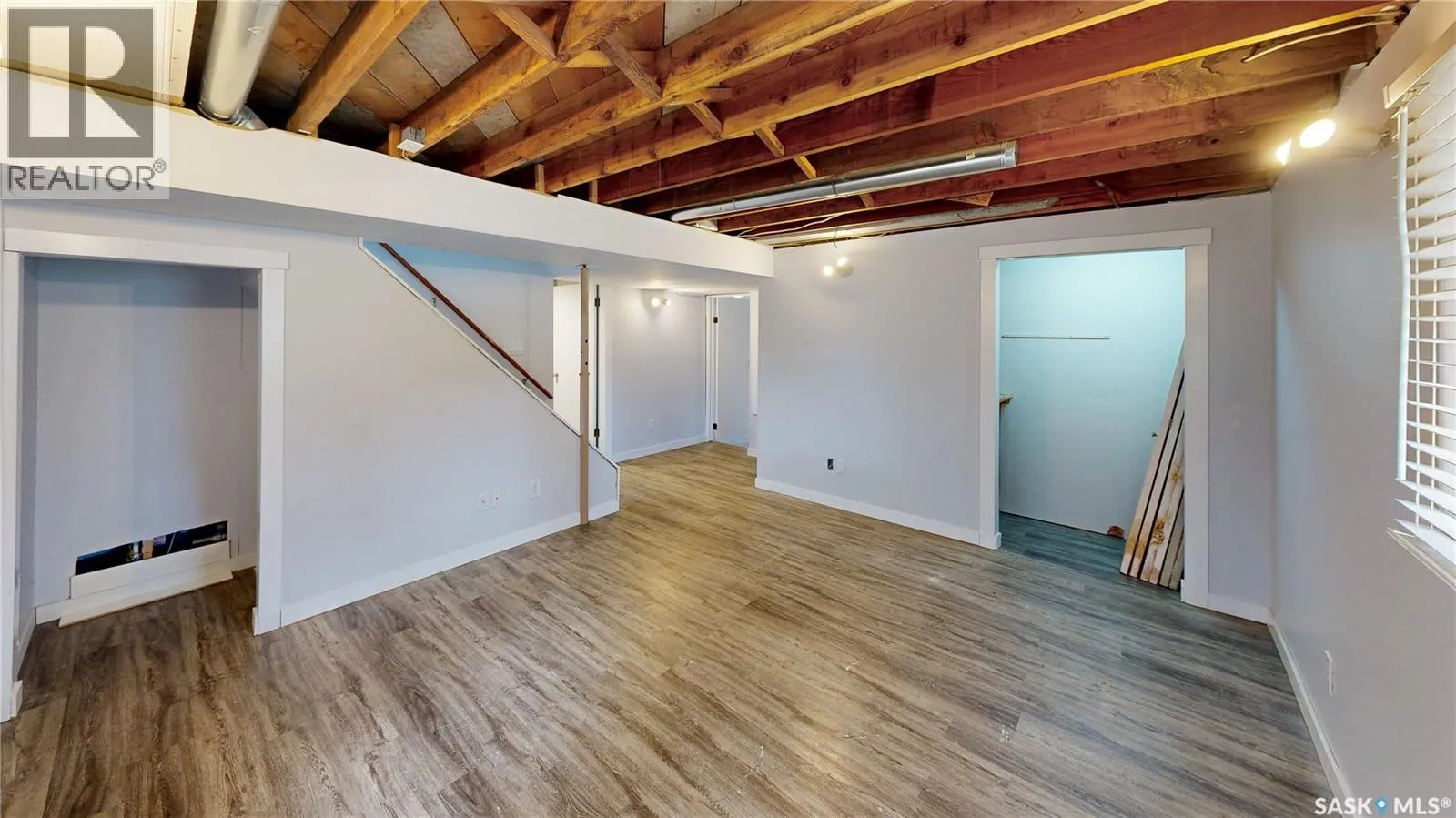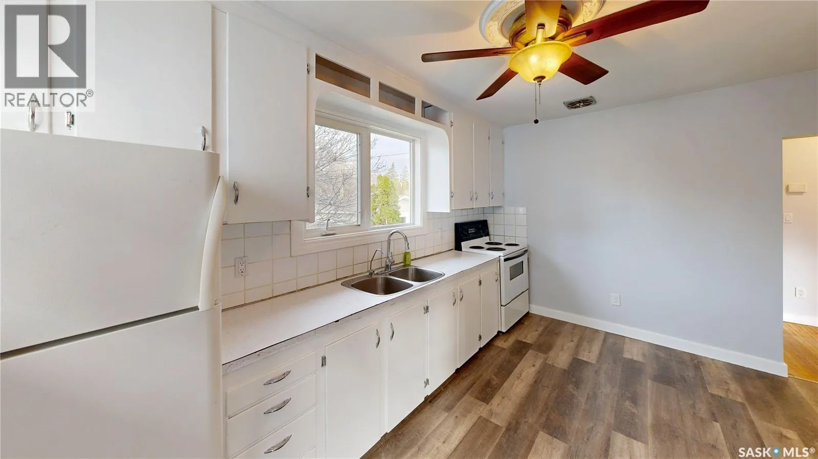 Welcome to 2736 Reynolds Street in the family friendly Arnhem Place neighborhood just steps away from Candy Cane Park, Wascana Park, The Science Center with attached IMAX Theatre, and all the walking and biking and cross-country skiing baths around the Wascana Centre. Both Miller and Balfour high schools and the strip mall anchored by Neilâs Independent grocery store are also close by, making this an extremely convenient and vibrant place to live! This 1952 built, 832 square foot, raised bungalow has 4 bedrooms and 2 bathrooms and sits on double lots measuring 50 x 125 with a back alley lane. The front yard has a lawn, a large tree, and a cute sitting area. The huge backyard is fully fenced with a lawn, trees and shrubs, an extra tall shed, and a single detached garage! The back of the fence features a double gate with a parking pad that is great for RV or additional vehicle parking! You enter the home into the foyer with a handy coat closet to store your outdoor gear. The living room has original hardwood and is super bright thanks to the large picture window! There are two good sized bedrooms on the main as well as a 4 piece bathroom. The kitchen has a pantry for extra storage and a fair amount of cabinets and countertop space. Thereâs modern vinyl plank flooring here, and the fridge and stove are included. Downstairs, the rec room makes an excellent second living space or play area. As the house sits high out of the ground the large windows make it extra bright and it doesnât even feel like youâre in a basement here. The combined laundry and bathroom feels almost spa-like with a deep soaker jet tub, cupboard and counter space. The washer and dryer are both included as well. Finishing off the home are two more bedrooms also with large windows. This home also features an owned high efficiency furnace and a 100 amp electrical panel! (id:27476)