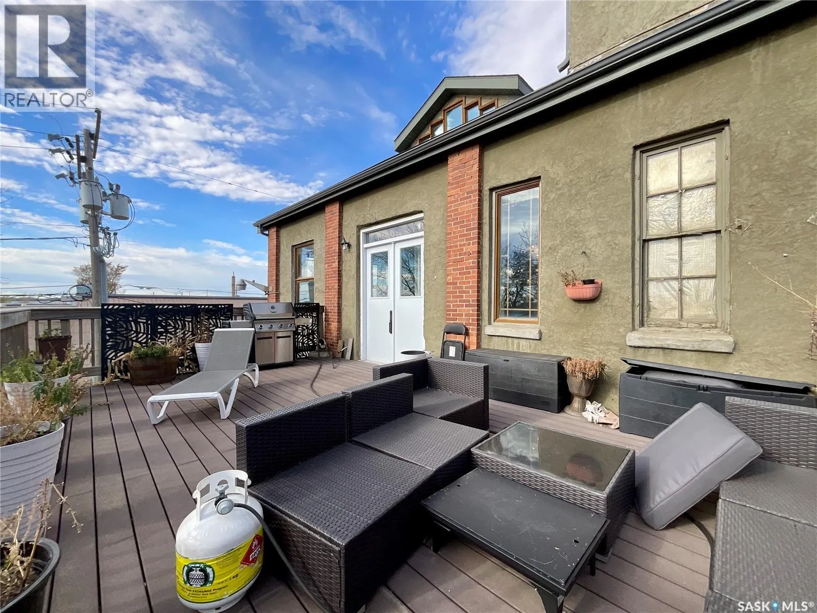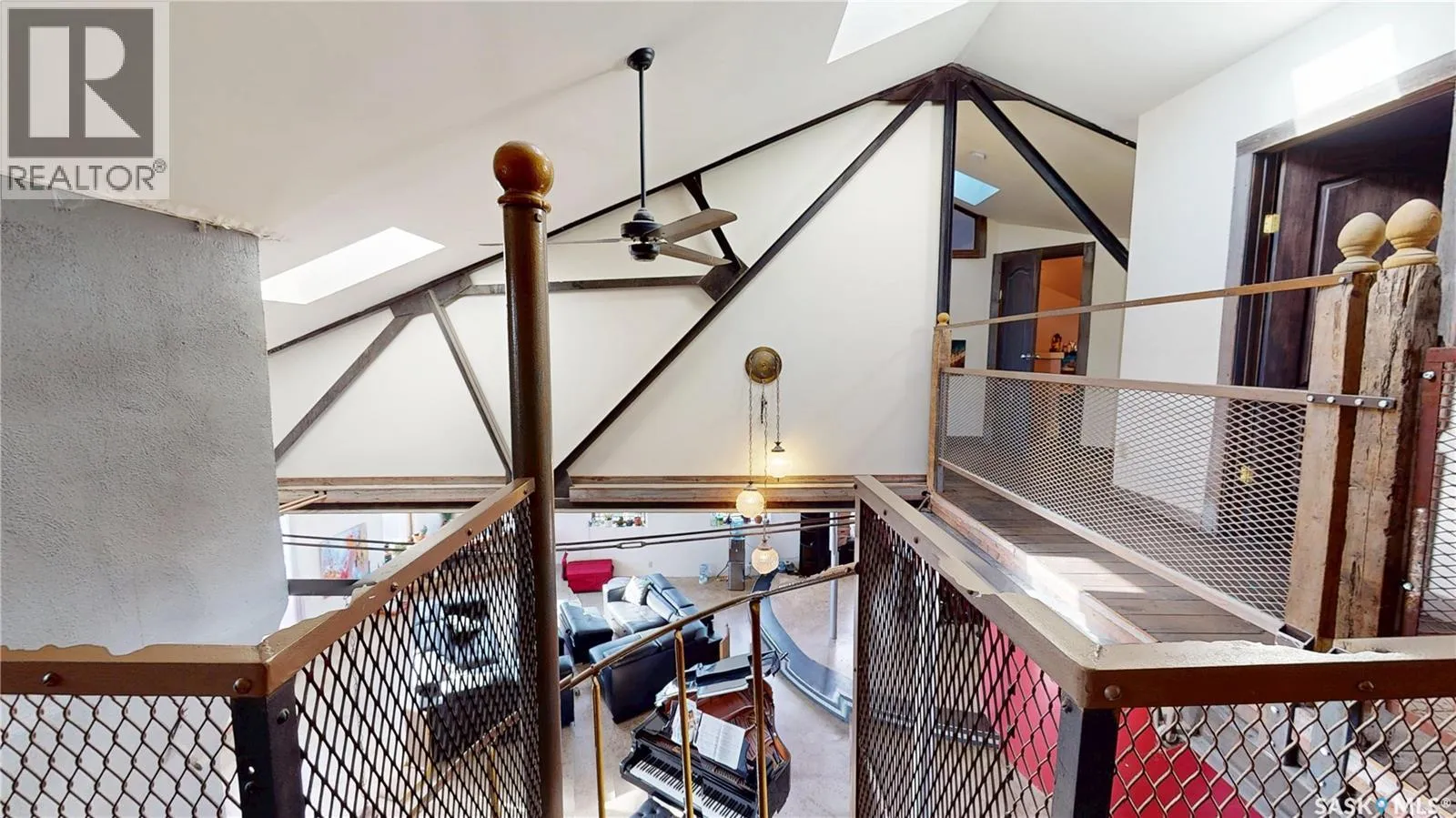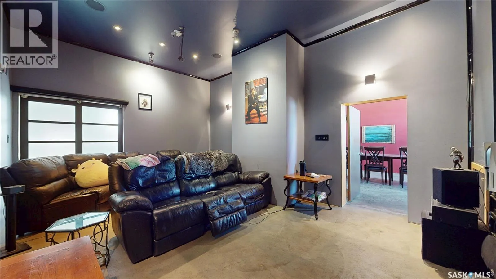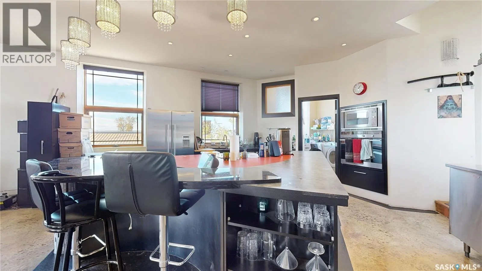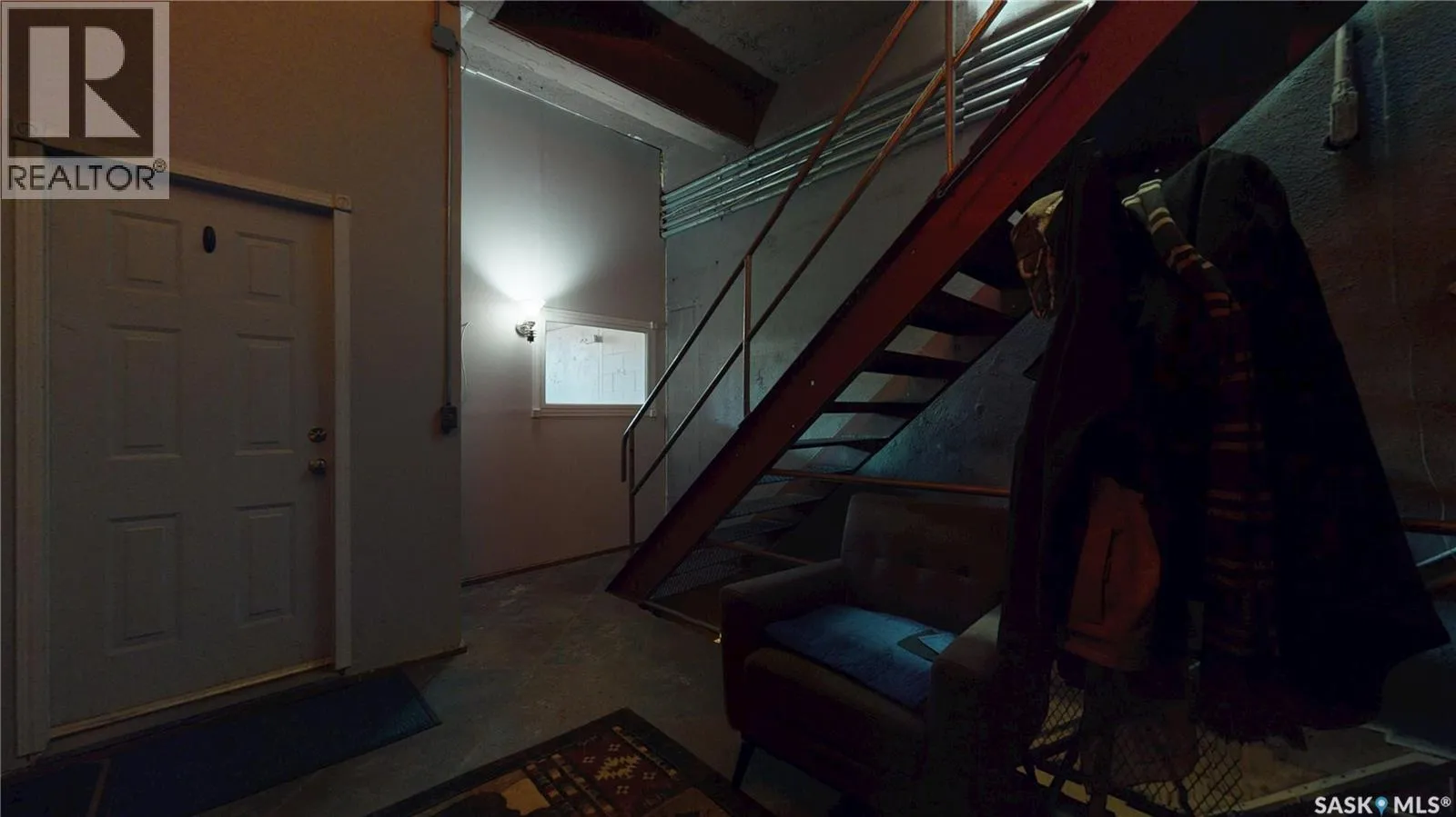 Welcome to one of Regina's most distinctive and impressive Warehouse District residences. This exceptional condo offers over 3,500 sq. ft. of living space, blending historic industrial charm with modern luxury. Perfect for professionals seeking a bold, inspiring environment, this unique property combines architectural character with practical design for both home and work life. Inside, you're greeted by soaring vaulted ceilings, 36 oversized windows, and multiple skylights, bathing every corner in natural light. The freight elevator serves as both a functional feature and a statement piece of the home's heritage. A spacious private balcony provides an ideal retreat for outdoor dining or relaxing under the city skyline - an incredibly rare amenity in the Warehouse District. Designed for flexibility, the open-concept floor plan features expansive living and dining areas, a large professional office, and a soundproof theatre room perfect for entertainment or presentations. The primary suite offers 2 generous walk-in closets and a spa-inspired en-suite with dual shower heads. High-end finishes, and architectural details highlight the unique character of this one-of-a-kind home. Additional features include a two-car attached garage, in-suite laundry, pet friendly policies, and proximity to downtown dining, breweries, and fitness studios. More than just a condo, this property represents an exclusive opportunity to live, work, and entertain in style at the heart of Regina's Warehouse community. 3,500+ sq. ft., 2 Bedrooms, Loft, 3 Bathrooms, 2-car Garage, Private Balcony, Pet Friendly, Low Condo Fees, In Floor Heating (id:27476)