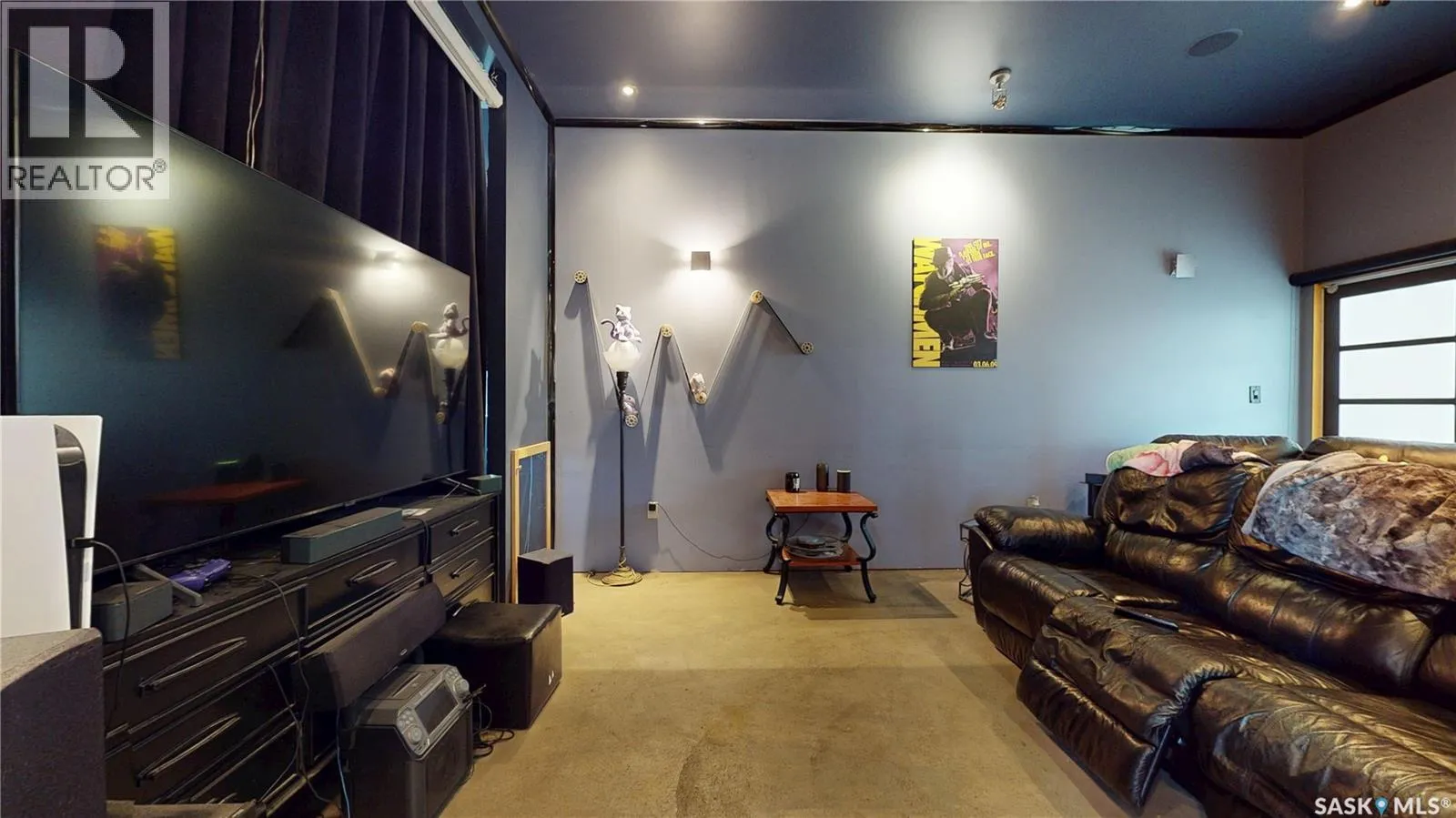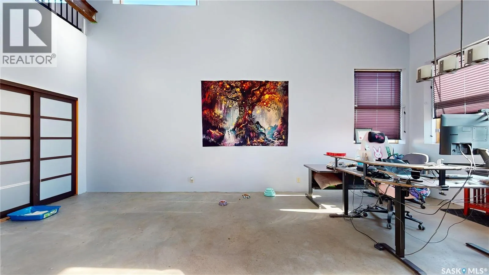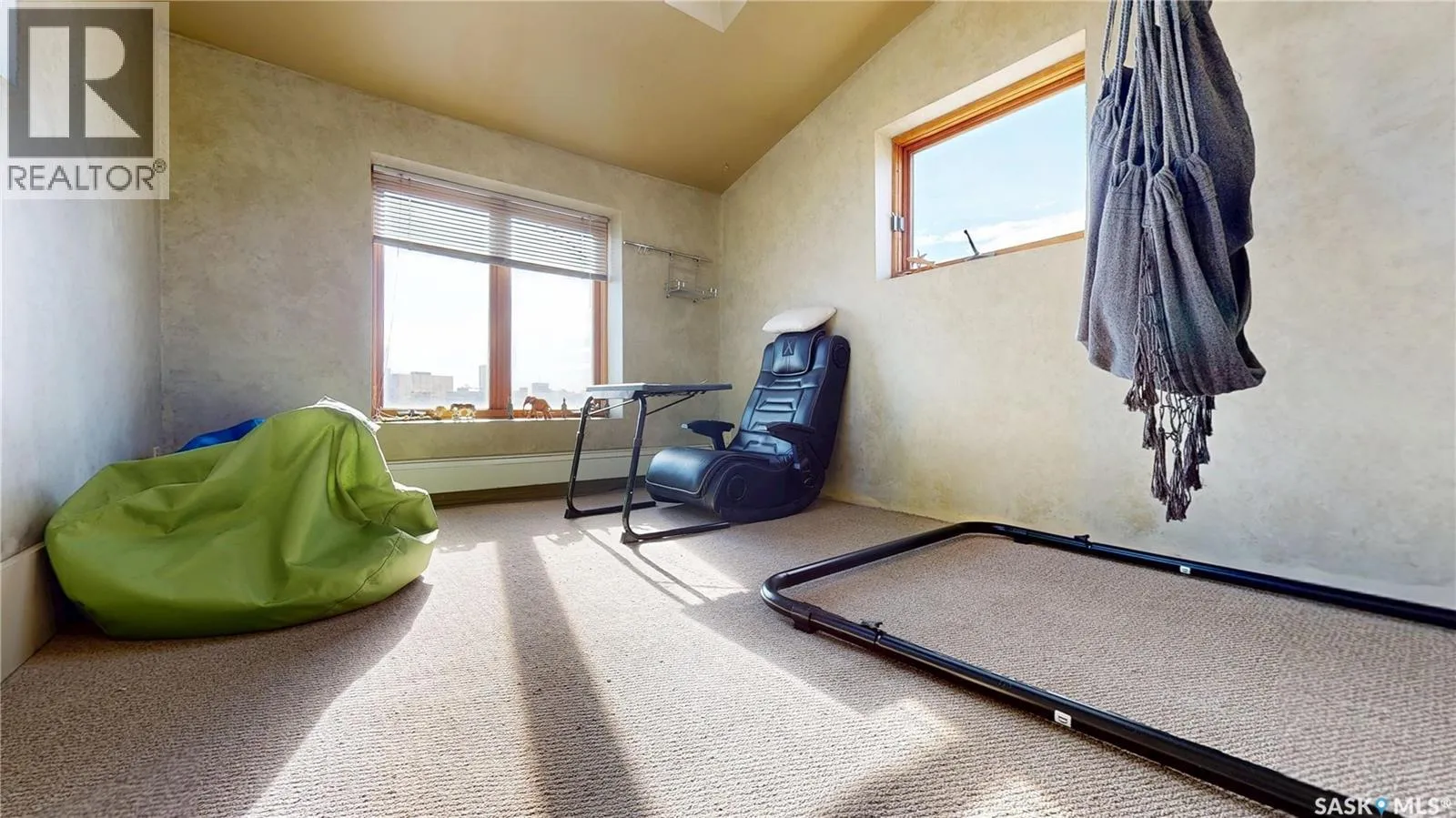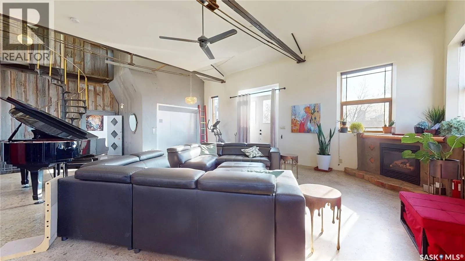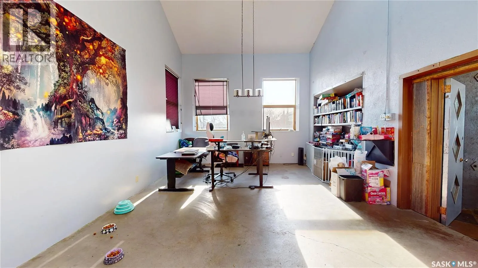 Welcome to one of Regina's most distinctive and impressive Warehouse District residences. This exceptional condo offers over 3,500 sq. ft. of living space, blending historic industrial charm with modern luxury. Perfect for professionals seeking a bold, inspiring environment, this unique property combines architectural character with practical design for both home and work life. Inside, you're greeted by soaring vaulted ceilings, 36 oversized windows, and multiple skylights, bathing every corner in natural light. The freight elevator serves as both a functional feature and a statement piece of the home's heritage. A spacious private balcony provides an ideal retreat for outdoor dining or relaxing under the city skyline - an incredibly rare amenity in the Warehouse District. Designed for flexibility, the open-concept floor plan features expansive living and dining areas, a large professional office, and a soundproof theatre room perfect for entertainment or presentations. The primary suite offers 2 generous walk-in closets and a spa-inspired en-suite with dual shower heads. High-end finishes, and architectural details highlight the unique character of this one-of-a-kind home. Additional features include a two-car attached garage, in-suite laundry, pet friendly policies, and proximity to downtown dining, breweries, and fitness studios. More than just a condo, this property represents an exclusive opportunity to live, work, and entertain in style at the heart of Regina's Warehouse community. 3,500+ sq. ft., 2 Bedrooms, Loft, 3 Bathrooms, 2-car Garage, Private Balcony, Pet Friendly, Low Condo Fees, In Floor Heating (id:27476)