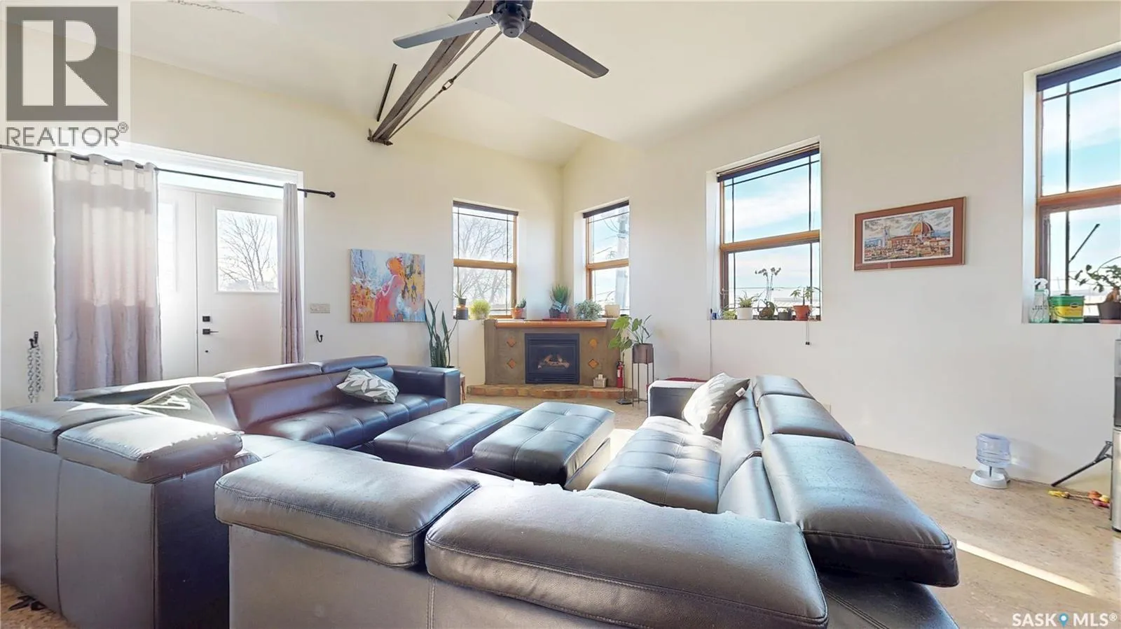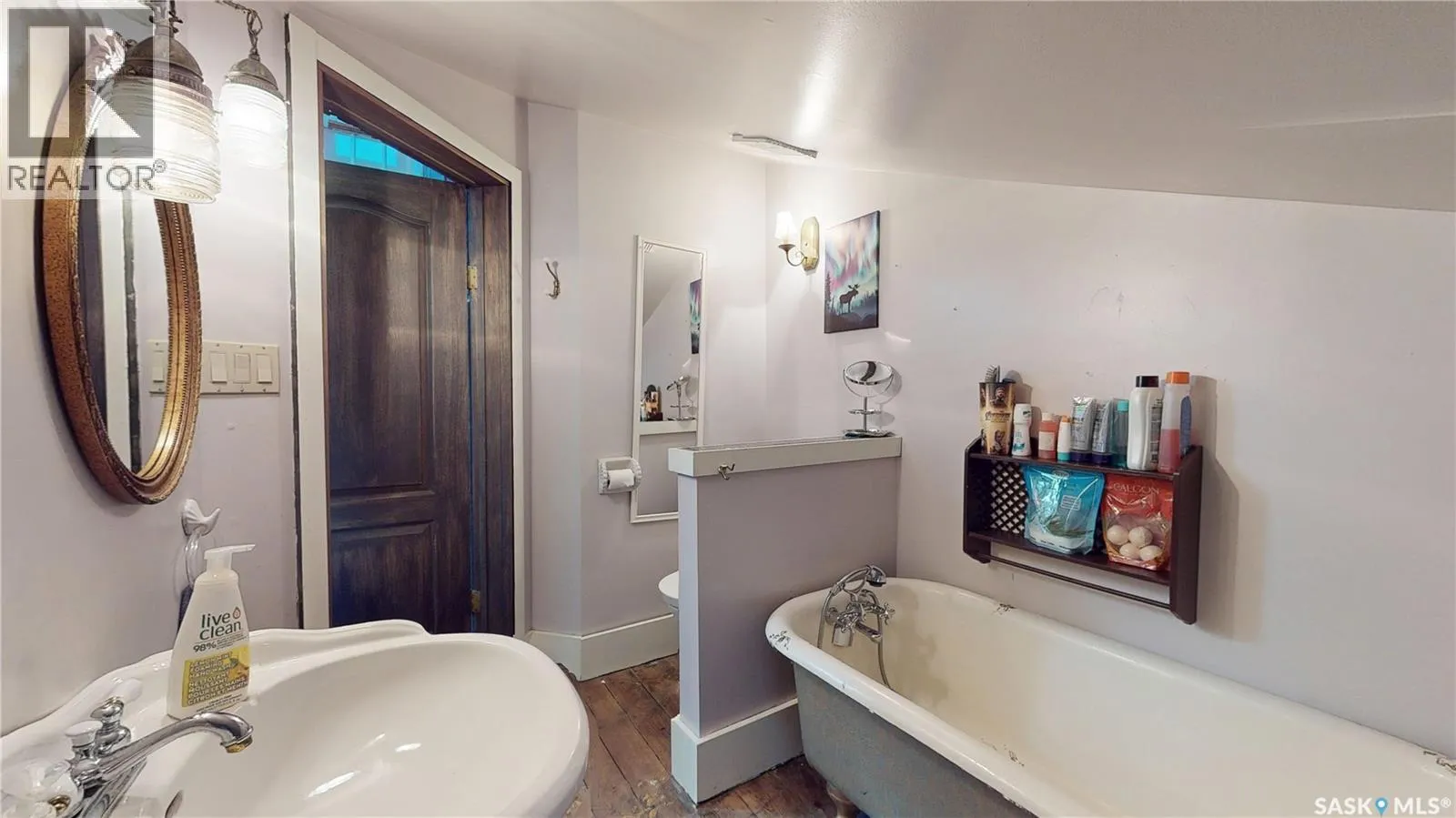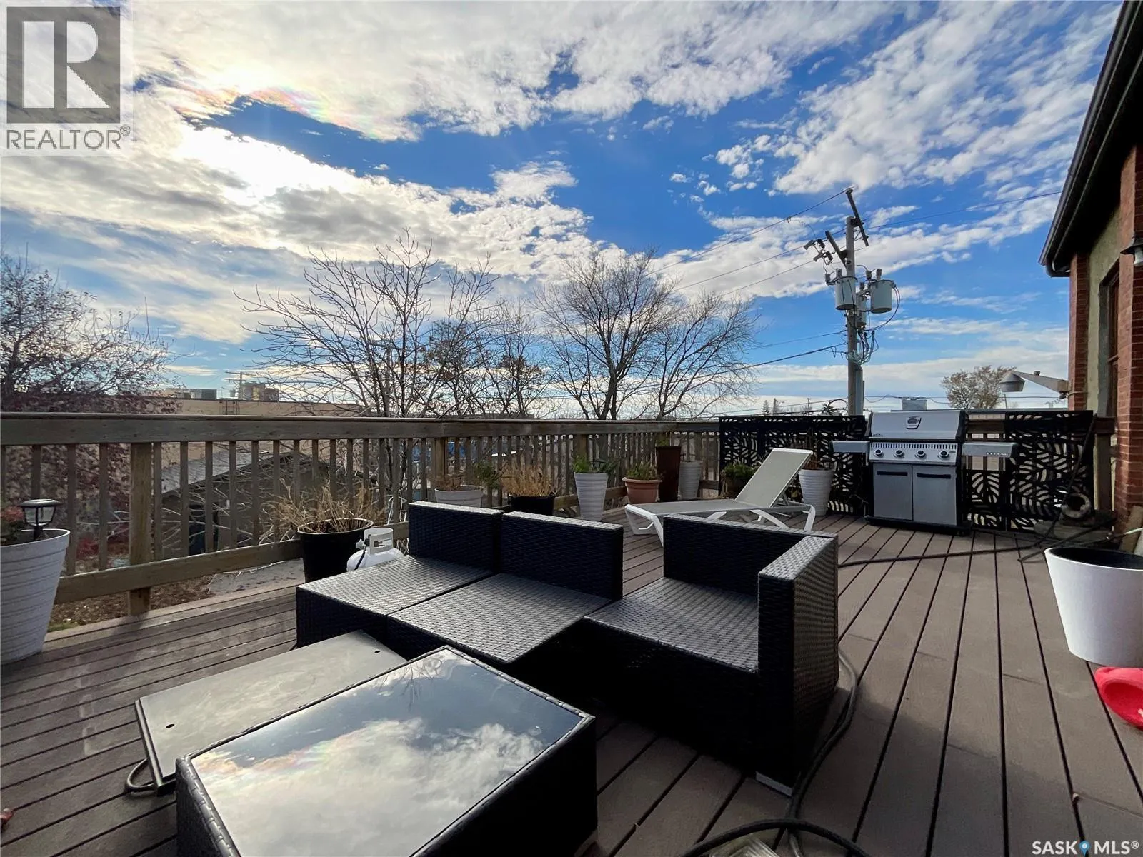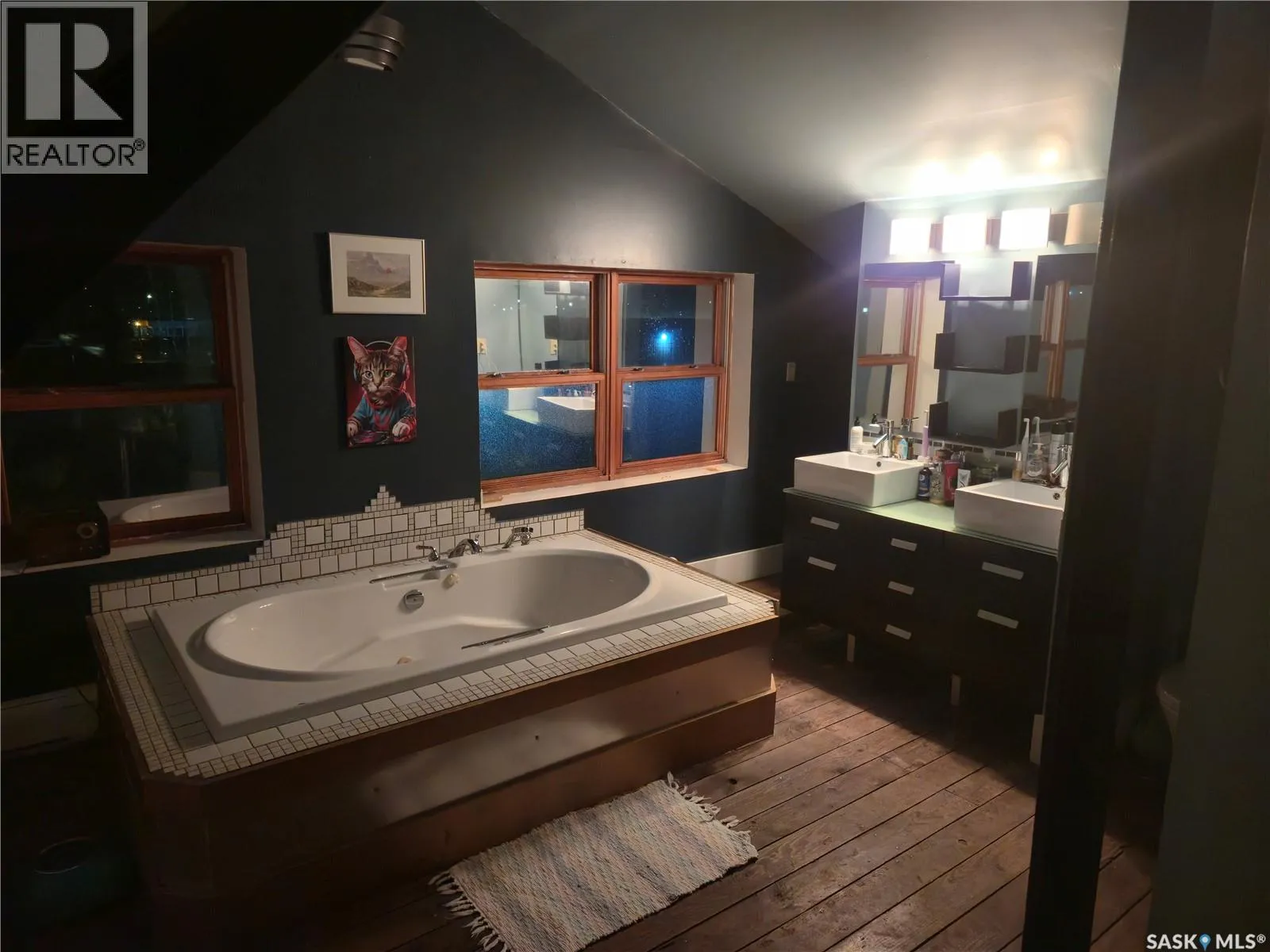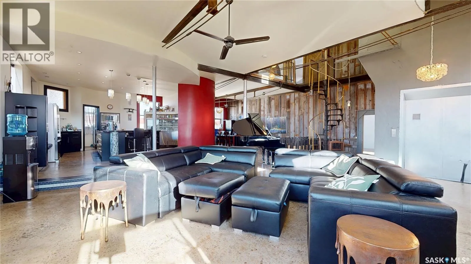 Welcome to one of Regina's most distinctive and impressive Warehouse District residences. This exceptional condo offers over 3,500 sq. ft. of living space, blending historic industrial charm with modern luxury. Perfect for professionals seeking a bold, inspiring environment, this unique property combines architectural character with practical design for both home and work life. Inside, you're greeted by soaring vaulted ceilings, 36 oversized windows, and multiple skylights, bathing every corner in natural light. The freight elevator serves as both a functional feature and a statement piece of the home's heritage. A spacious private balcony provides an ideal retreat for outdoor dining or relaxing under the city skyline - an incredibly rare amenity in the Warehouse District. Designed for flexibility, the open-concept floor plan features expansive living and dining areas, a large professional office, and a soundproof theatre room perfect for entertainment or presentations. The primary suite offers 2 generous walk-in closets and a spa-inspired en-suite with dual shower heads. High-end finishes, and architectural details highlight the unique character of this one-of-a-kind home. Additional features include a two-car attached garage, in-suite laundry, pet friendly policies, and proximity to downtown dining, breweries, and fitness studios. More than just a condo, this property represents an exclusive opportunity to live, work, and entertain in style at the heart of Regina's Warehouse community. 3,500+ sq. ft., 2 Bedrooms, Loft, 3 Bathrooms, 2-car Garage, Private Balcony, Pet Friendly, Low Condo Fees, In Floor Heating (id:27476)