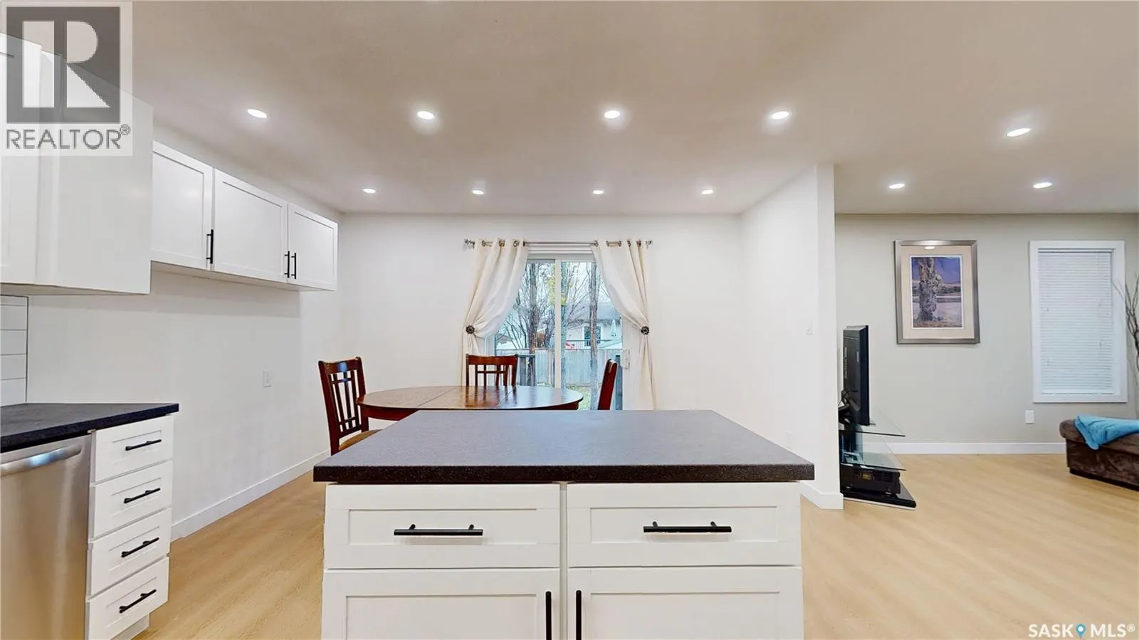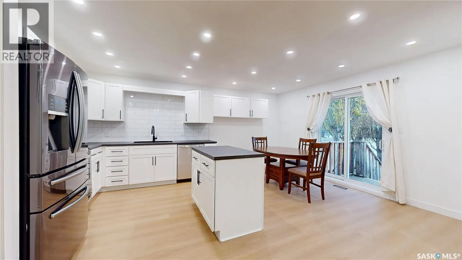 Welcome to this charming and beautifully renovated 3-bedroom bungalow offering modern updates and a bright, open-concept design. The main floor features a spacious kitchen with a center island, refaced cabinetry, and updated countertops â perfect for cooking and entertaining. The adjoining dining area includes patio doors leading to the backyard, while the cozy living room provides a comfortable space to relax and unwind. Throughout the main level, youâll find updated PVC windows (except one bedroom) and stylish laminate flooring, with tile flooring in the completely updated bathroom. The basement is open for future development and currently includes a convenient 3-piece bathroom with a shower and a partially framed and drywalled den â ready for your personal touch. This home also features a high-efficiency furnace for year-round comfort. All appliances are included, making it move-in ready. Outside, thereâs off-street parking on the front driveway and plenty of space in the backyard to add your dream garage. Whether youâre a first-time buyer, downsizing, or looking for a family-friendly home, this property combines modern updates with endless potential. (id:27476)