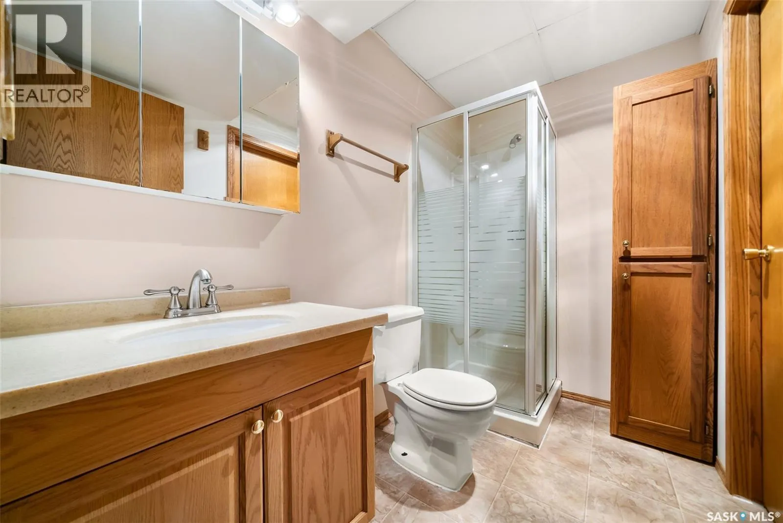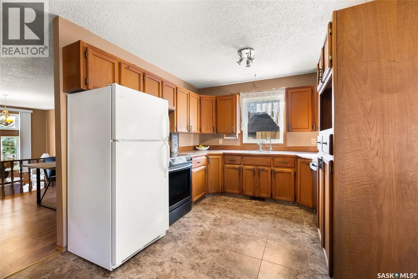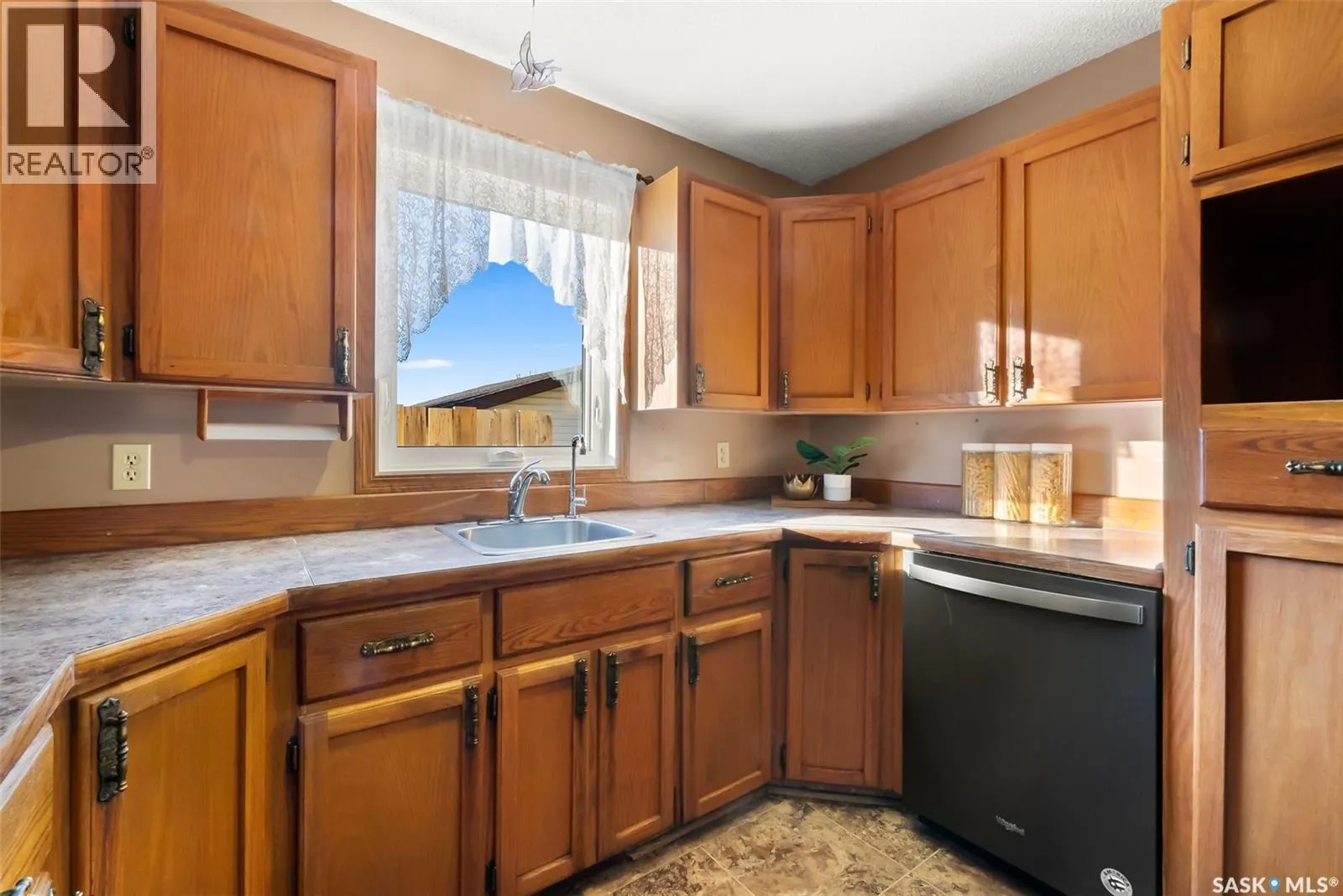 Imagine pulling onto a quiet Wood Meadows crescent, where 3006 E Phaneuf Cres sits with an easy confidence. A 1,320 sq ft bilevel with a double attached garage and a welcoming, brick-and-stucco face. Step inside and the home eases you into a sunken living room, the kind of space where afternoon light lingers and conversations stretch. Dinner flows naturally to the dedicated dining area, and the bright kitchen keeps everything practical: tile flooring, original cabinetry with character, and included appliances (black stainless steel stove and dishwasher). Down the hall, three carpeted bedrooms keep the main level restful and quiet. The primary offers the convenience you wantâits own 3-piece ensuiteâwhile tiled, main-floor laundry keeps you from hauling baskets up and down stairs. Head downstairs and it doesnât feel like âa basementâ at all. Those generous bi-level windows pull in real daylight, so the family area acts like a second main floorâmovie-night cozy, play-space friendly, and weekend-game ready. A wet bar turns snacks into hosting, and the extra bedroom gives guests (or a teen) a comfortable retreat. PVC windows, a high efficient furnace, central air conditioning and recently replaced shingles add peace of mind to this home. Out back, summer lines up nicely: front and rear lawns, a PVC-fenced yard for privacy, a deck for BBQs, and a garden area for your herbs and tomatoes. And when you do head out, youâre minutes to groceries, restaurants, services, parks, and multiple schools (including WF Ready which is right around the corner!). Everything that makes Reginaâs east end so easy to love. 3006 E Phaneuf Cres is that reliable family home with room to make it your ownâmove-in ready today, with a clear path for the touches youâll add tomorrow. (id:27476)