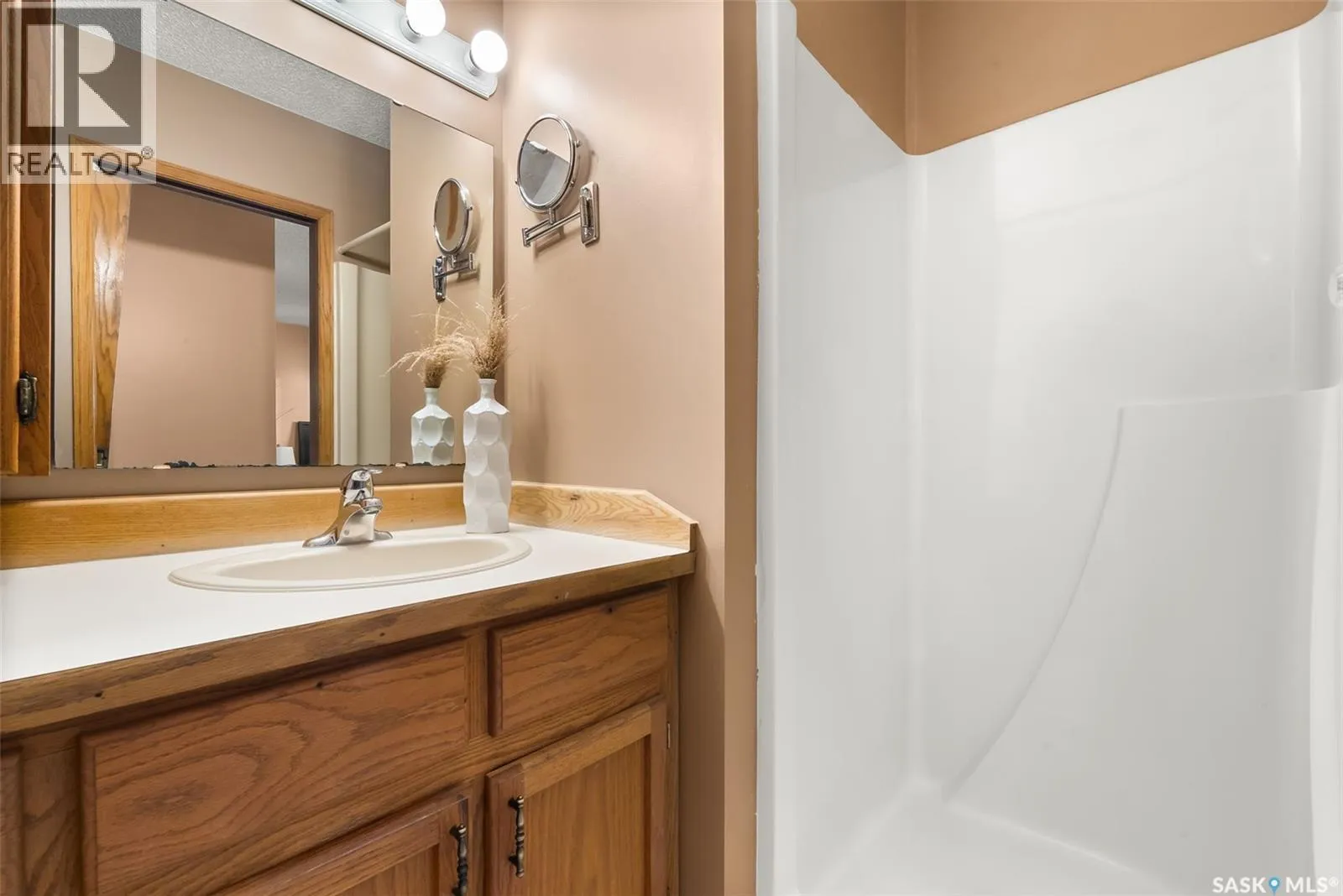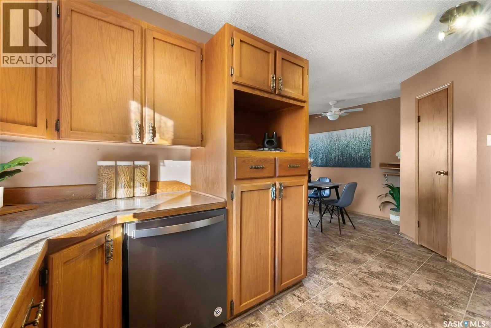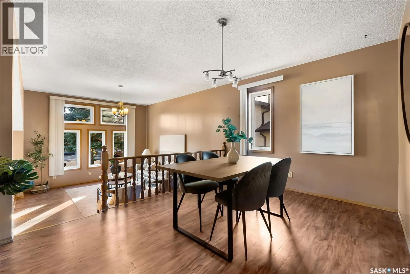 Imagine pulling onto a quiet Wood Meadows crescent, where 3006 E Phaneuf Cres sits with an easy confidence. A 1,320 sq ft bilevel with a double attached garage and a welcoming, brick-and-stucco face. Step inside and the home eases you into a sunken living room, the kind of space where afternoon light lingers and conversations stretch. Dinner flows naturally to the dedicated dining area, and the bright kitchen keeps everything practical: tile flooring, original cabinetry with character, and included appliances (black stainless steel stove and dishwasher). Down the hall, three carpeted bedrooms keep the main level restful and quiet. The primary offers the convenience you wantâits own 3-piece ensuiteâwhile tiled, main-floor laundry keeps you from hauling baskets up and down stairs. Head downstairs and it doesnât feel like âa basementâ at all. Those generous bi-level windows pull in real daylight, so the family area acts like a second main floorâmovie-night cozy, play-space friendly, and weekend-game ready. A wet bar turns snacks into hosting, and the extra bedroom gives guests (or a teen) a comfortable retreat. PVC windows, a high efficient furnace, central air conditioning and recently replaced shingles add peace of mind to this home. Out back, summer lines up nicely: front and rear lawns, a PVC-fenced yard for privacy, a deck for BBQs, and a garden area for your herbs and tomatoes. And when you do head out, youâre minutes to groceries, restaurants, services, parks, and multiple schools (including WF Ready which is right around the corner!). Everything that makes Reginaâs east end so easy to love. 3006 E Phaneuf Cres is that reliable family home with room to make it your ownâmove-in ready today, with a clear path for the touches youâll add tomorrow. (id:27476)