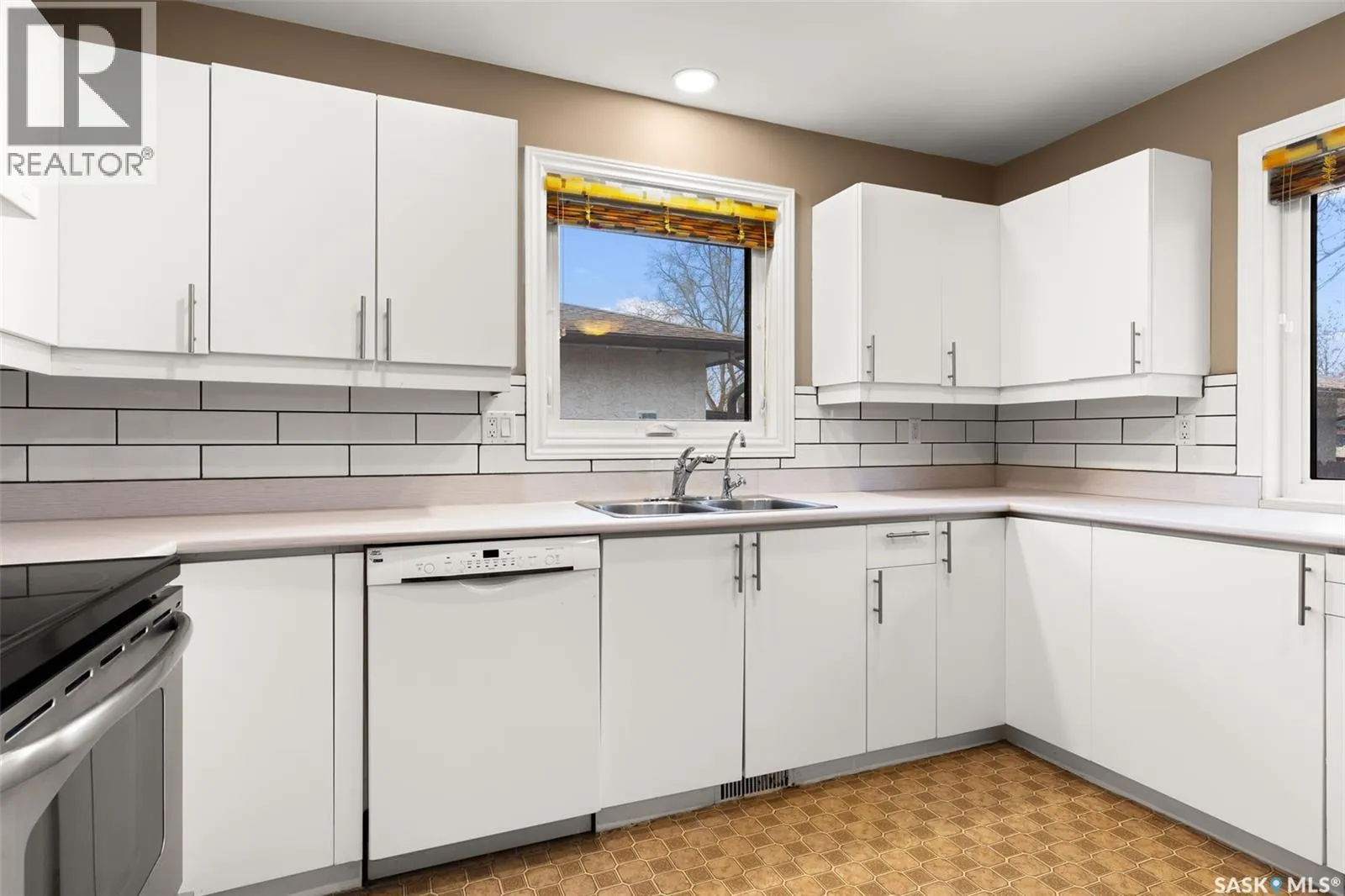 Welcome to 242 Hansen Drive, a spacious 1,349 sq. ft. bungalow located in the family friendly neighbourhood of Normanview West, close to north end restaurants, shopping, and amenities. This beautiful well maintained home offers 4 bedrooms, 3 bathrooms, and a double attached garage with direct entry. The main floor features a sunken living room with a large front window and cozy wood-burning fireplace, flowing into a generous dining area and bright kitchen with plenty of white cabinetry and backyard access. Down the hall, youâll find a comfortable primary bedroom with ensuite, two additional bedrooms, and a full bathroom. The lower level includes a large recreation room, fourth bedroom, third bathroom, laundry area and plenty of storage and utility space. Outside, enjoy a fully fenced, treed backyard with patio and garden area with no direct rear neighbours, since it backs walking path and green space. Donât miss out on this fantastic home, in a beautifully established area, at a great price point! (id:27476)