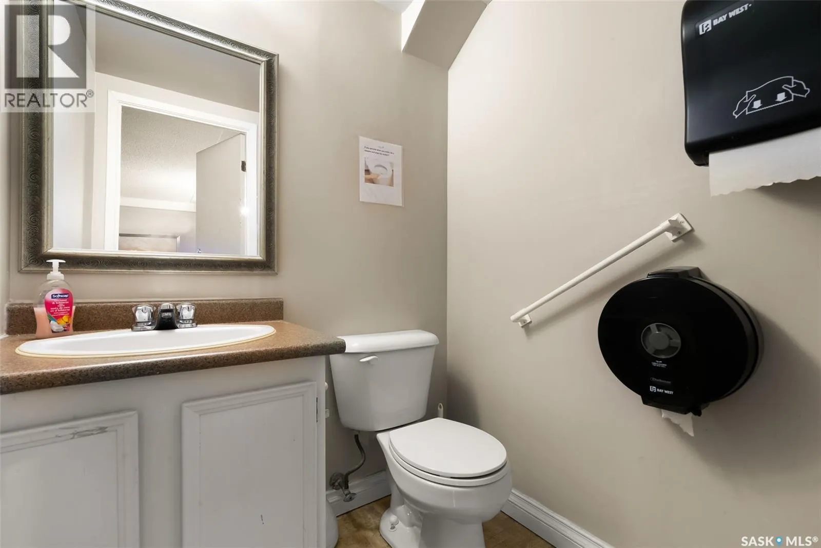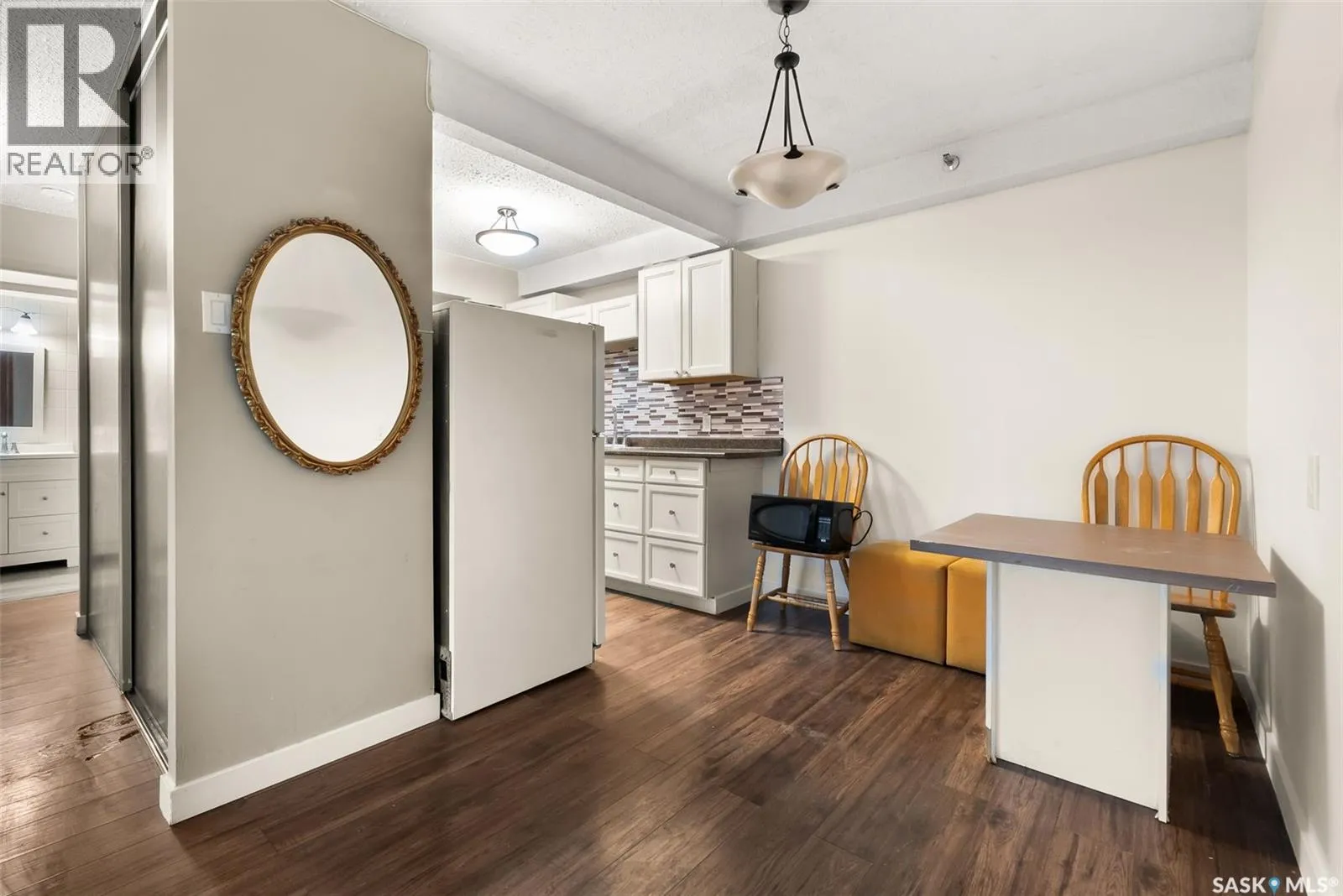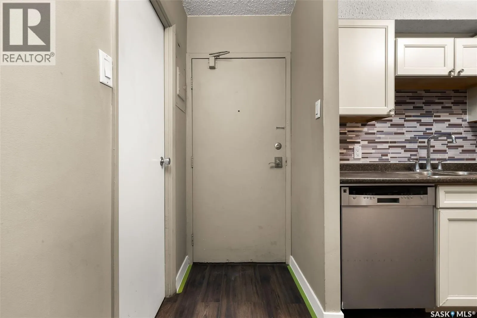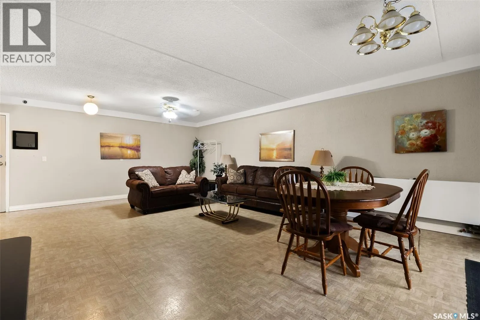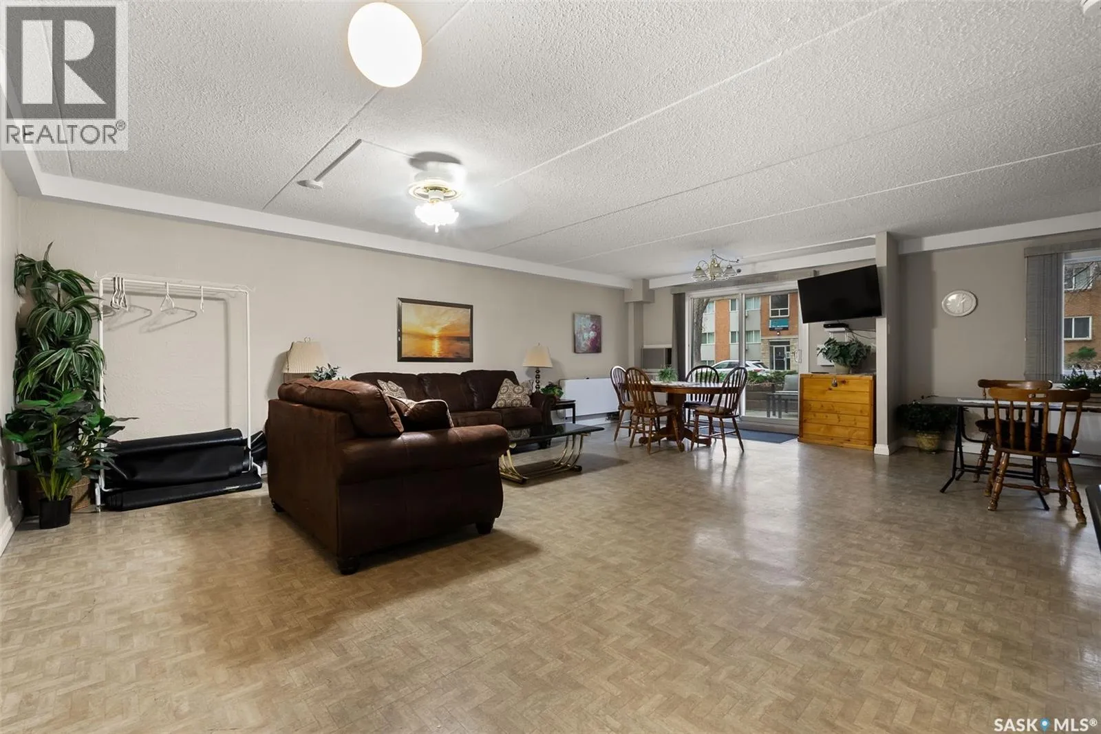 Welcome to The Atrium, a well-managed concrete high-rise in the heart of Parliament Place. This affordable main-floor condo offers a smart, efficient layout and modernized finishes throughout. The bright living area features large windows and laminate flooring, creating a comfortable and inviting space. The kitchen is nicely updated with white cabinetry, a tiled backsplash, and stainless-steel sink, with room for a small dining nook. The spacious bedroom includes a full-sized closet and is steps from the renovated 4-piece bathroom. Enjoy convenient ground-level accessâno elevator neededâplus your own balcony patio for fresh air and easy entry. Condo fees include heat, water, power, common area maintenance, and building insurance, giving you predictable monthly costs. The building also offers an elevator, shared amenities room, and visitor parking, and is within walking distance to Golden Mile Mall, grocery stores, restaurants, and major transit routes. Whether youâre looking for a first home, an investment, or an affordable downsizing option, this bright unit delivers value, comfort, and a great location in south Regina. (id:27476)