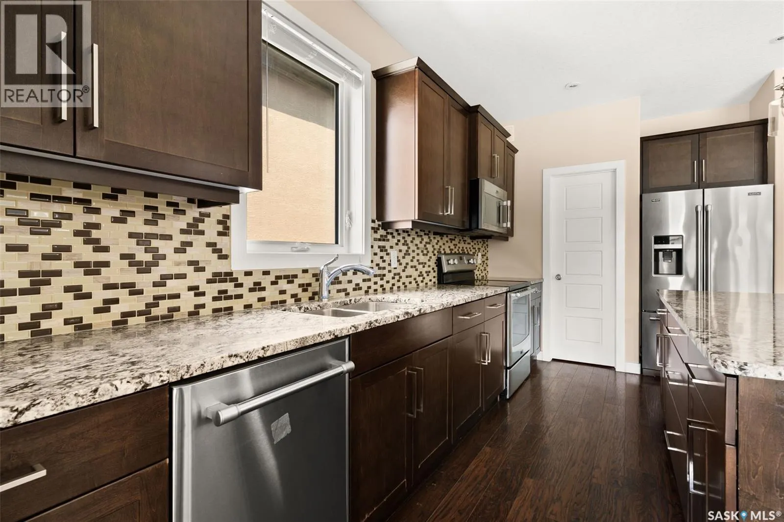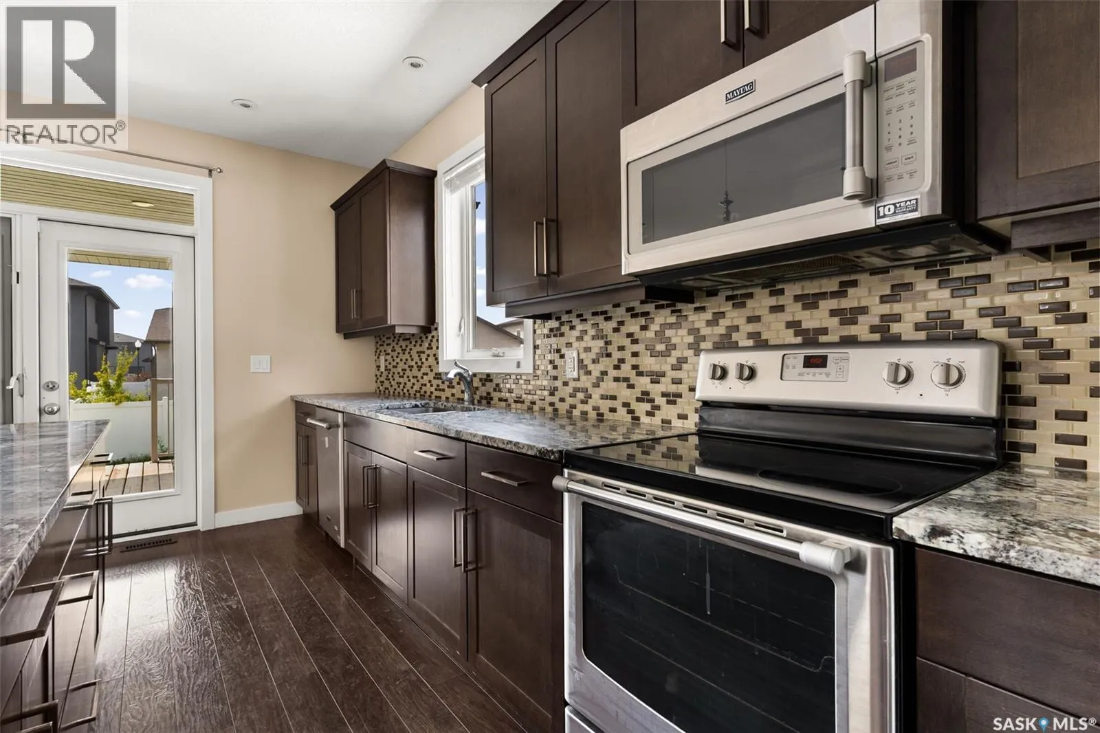 Welcome to 4733 Green View Crescent E, Prime location in the Greens on Gardiner, walking distance to school, park and Acre 21. Custom built, open concept main floor with 9' ceiling,Over 1800 sqft two storey home with 5 bedrooms and 4 bathrooms! Main floor features a spacious flyer, open concept living space with a large living room, kitchen and dining room featured hardwood flooring. A large kitchen has conner walk in pantry with shelves, quartz countertops and tile backsplash plus central island. Off kitchen the garden door leads to the covered deck with partially fenced south facing back yard. 2pc bath to finish the main floor. The second floor feature 3 bedrooms and 2full baths and spacious laundry room. the master bedroom has large walk in closet with 5pc ensuite and quartz top with dual sink, another two good sized bedrooms with a 4pc bath and laundry to make up the second floor. Separate entrance to the basement ,The basement is fully developed living room and two bedrooms plus 4pc bath. (id:27476)