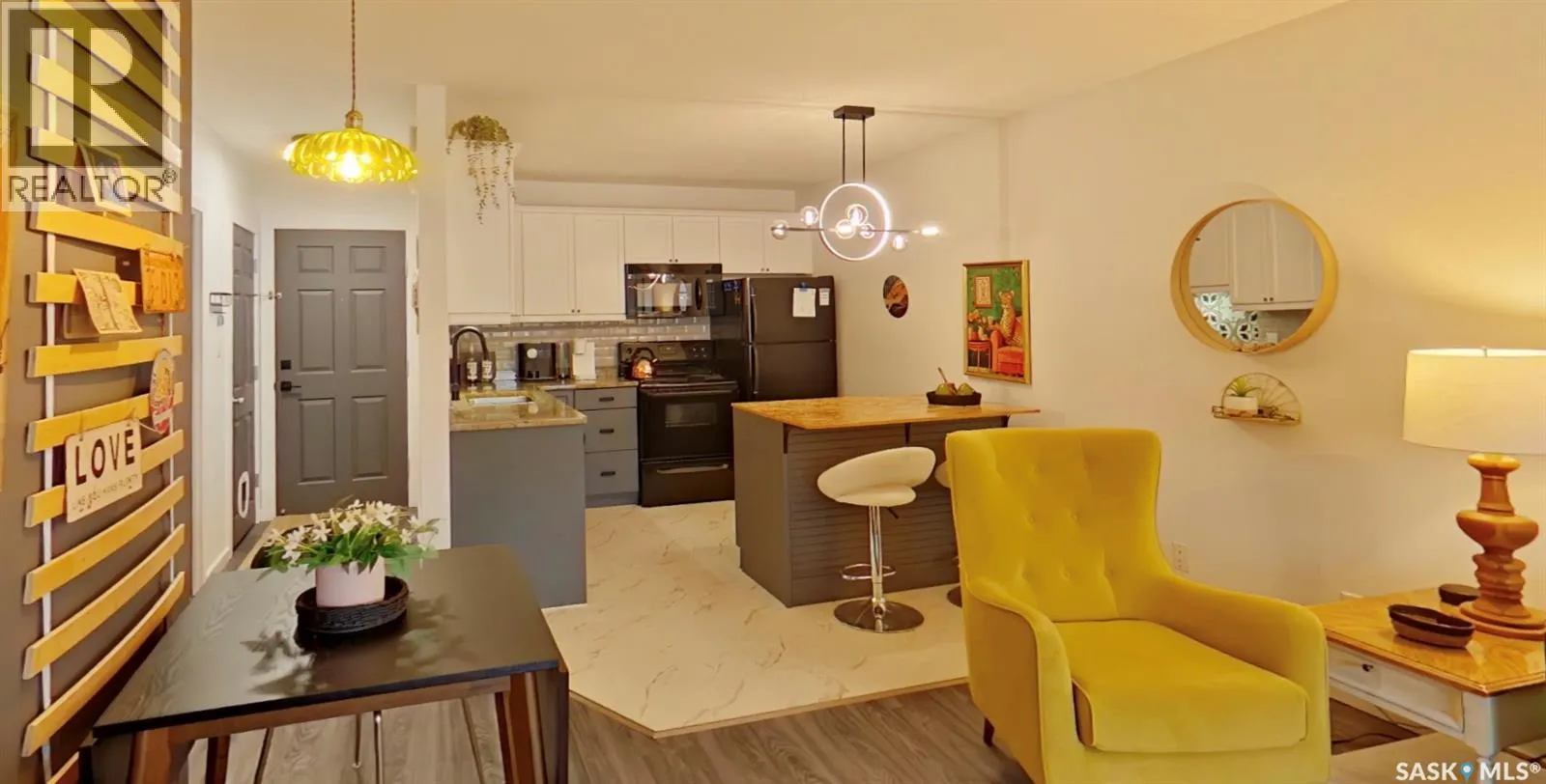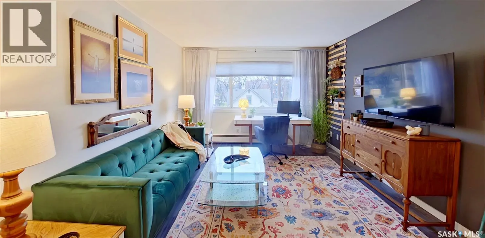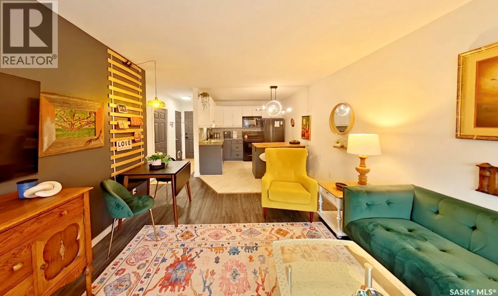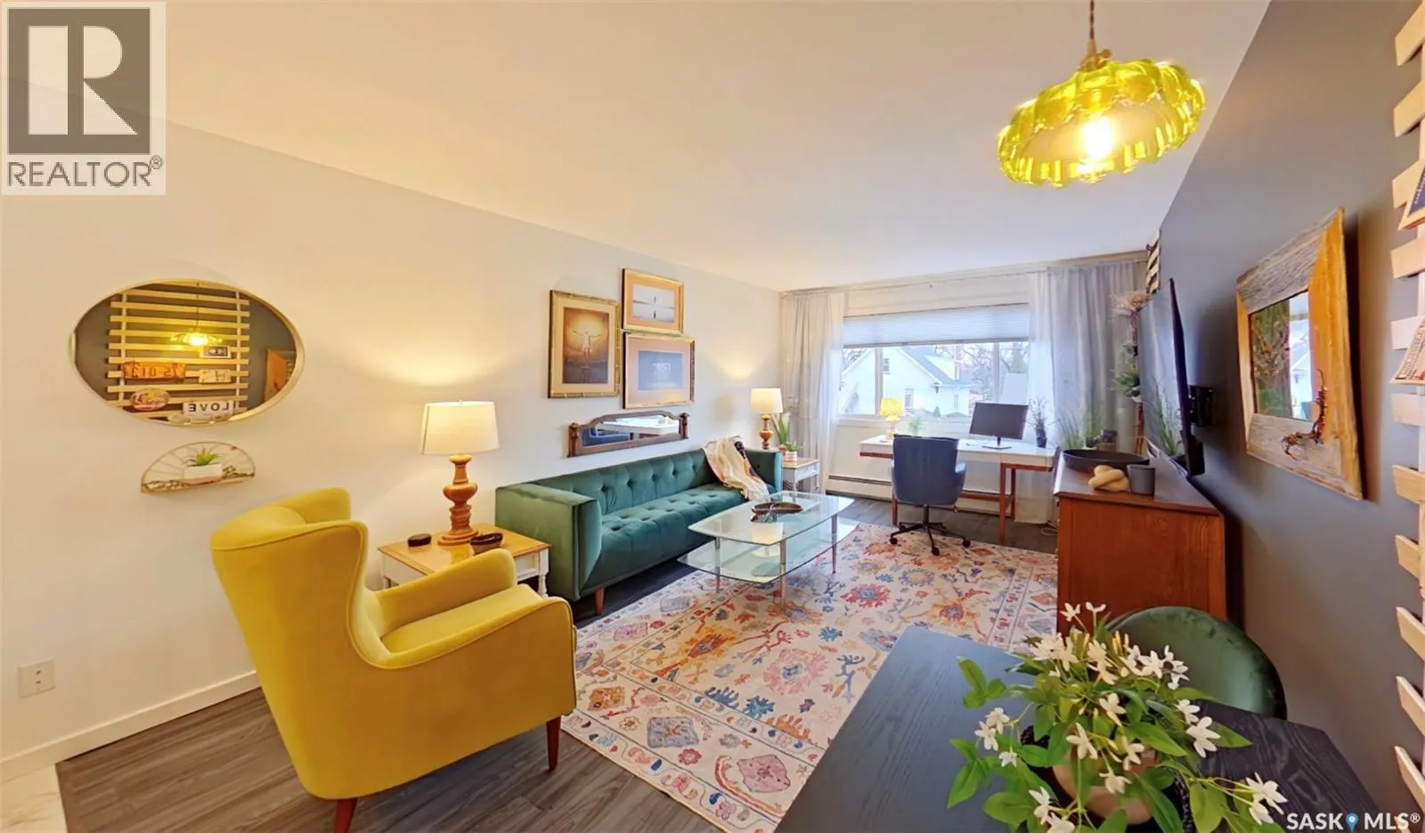 Welcome to life at "The Pines", the forest-style front landscape welcomes you home, offering a refreshing contrast to the urban surroundings. Freshly painted and featuring brand-new luxury vinyl tile flooring, this bright, stylish and inviting unit has been fully updated! Located right on the border of Reginaâs iconic Cathedral neighbourhood and the prestigious Crescents, youâll be a short jaunt from scenic parks, walking and biking paths, hospitals, restaurants, shopping and all the downtown amenities. The spacious living room had previously been configured to accommodate a second bed, offering flexible options for guests, a home office, or shared living. This home could be ideal for professionals needing a stylish urban space during work stints in the city, or families seeking a safe, comfortable home base for their university students. A versatile storage room includes in-suite laundry hookups with piped in water and electrical connection for a non-vented dryer; or choose to do your laundry in the building in the shared laundry room. Most furnishings can be negotiated into the sale, making this much loved space ready for its next owner. Move in, settle down, and soak up the Cathedral vibe - cool, convenient, and full of character! (id:27476)