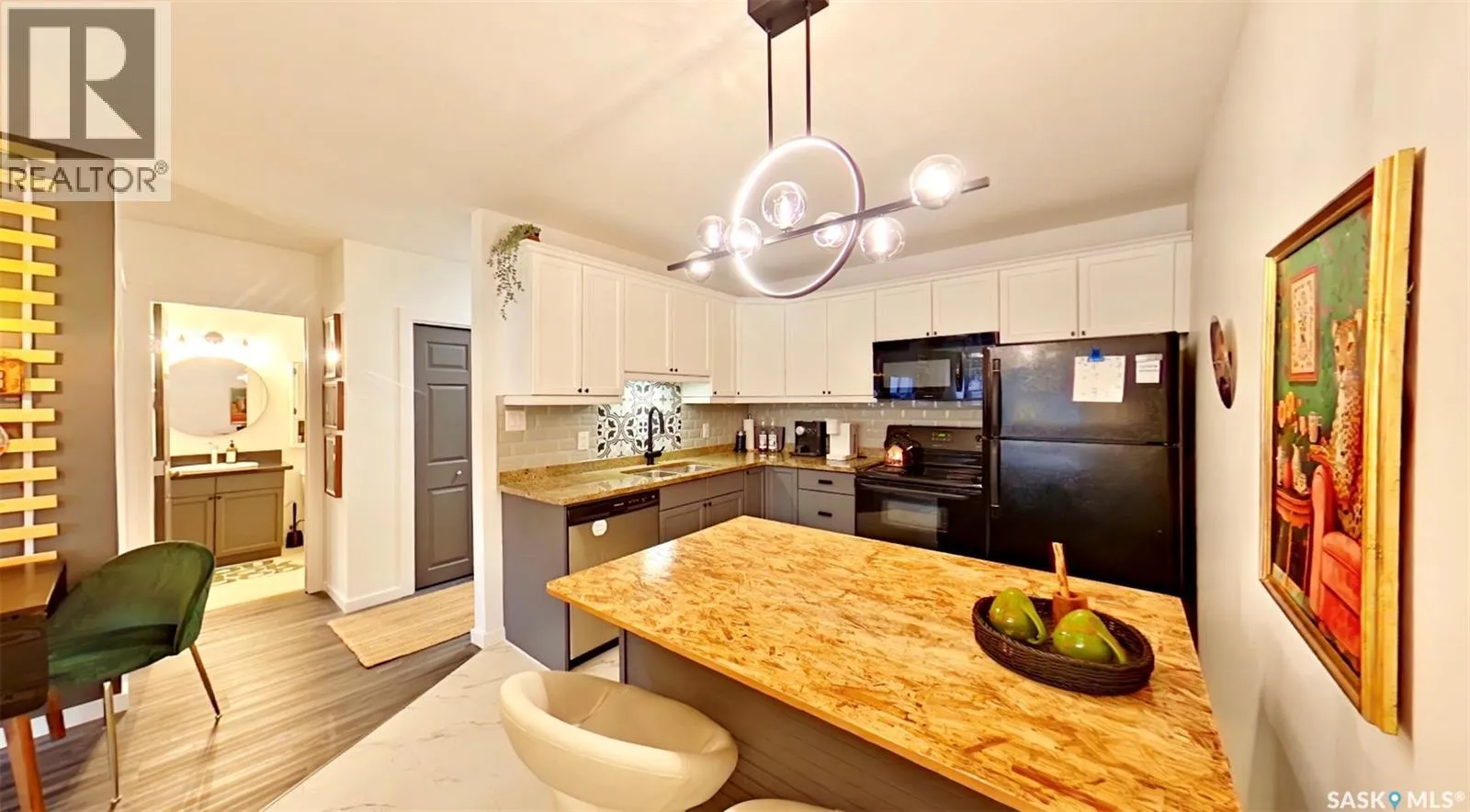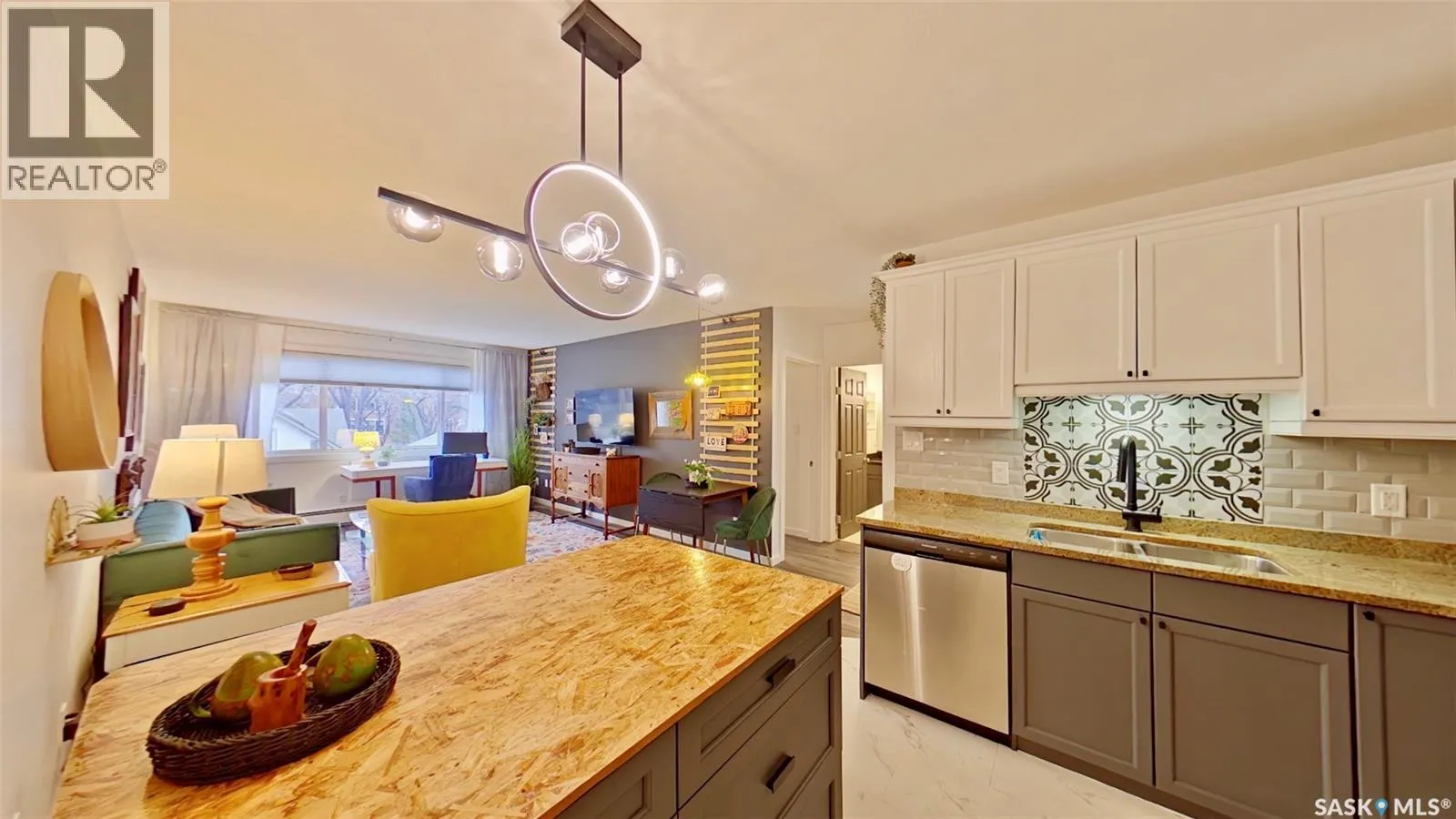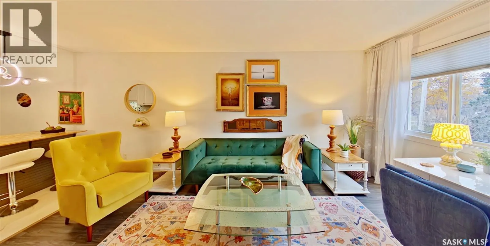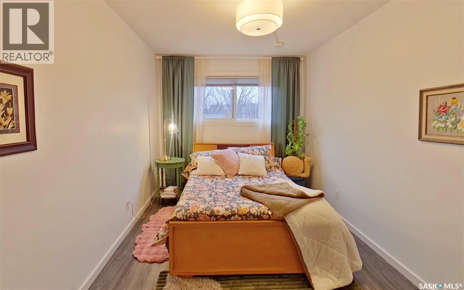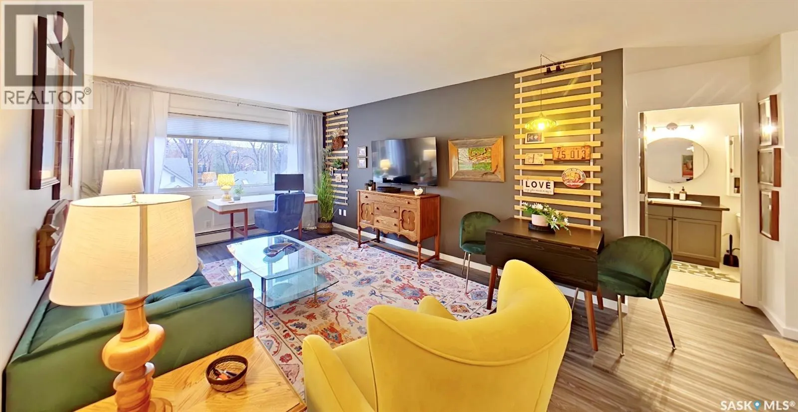 Welcome to life at "The Pines", the forest-style front landscape welcomes you home, offering a refreshing contrast to the urban surroundings. Freshly painted and featuring brand-new luxury vinyl tile flooring, this bright, stylish and inviting unit has been fully updated! Located right on the border of Reginaâs iconic Cathedral neighbourhood and the prestigious Crescents, youâll be a short jaunt from scenic parks, walking and biking paths, hospitals, restaurants, shopping and all the downtown amenities. The spacious living room had previously been configured to accommodate a second bed, offering flexible options for guests, a home office, or shared living. This home could be ideal for professionals needing a stylish urban space during work stints in the city, or families seeking a safe, comfortable home base for their university students. A versatile storage room includes in-suite laundry hookups with piped in water and electrical connection for a non-vented dryer; or choose to do your laundry in the building in the shared laundry room. Most furnishings can be negotiated into the sale, making this much loved space ready for its next owner. Move in, settle down, and soak up the Cathedral vibe - cool, convenient, and full of character! (id:27476)