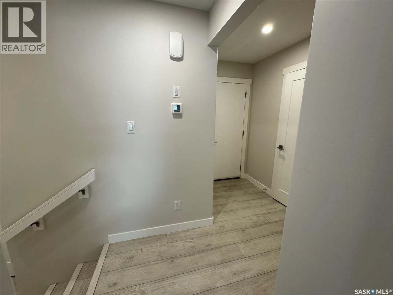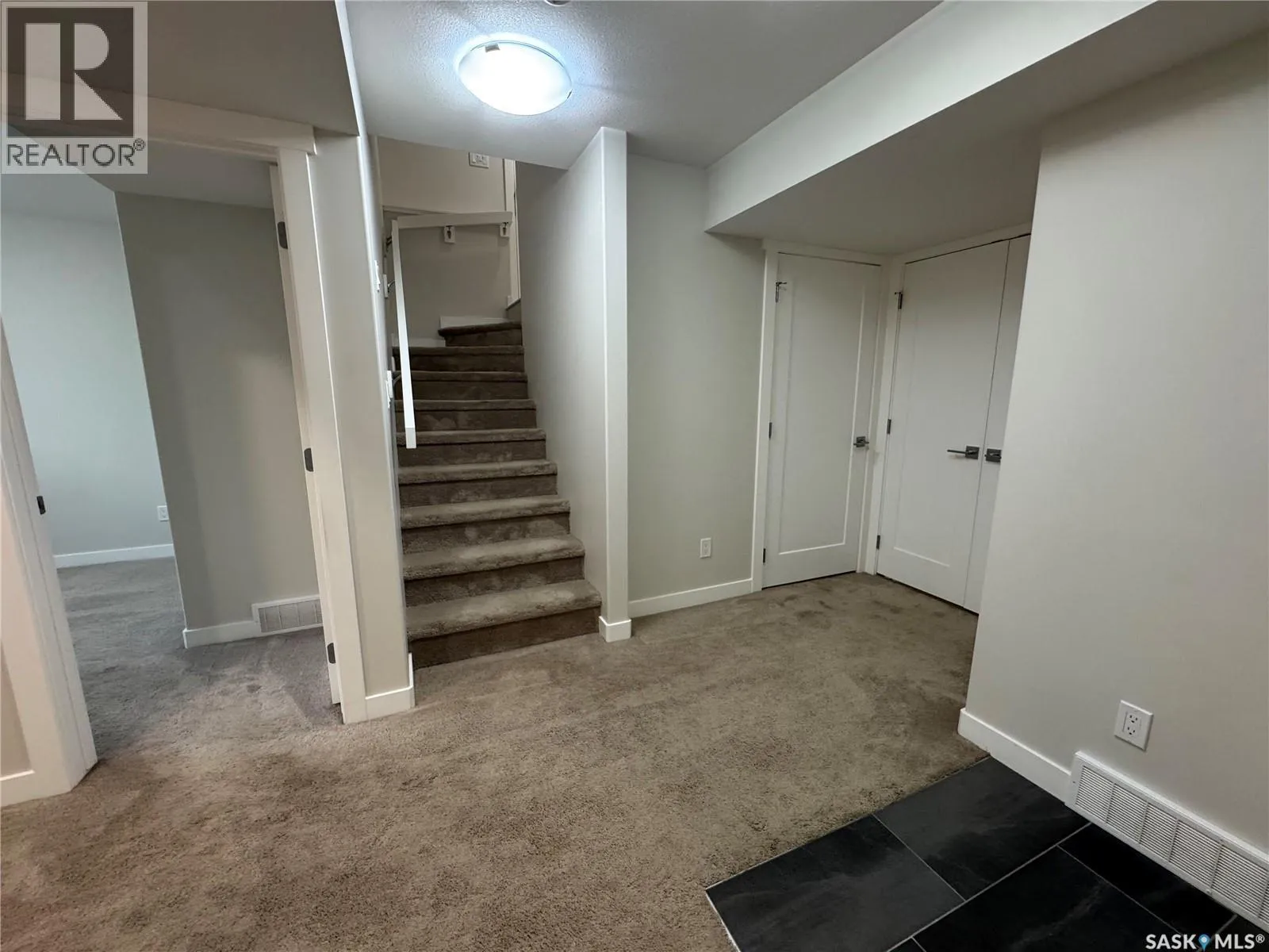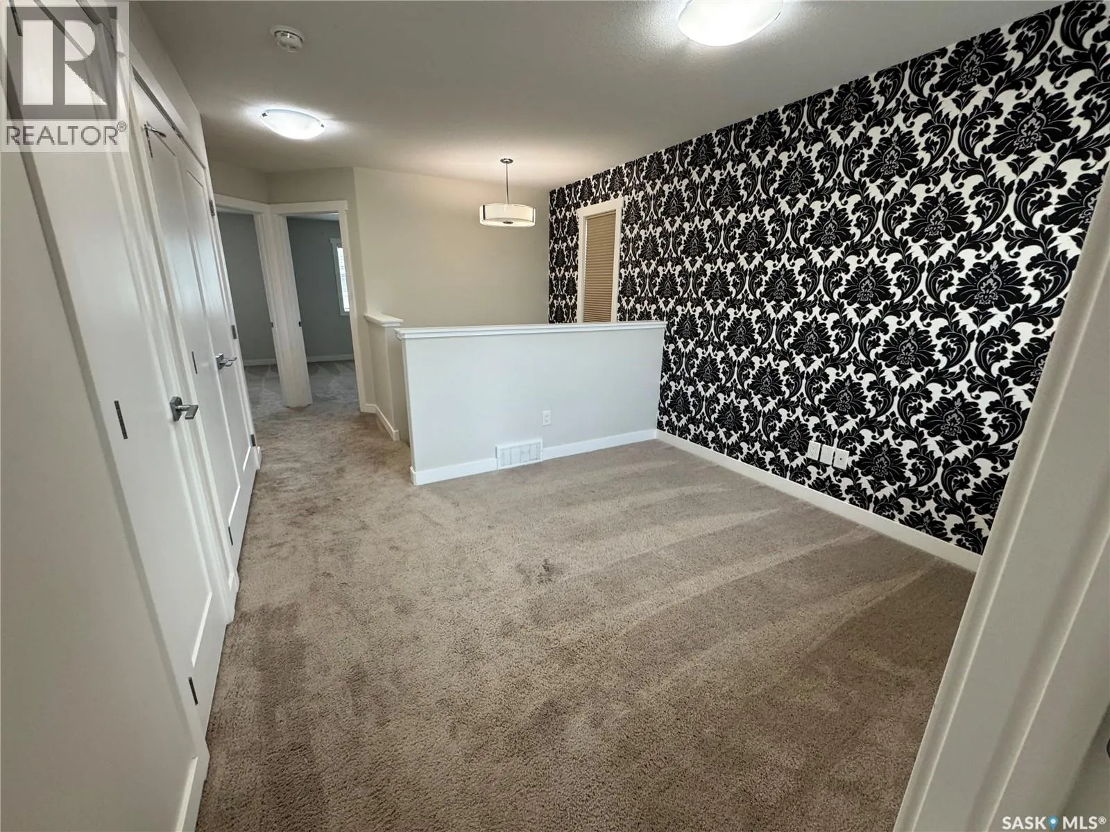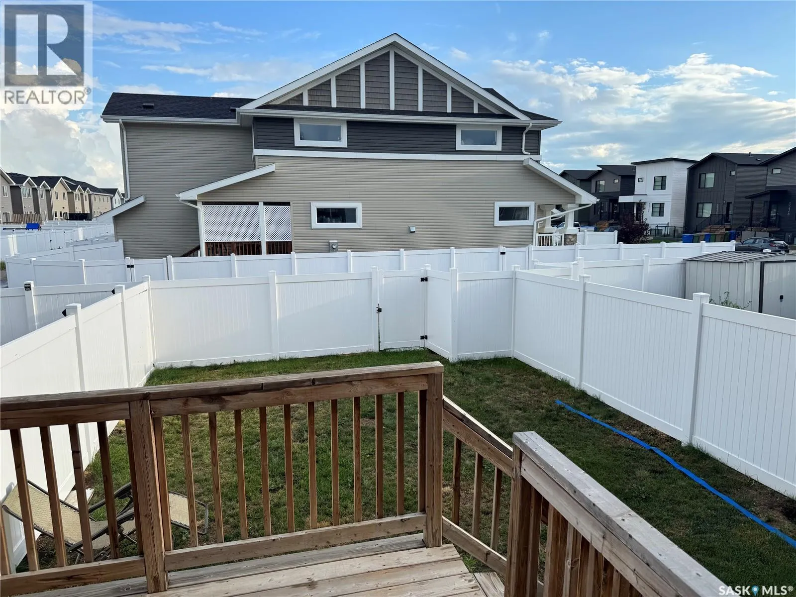 Welcome to this beautifully maintained two-storey attached home in the thriving community of The Towns, ideally located just a one-minute walk from Horizon Park. This move-in-ready property is perfect for families, first-time buyers, or investors looking to settle in one of Reginaâs most desirable and rapidly growing neighbourhoods. The original owner has taken great care of the home â returning from Calgary after tenancy to personally oversee professional carpet cleaning, interior touch-up painting, and a full house deep clean. The main floor features a bright, open-concept layout with a modern kitchen that includes quartz countertops, stylish cabinetry, new fridge, a walk-in pantry, and a large island ideal for hosting or everyday use. The dining and living areas are flooded with natural light and overlook the backyard. A convenient 2-piece bath completes the main level. Upstairs, youâll find three spacious bedrooms, a 4-piece main bathroom, a flex area perfect for a home office or play space, and a dedicated laundry area. The primary suite offers a walk-in closet and 4-piece ensuite. The basement is fully developed, offering a large rec room with wet bar, additional bedroom, and full bathroom â perfect for extended family or guests. A separate side entrance offer potential for future rental or Airbnb use, subject to City of Regina approval.The fridge was replaced last year. (id:27476)