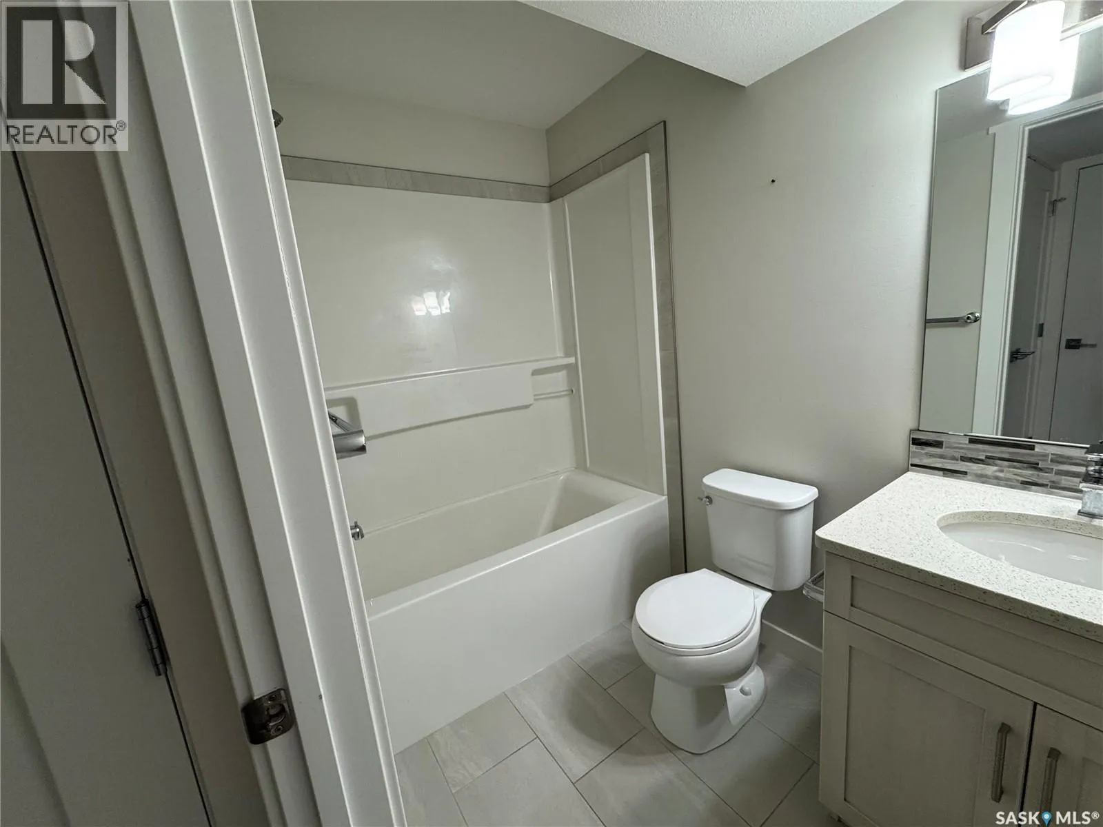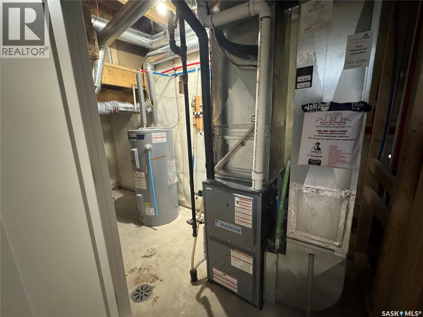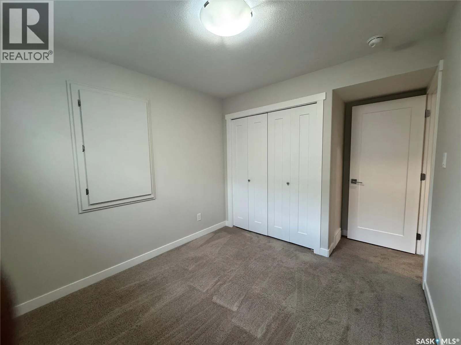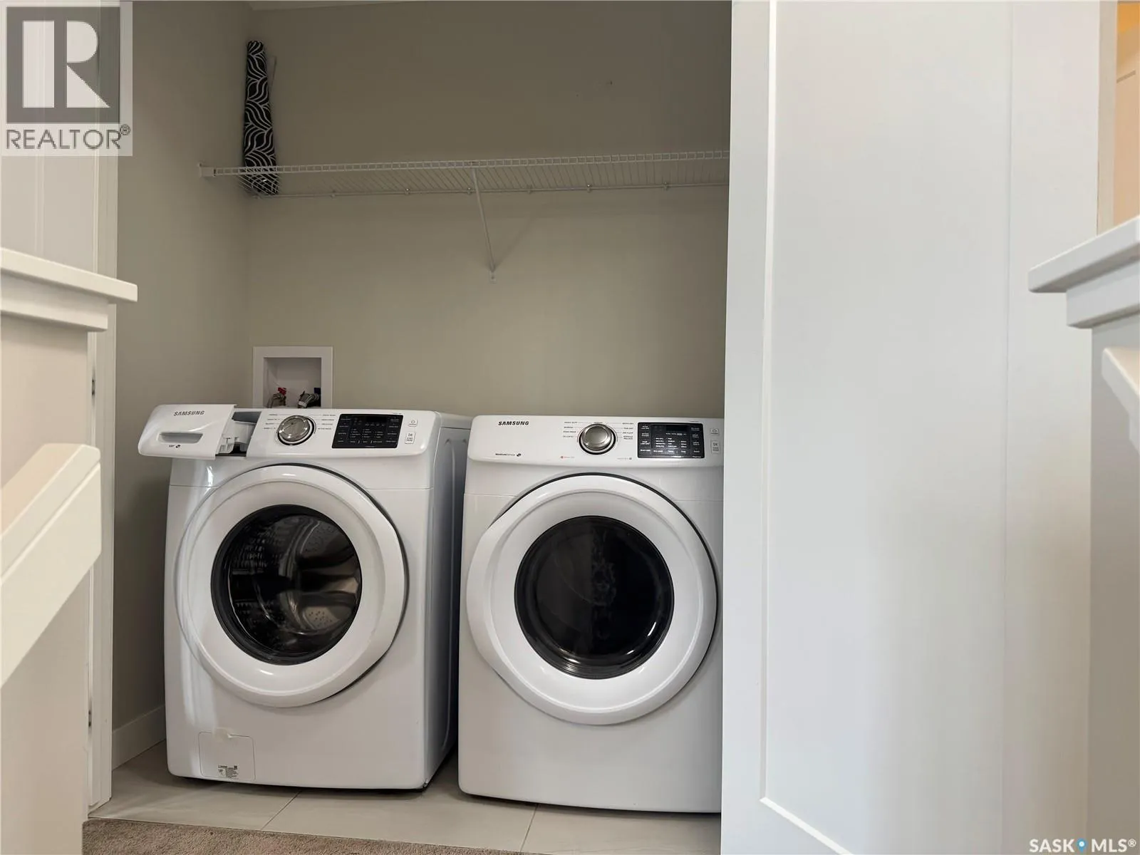 Welcome to this beautifully maintained two-storey attached home in the thriving community of The Towns, ideally located just a one-minute walk from Horizon Park. This move-in-ready property is perfect for families, first-time buyers, or investors looking to settle in one of Reginaâs most desirable and rapidly growing neighbourhoods. The original owner has taken great care of the home â returning from Calgary after tenancy to personally oversee professional carpet cleaning, interior touch-up painting, and a full house deep clean. The main floor features a bright, open-concept layout with a modern kitchen that includes quartz countertops, stylish cabinetry, new fridge, a walk-in pantry, and a large island ideal for hosting or everyday use. The dining and living areas are flooded with natural light and overlook the backyard. A convenient 2-piece bath completes the main level. Upstairs, youâll find three spacious bedrooms, a 4-piece main bathroom, a flex area perfect for a home office or play space, and a dedicated laundry area. The primary suite offers a walk-in closet and 4-piece ensuite. The basement is fully developed, offering a large rec room with wet bar, additional bedroom, and full bathroom â perfect for extended family or guests. A separate side entrance offer potential for future rental or Airbnb use, subject to City of Regina approval.The fridge was replaced last year. (id:27476)
