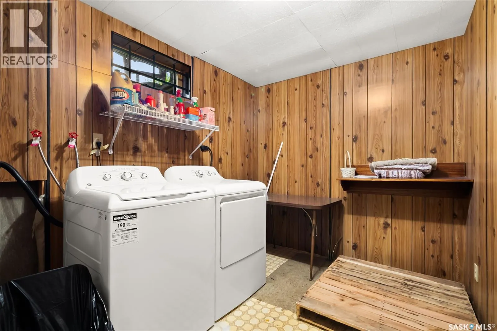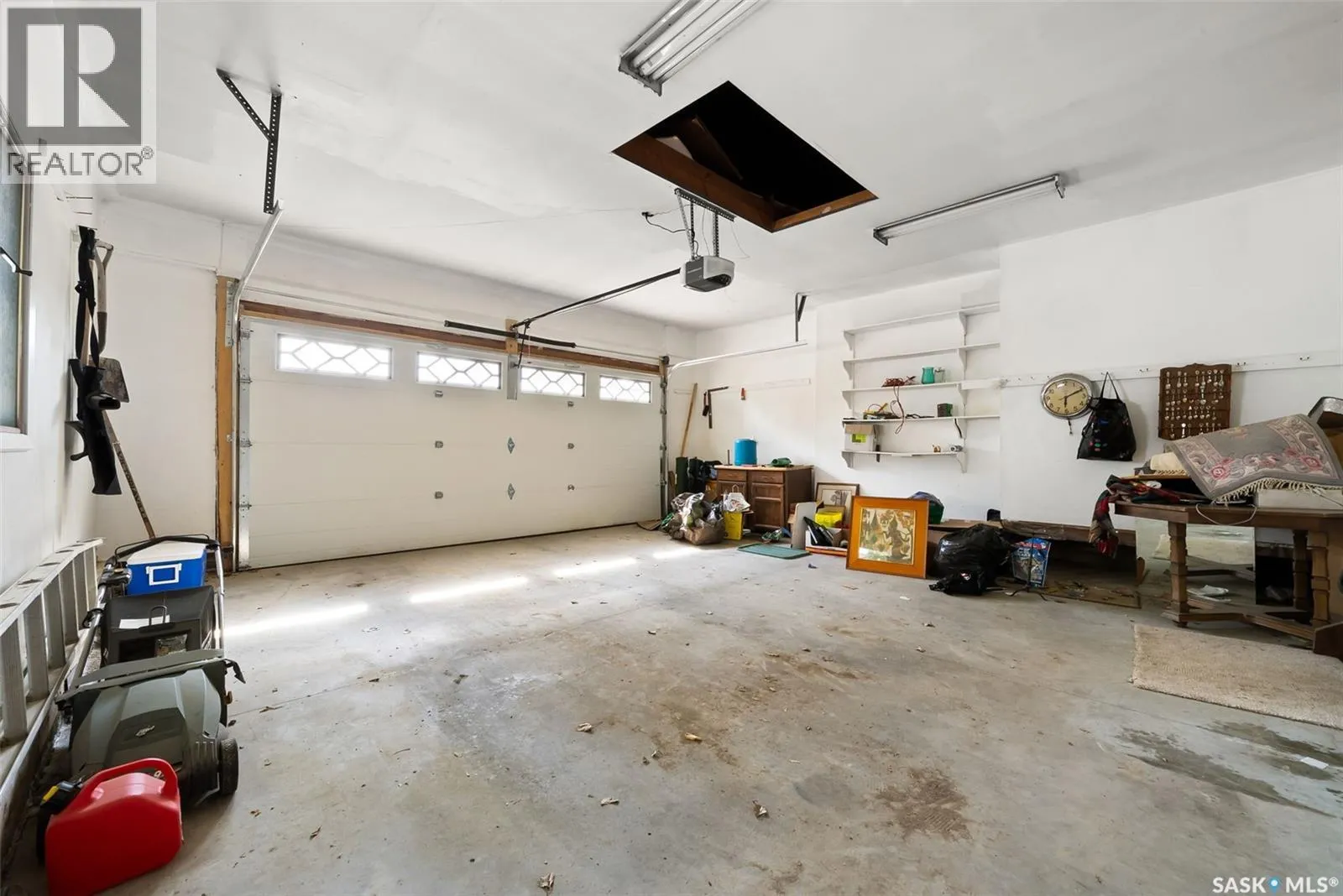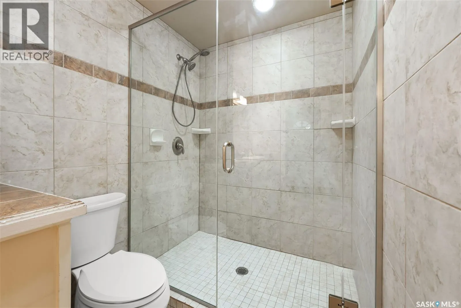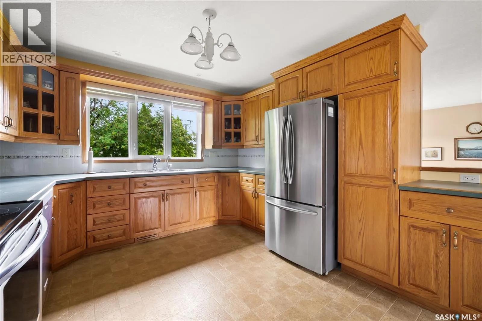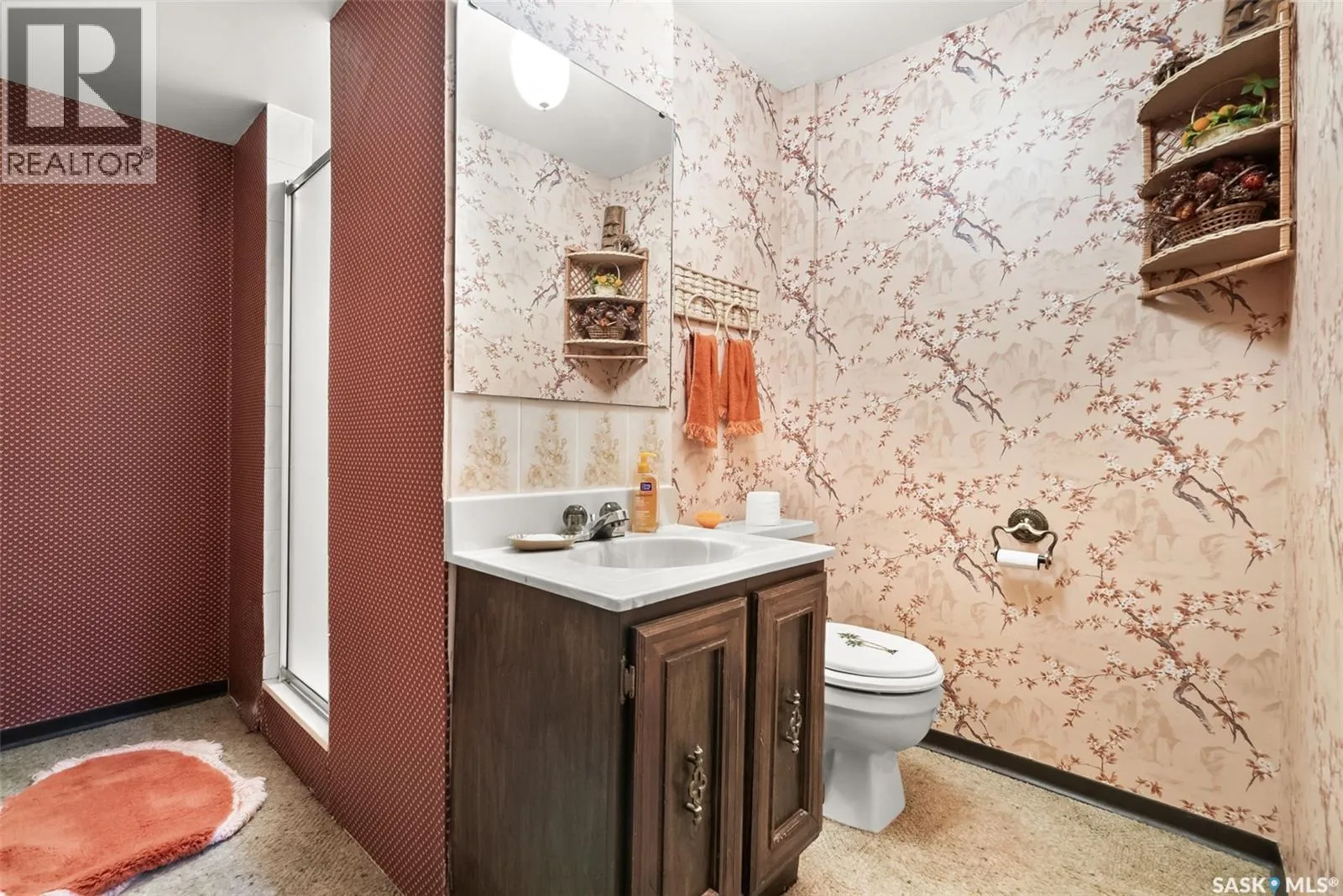 Welcome to this expansive 2,300 square foot two-storey split located in the highly desirable South Albert Park neighborhood. From the moment you enter, you're greeted by a dramatic vaulted ceiling with decorative beams, a striking central staircase, and a second-floor mezzanine that overlooks the formal living roomâcreating a sense of openness and architectural charm. The main floor offers a formal dining room and a bright, spacious eat-in kitchen featuring solid wood cabinetry, newer stainless steel appliances, and a lovely view of the backyard. Adjacent to the kitchen is a cozy family area with a gas fireplace and garden doors that lead to a newer, oversized wood deck. The backyard is lush and private, filled with mature trees and shrubs that offer a peaceful retreat. Numerous new windows on the main floor bring in natural light, while newer shingles add to the home's curb appeal and durability. Also on the main level is an updated three-piece bathroom with a tiled shower, dual vanity, and tiled flooring, along with a generously sized primary bedroom for convenient main-floor living. Upstairs, you'll find four additional bedrooms and a beautifully renovated main bathroom with a quartz vanity and tiled surround. The basement level is designed for entertaining and relaxation, featuring a huge recreation room, games area, and a third bathroom. There's excellent storage in the utility room, plus a dedicated laundry space. The insulated double garage includes a newer overhead door and a well-maintained concrete slab. Two newer high-efficiency furnaces ensure comfort and energy savings year-round. This home blends timeless character with thoughtful updates, offering space, warmth, and functionality in one of Reginaâs most established communities. (id:27476)