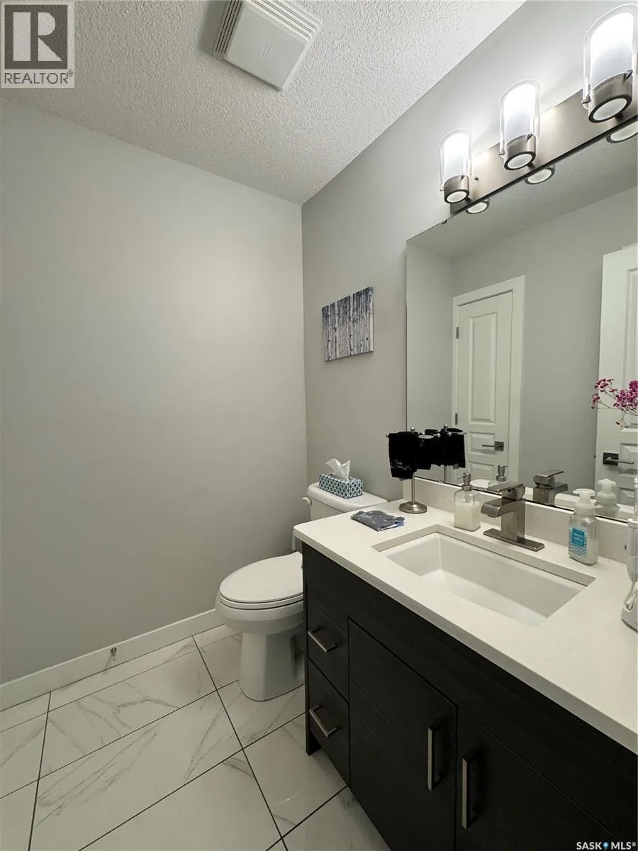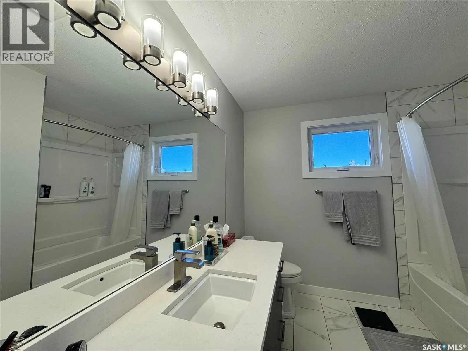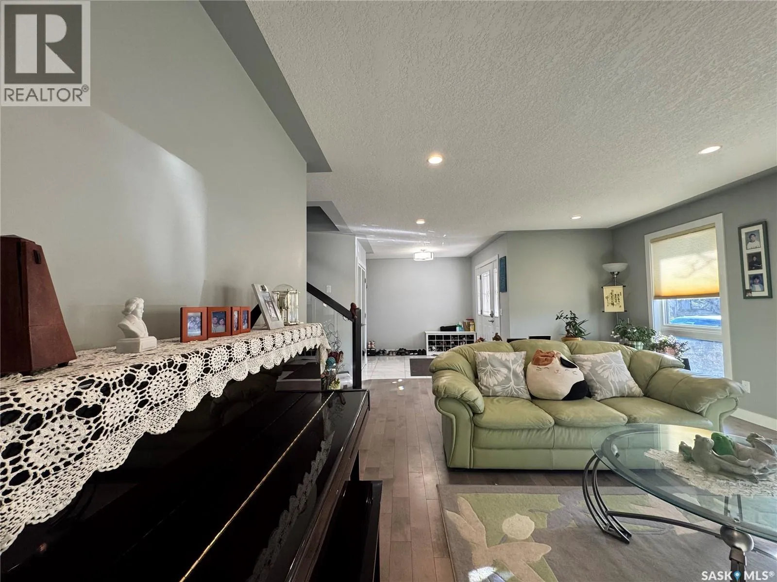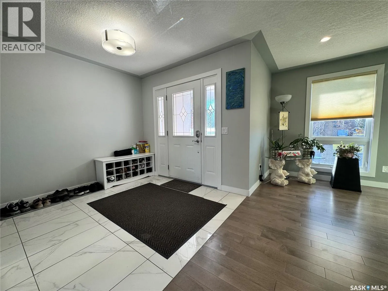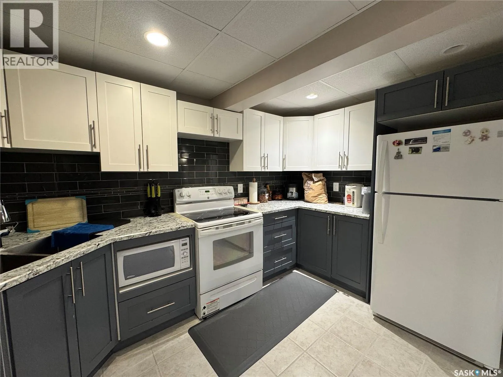 Spacious 2,229 square feet 4-bedroom home in desired Gardiner Park. This property is convenient located close to all east end amenities. Numerous updates over the years. New shingles in 2024. New washer and dryer in 2023. Major renovation in 2017 includes kitchen cabinets, quartz kitchen counter tops, ceramic counter back splash, new fridge/stove/built-in dish washer, built-in microwave oven, ceramic tile floor in kitchen, hardwood floor in family room/living room/dining room, all new bathrooms, light fixtures, interior doors, door locks, exterior stucco and basement development with six inch insulation wall. New triple pane windows with argon gas; tinted south and west facing windows in 2015. Upgrades also included front and back artificial turf, deck, brick patio, raised garden beds and PVC fence. This home features open floor plan. Good sized kitchen with center island counter and lots of cabinets. Walk-in pantry. Main floor laundry room with lots of cabinets and sink. Kitchen overlooks the family room with stone mantel gas fireplace. 2-piece bathroom. Four good sized bedrooms on the second floor. Large master bedroom features 3-piece ensuite. Developed basement features kitchen, living room, 2 bedrooms and 3-piece bathroom. Central air conditioner on second floor furnace. To view this upgraded fantastic home, please contact your Realtor. (id:27476)