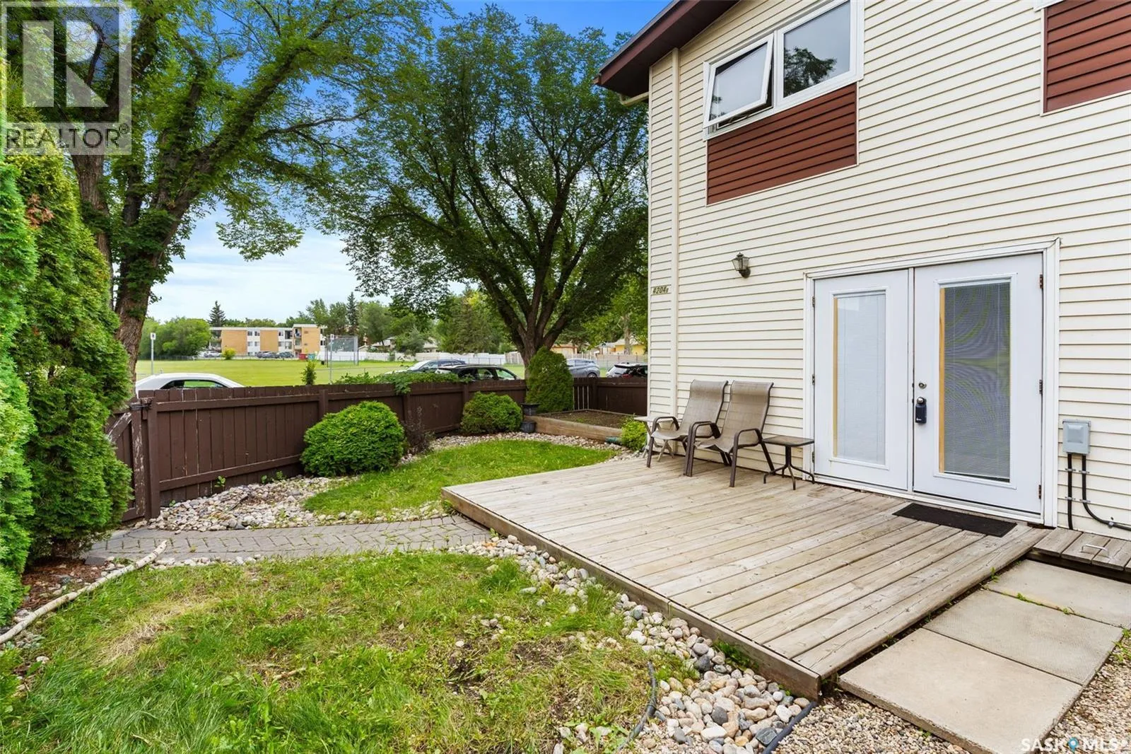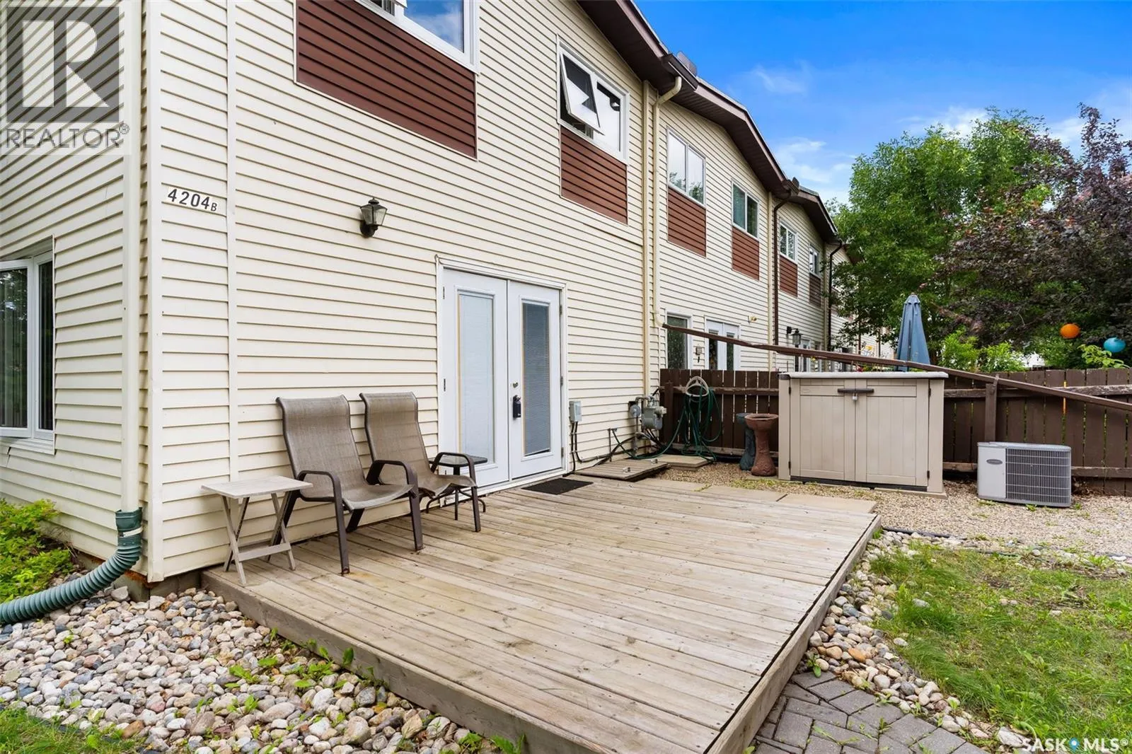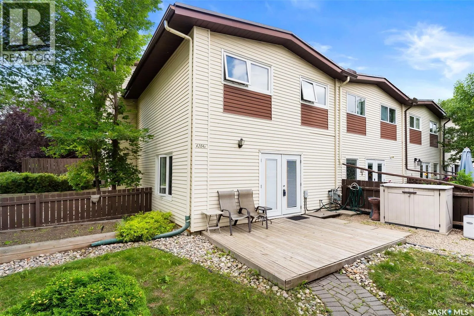Welcome to B-4204 Castle Rd in Whitmore Park! 2 bedroom, 2 bath, 920 sq ft townhouse condo is a must see! Walking distance to U of R and right by the park. This end unit with a lovely south-east facing backyard, patio, and garden area. The unit has many updates including kitchen, flooring, windows and a recently developed basement with three-piece bath. An open concept living room comes with extra window and boost a lot of natural light and dining room with entry to yard is bright and spacious in design! Upstairs, two large bedrooms with large closets, and a full bath with large vanity is a great feature! Basement was developed with functional L shaped rec room, generous sized 3 pc bath, utility and storage areas! One parking spot & all appliances included. (id:27476)
