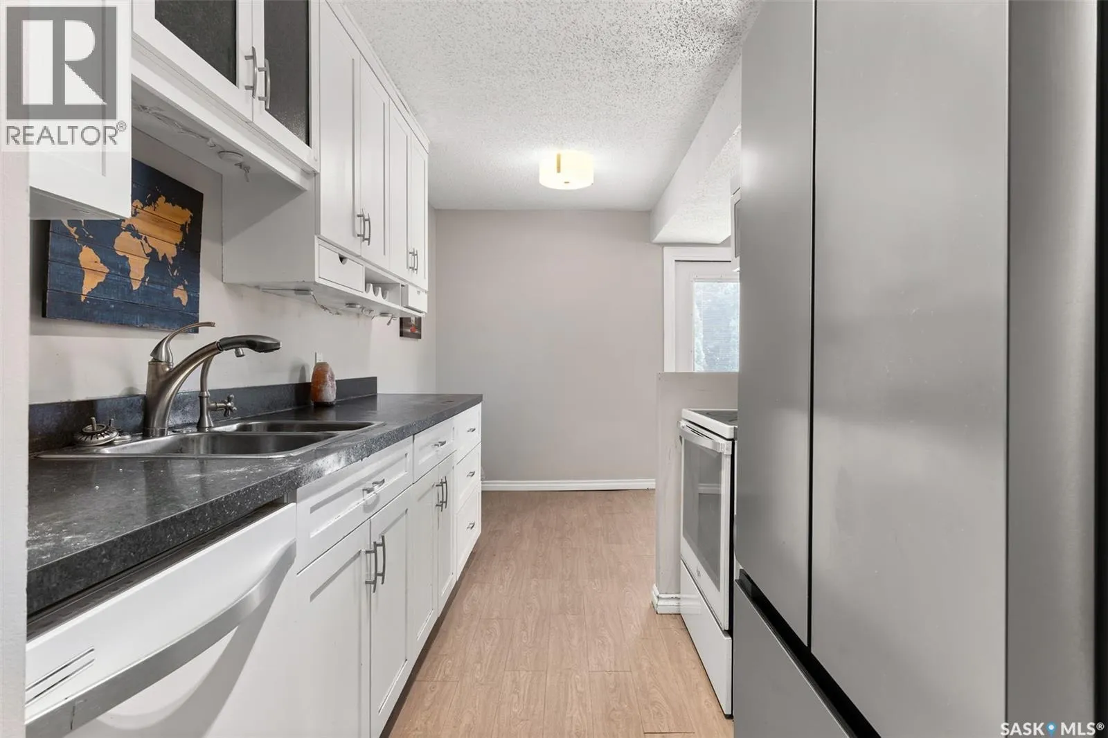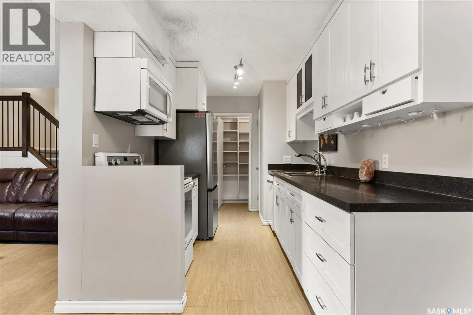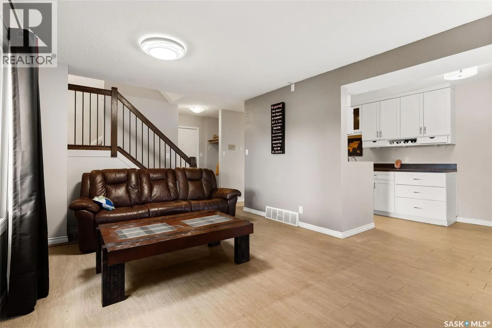 Welcome to B-4204 Castle Rd in Whitmore Park! 2 bedroom, 2 bath, 920 sq ft townhouse condo is a must see! Walking distance to U of R and right by the park. This end unit with a lovely south-east facing backyard, patio, and garden area. The unit has many updates including kitchen, flooring, windows and a recently developed basement with three-piece bath. An open concept living room comes with extra window and boost a lot of natural light and dining room with entry to yard is bright and spacious in design! Upstairs, two large bedrooms with large closets, and a full bath with large vanity is a great feature! Basement was developed with functional L shaped rec room, generous sized 3 pc bath, utility and storage areas! One parking spot & all appliances included. (id:27476)
