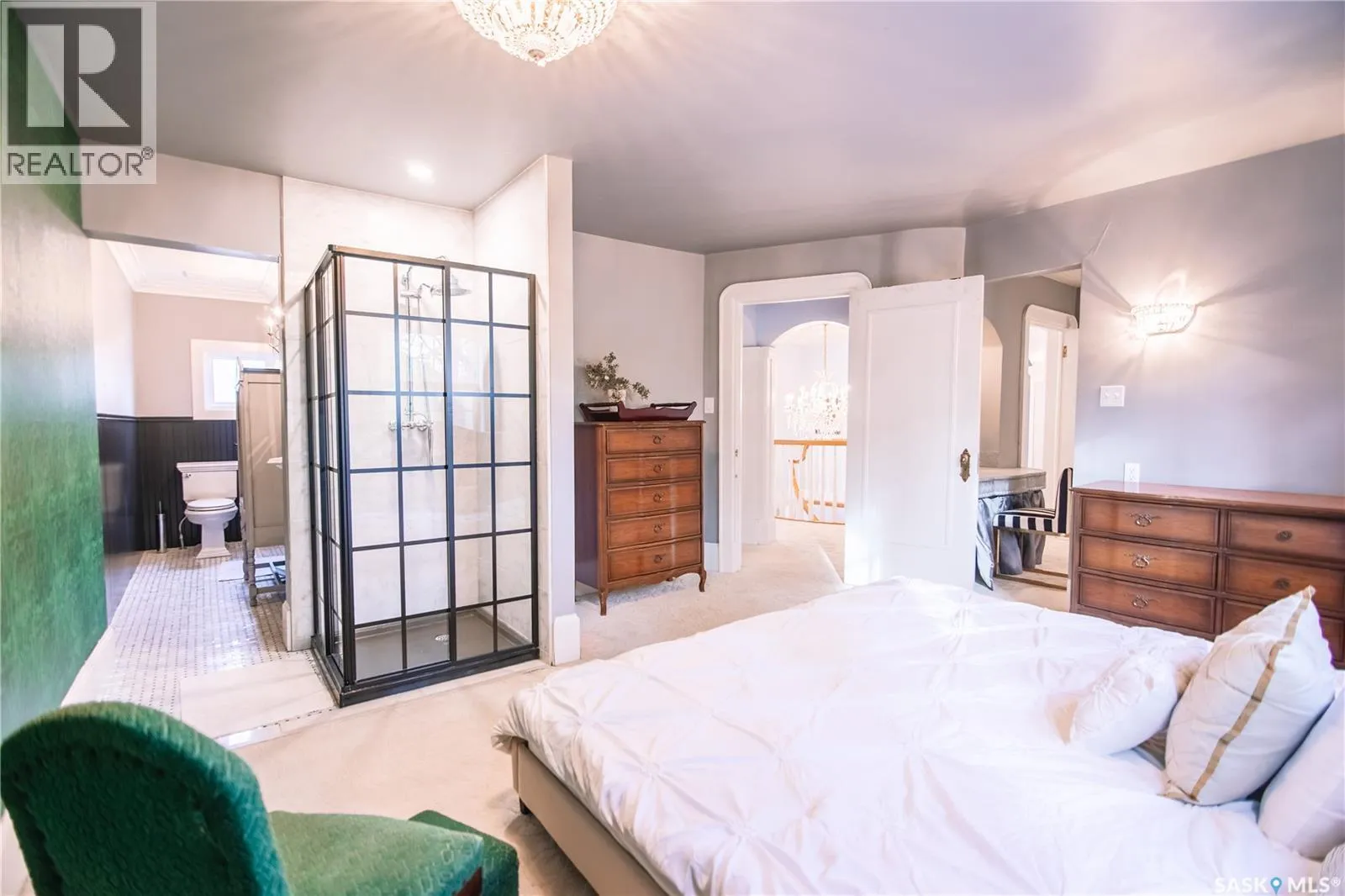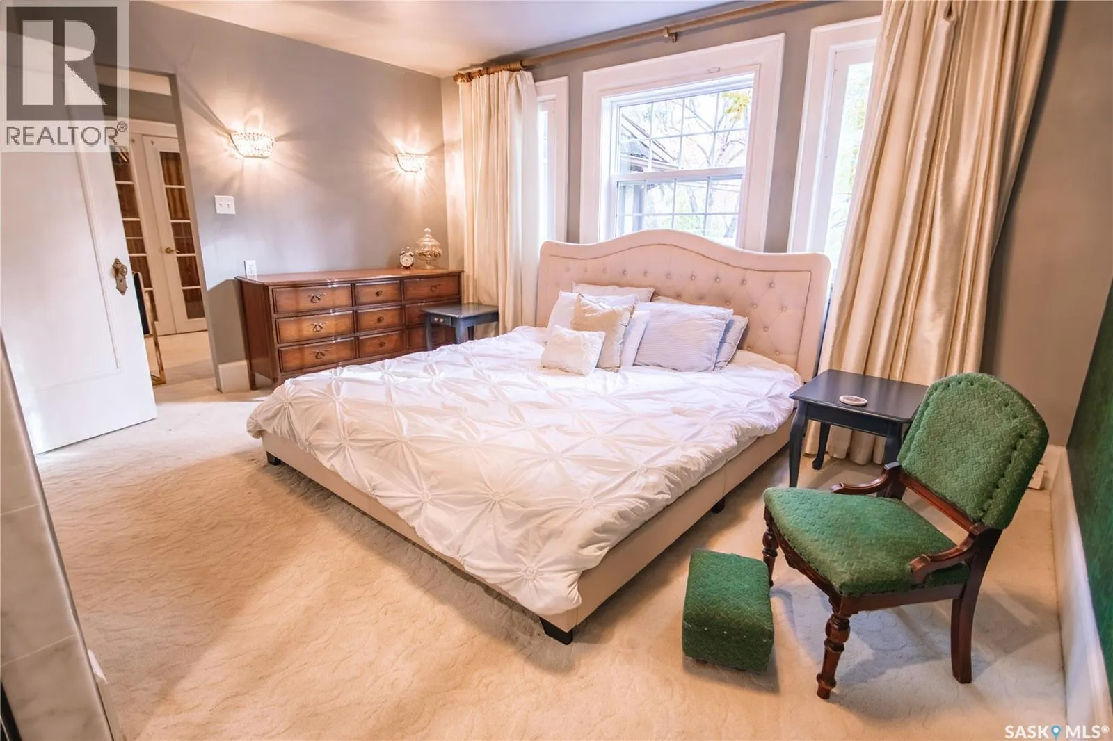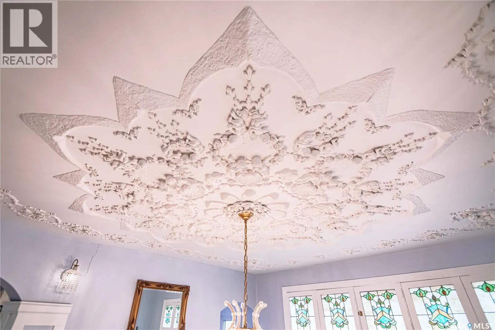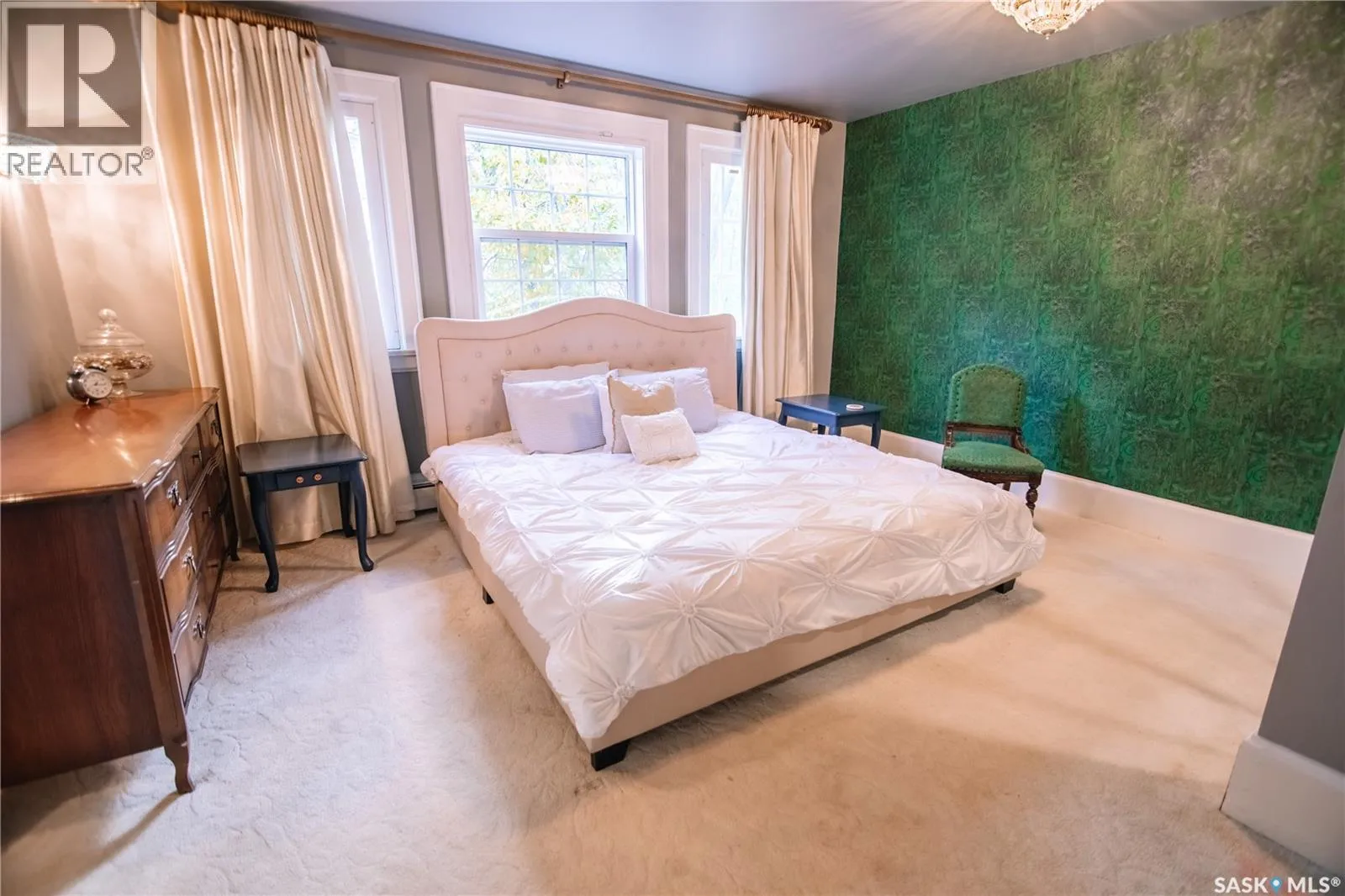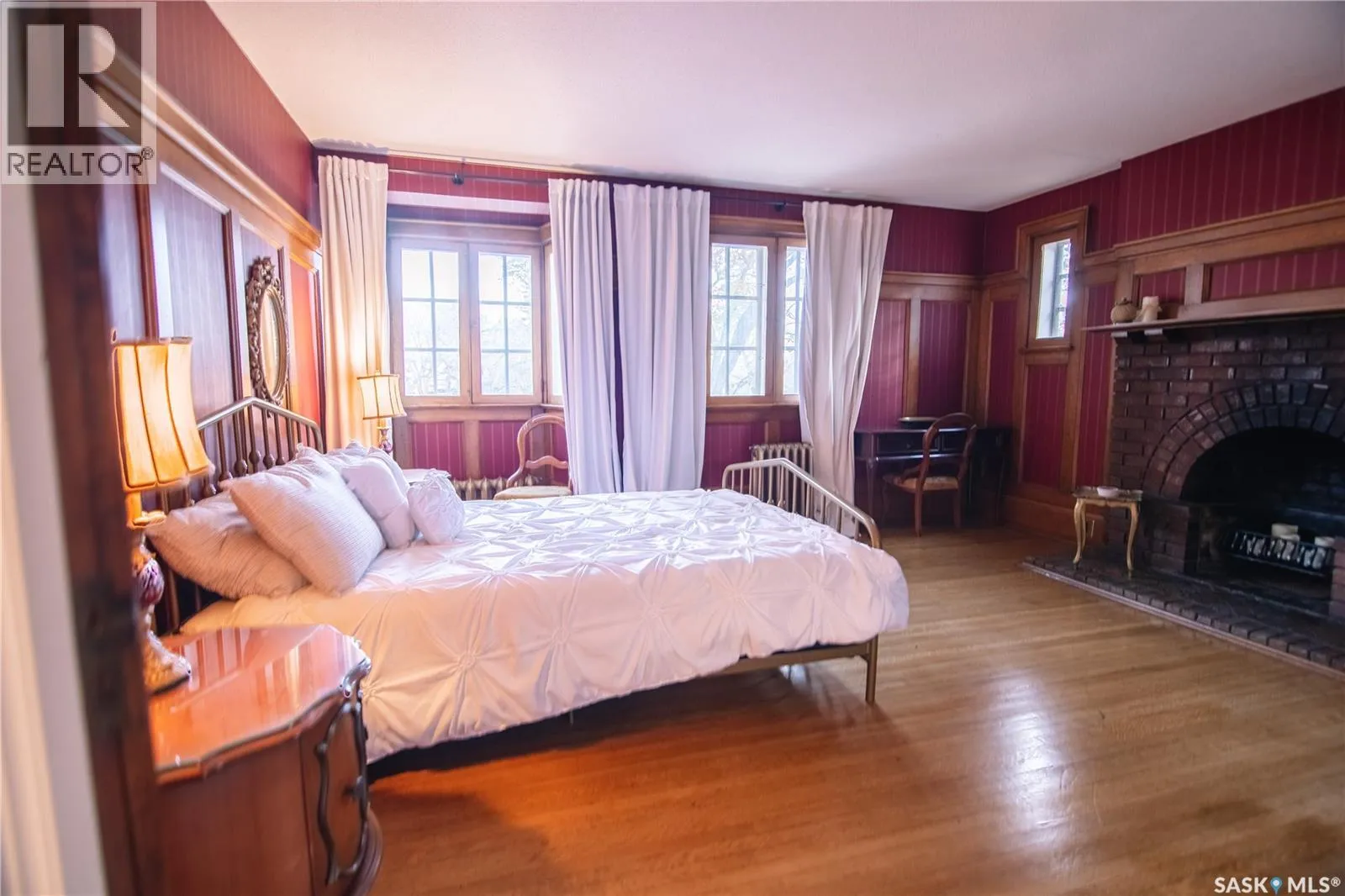This remarkable 6-bedroom, 5-bathroom character home offers 3,795 sq. ft. of elegant living space, blending preserved 1913 architectural detail with extensive modern upgrades. Designed by renowned architect James Puntin for prominent Regina figure William Masonâeight-term city councillor and mayor from 1925â1926âthis property stands as a true piece of Reginaâs history. The double attached insulated garage offers rare dual access from both Albert Street and the back alley. Classic features such as stained glass windows, wainscoting, crown moldings, claw-foot tubs, and antique vanities are paired with high-end updates including marble flooring, new lighting, custom wallpaper, window treatments, smart home technology (August lock, smart video doorbell, Ecobee thermostat), and an upgraded 200 amp electrical panel. A large heated porch leads to an impressive reception hall with a stunning open staircase and ceiling feature. The main floor includes a spacious living room, formal dining room, an upgraded white kitchen with included appliances, a 2-pc powder room, and a 2023-renovated laundry room with washer and dryer included. The second level features three generous bedrooms, including a primary suite with a sitting room, sunroom, walk-in closet, and a newly developed 4-pc ensuite. The third floor offers two bedrooms, a 3-pc bath, a living room, and a kitchenetteâall furniture and accessories included. The fully developed basement contains a large one-bedroom non-regulation suite with its own kitchen and 3-pc bath (furniture included), ideal for extra income, multigenerational living, or a nanny suite. Additional updates include a new boiler (2014) and spray foam insulation in key areas. Furniture on the main and second floors is negotiable, making this home truly move-in ready. A rare combination of history, character, and modern comfort, this property is one of Reginaâs finest and most storied residences. (id:27476)