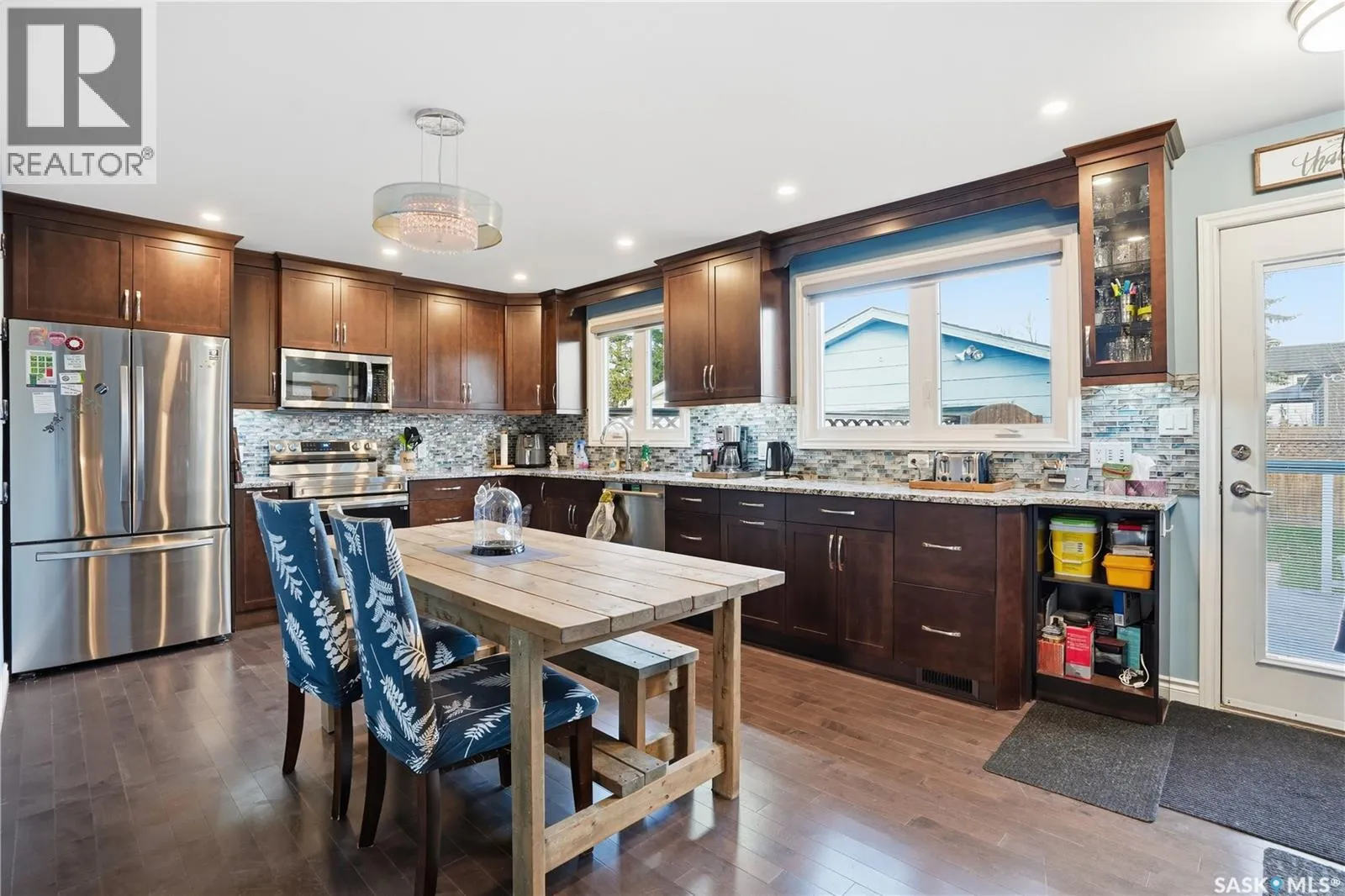 This 4-level split family home is perfect for a larger family offering 1,620 sq. ft. and including 5 bedrooms and 3 bathrooms. It has more than enough space to comfortably spread out. The home has a nice curb appeal and is tastefully decorated. The main entrance features a beautifully tiled floor area large enough for your whole family to enter at once without knocking each other over. The kitchen was renovated by the previous owners with Kitchen Craft Cupboards, built in pantry and granite counter tops. The space is large enough to comfortably allow for a large family table! Upstairs you will find the Primary bedroom with ½ bath ensuite. Also on this level is the main 4 piece bathroom and 2 additional bedrooms. The 3rd floor has a 4th bedroom and walk-in closet, sweet man cave and tiled 3-piece bath. Down the stairs the basement has the 5th bedroom (window not egress), bonus space and generous sized utility room. The washer was purchased recently and the electrical was upgraded in late 2021. The previous sellers replaced the furnace in early 2021. The water softener is not used and currently bypassed. The fully fenced yard leads to a double detached garage! If this home located on a quiet crescent in Glencairn Village might work for you and your family, please contact your REALTOR® today to schedule a showing. (id:27476)