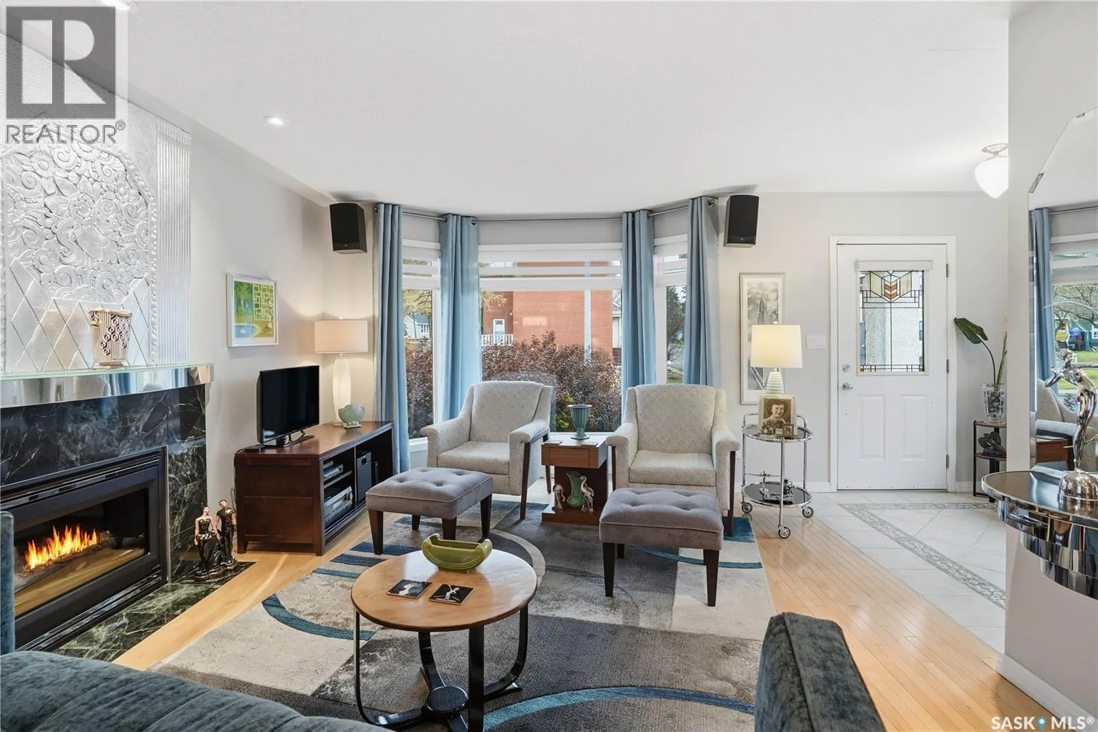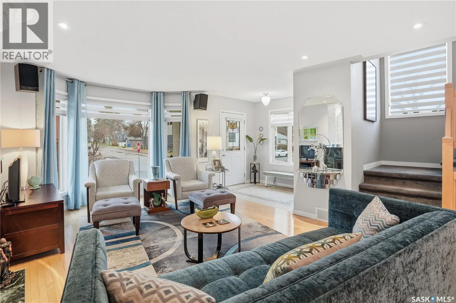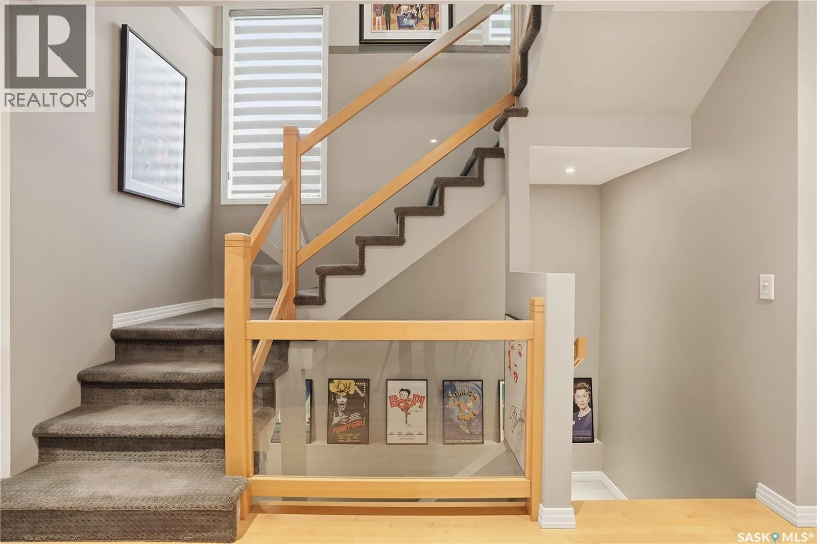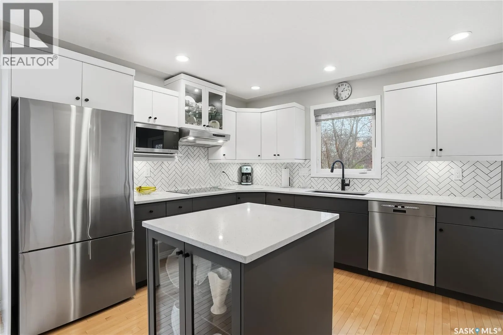 Welcome to 2576 Cameron Street. This charming 2 story is located in the desirable Crescents Neighbourhood. Immediately you will notice the attractive curb appeal with a large front and side yard that has been beautifully landscaped. Custom Ripplinger build distinguished by meticulous attention to detail, tastefully decorated and offering 1588 square feet of living space. As you enter you will be greeted by the large foyer and open concept living space. Large windows allow for an abundance of natural light. Living room features maple hardwood flooring that continues throughout the main level, lovely drapery which is included, and a gas fireplace with marble surround and custom plaster feature wall. Living room speakers can also stay if the buyer so chooses. The spacious dining room boasts a ceramic tile floor inlay and back lighting accenting the glass block wall. The kitchen is a chefâs dream with plenty of counter space, two tone custom cabinets, herringbone pattern subway tile backsplash, and stainless steel appliances which are included. Off the kitchen you will find a 2 piece bathroom and entry to the backyard with a large tiered deck and 2 car detached garage with lane access. Primary bedroom can be found upstairs with direct access to walk in closet and the large 5 piece bathroom featuring a jacuzzi tub, a glass block shower and in floor heating. 2 more bedrooms and laundry complete the second level. The basement is the perfect entertaining space with a media room which includes the projector and screen along with surround sound system. Large storage/ utility space with additional fridge and freezer that are both included. This property is conveniently located close to Downtown, The Royal Saskatchewan Museum, Wascana Park and mere steps from green space. Additional features include: shingles 2022, furnace 2016, central air conditioning, roughed in plumbing in basement, and roughed in natural gas hook up. (id:27476)