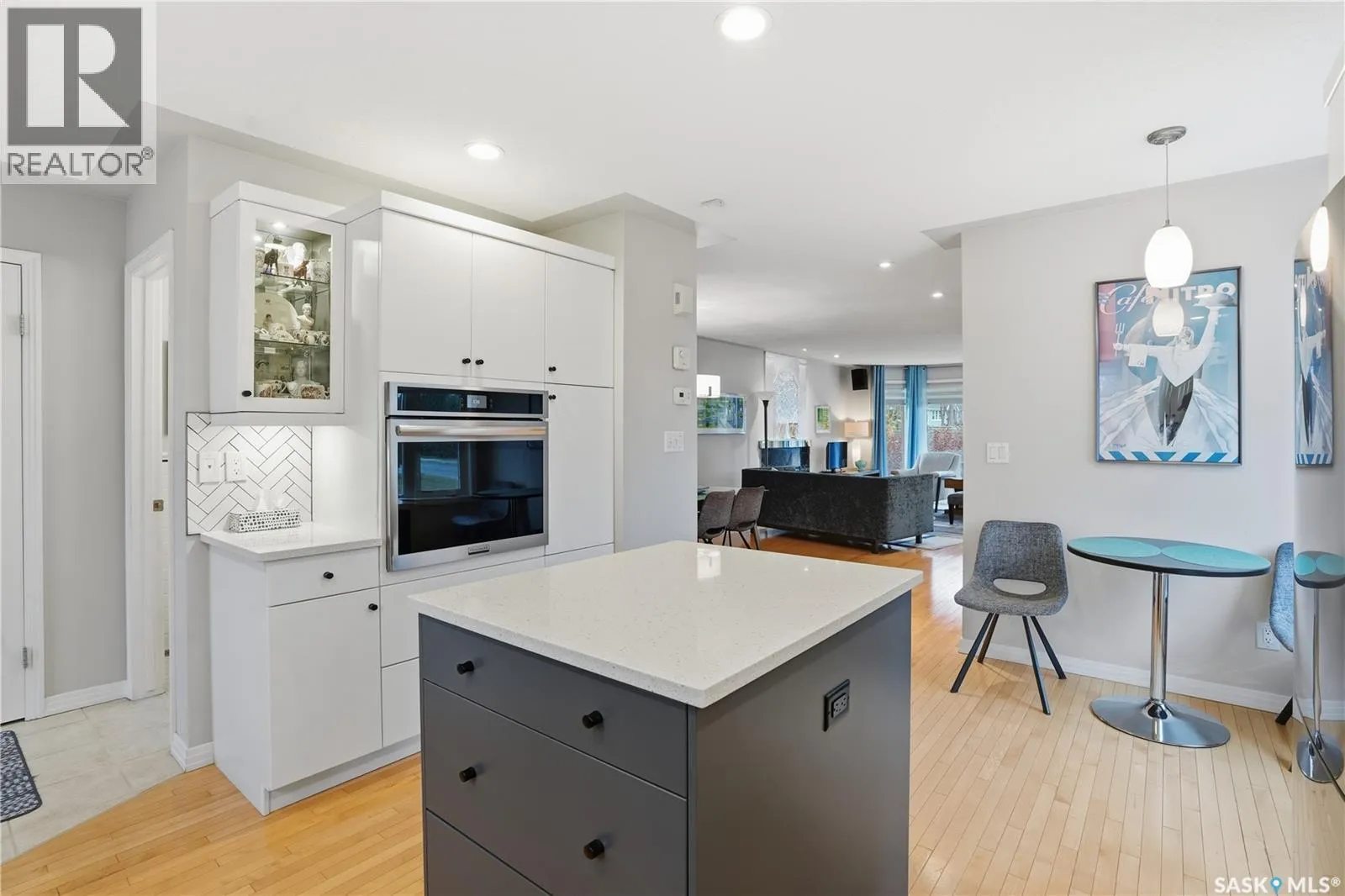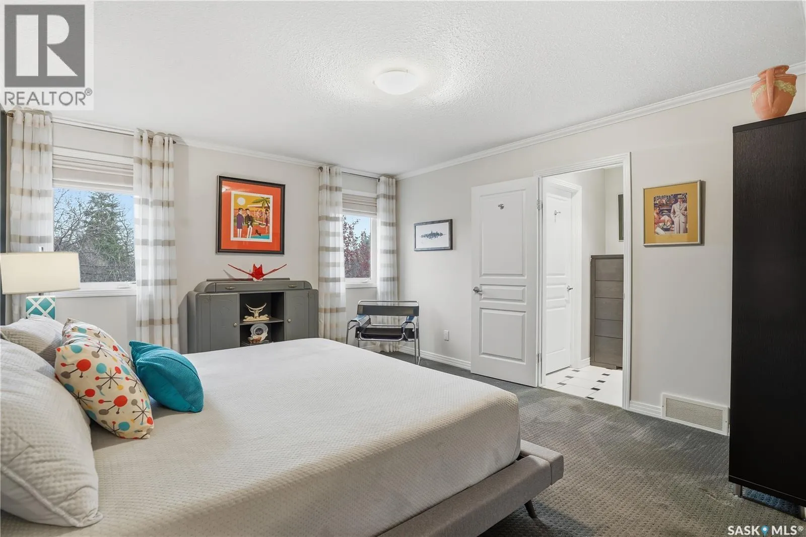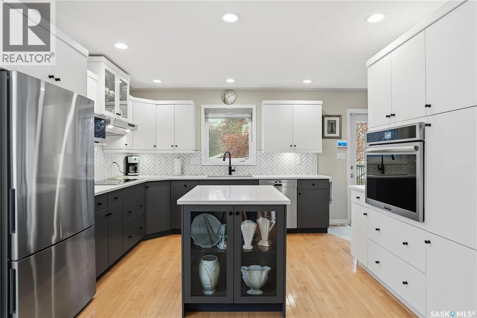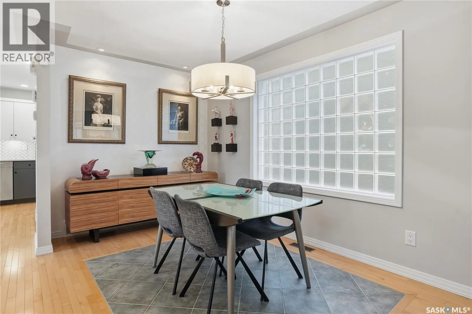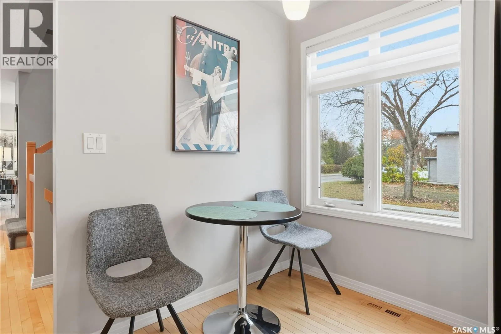 Welcome to 2576 Cameron Street. This charming 2 story is located in the desirable Crescents Neighbourhood. Immediately you will notice the attractive curb appeal with a large front and side yard that has been beautifully landscaped. Custom Ripplinger build distinguished by meticulous attention to detail, tastefully decorated and offering 1588 square feet of living space. As you enter you will be greeted by the large foyer and open concept living space. Large windows allow for an abundance of natural light. Living room features maple hardwood flooring that continues throughout the main level, lovely drapery which is included, and a gas fireplace with marble surround and custom plaster feature wall. Living room speakers can also stay if the buyer so chooses. The spacious dining room boasts a ceramic tile floor inlay and back lighting accenting the glass block wall. The kitchen is a chefâs dream with plenty of counter space, two tone custom cabinets, herringbone pattern subway tile backsplash, and stainless steel appliances which are included. Off the kitchen you will find a 2 piece bathroom and entry to the backyard with a large tiered deck and 2 car detached garage with lane access. Primary bedroom can be found upstairs with direct access to walk in closet and the large 5 piece bathroom featuring a jacuzzi tub, a glass block shower and in floor heating. 2 more bedrooms and laundry complete the second level. The basement is the perfect entertaining space with a media room which includes the projector and screen along with surround sound system. Large storage/ utility space with additional fridge and freezer that are both included. This property is conveniently located close to Downtown, The Royal Saskatchewan Museum, Wascana Park and mere steps from green space. Additional features include: shingles 2022, furnace 2016, central air conditioning, roughed in plumbing in basement, and roughed in natural gas hook up. (id:27476)