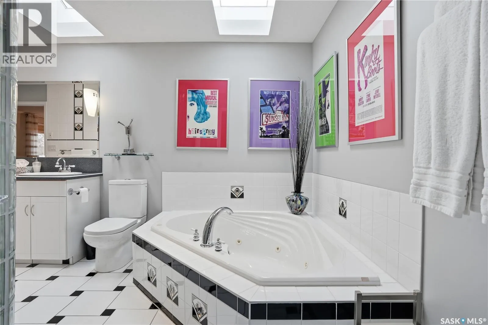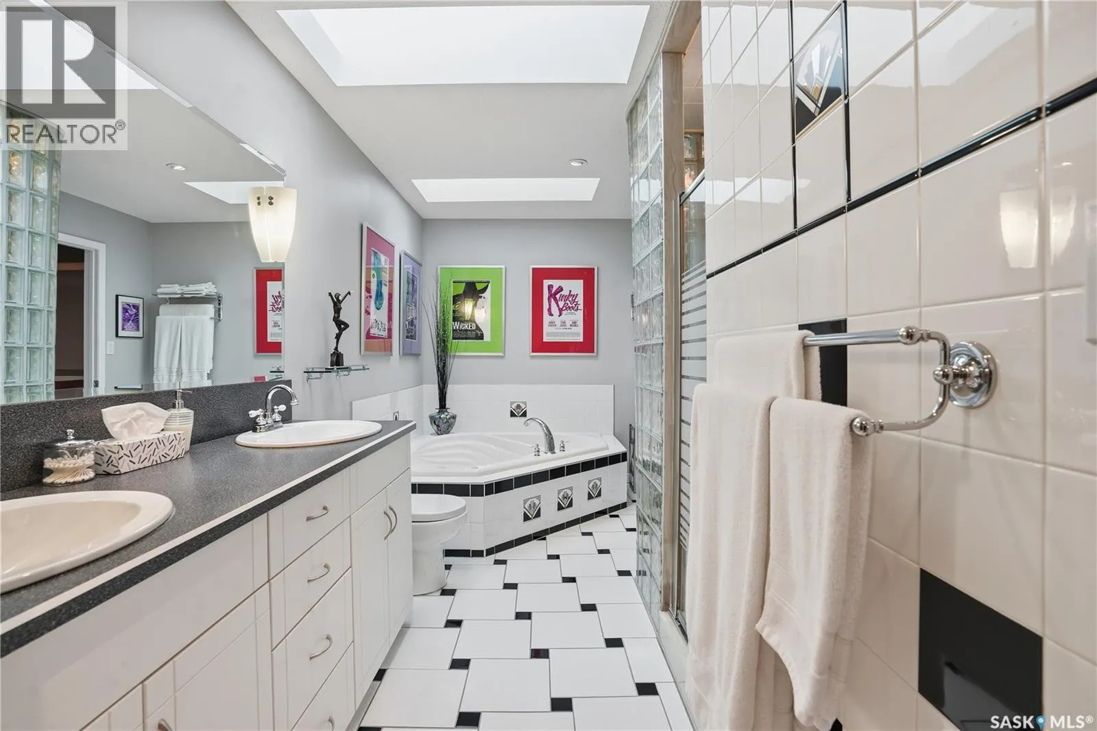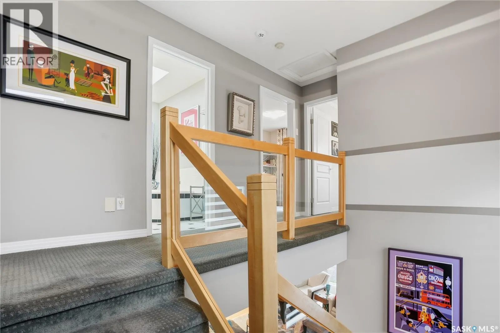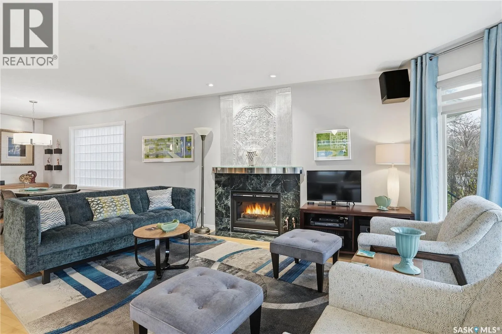 Welcome to 2576 Cameron Street. This charming 2 story is located in the desirable Crescents Neighbourhood. Immediately you will notice the attractive curb appeal with a large front and side yard that has been beautifully landscaped. Custom Ripplinger build distinguished by meticulous attention to detail, tastefully decorated and offering 1588 square feet of living space. As you enter you will be greeted by the large foyer and open concept living space. Large windows allow for an abundance of natural light. Living room features maple hardwood flooring that continues throughout the main level, lovely drapery which is included, and a gas fireplace with marble surround and custom plaster feature wall. Living room speakers can also stay if the buyer so chooses. The spacious dining room boasts a ceramic tile floor inlay and back lighting accenting the glass block wall. The kitchen is a chefâs dream with plenty of counter space, two tone custom cabinets, herringbone pattern subway tile backsplash, and stainless steel appliances which are included. Off the kitchen you will find a 2 piece bathroom and entry to the backyard with a large tiered deck and 2 car detached garage with lane access. Primary bedroom can be found upstairs with direct access to walk in closet and the large 5 piece bathroom featuring a jacuzzi tub, a glass block shower and in floor heating. 2 more bedrooms and laundry complete the second level. The basement is the perfect entertaining space with a media room which includes the projector and screen along with surround sound system. Large storage/ utility space with additional fridge and freezer that are both included. This property is conveniently located close to Downtown, The Royal Saskatchewan Museum, Wascana Park and mere steps from green space. Additional features include: shingles 2022, furnace 2016, central air conditioning, roughed in plumbing in basement, and roughed in natural gas hook up. (id:27476)