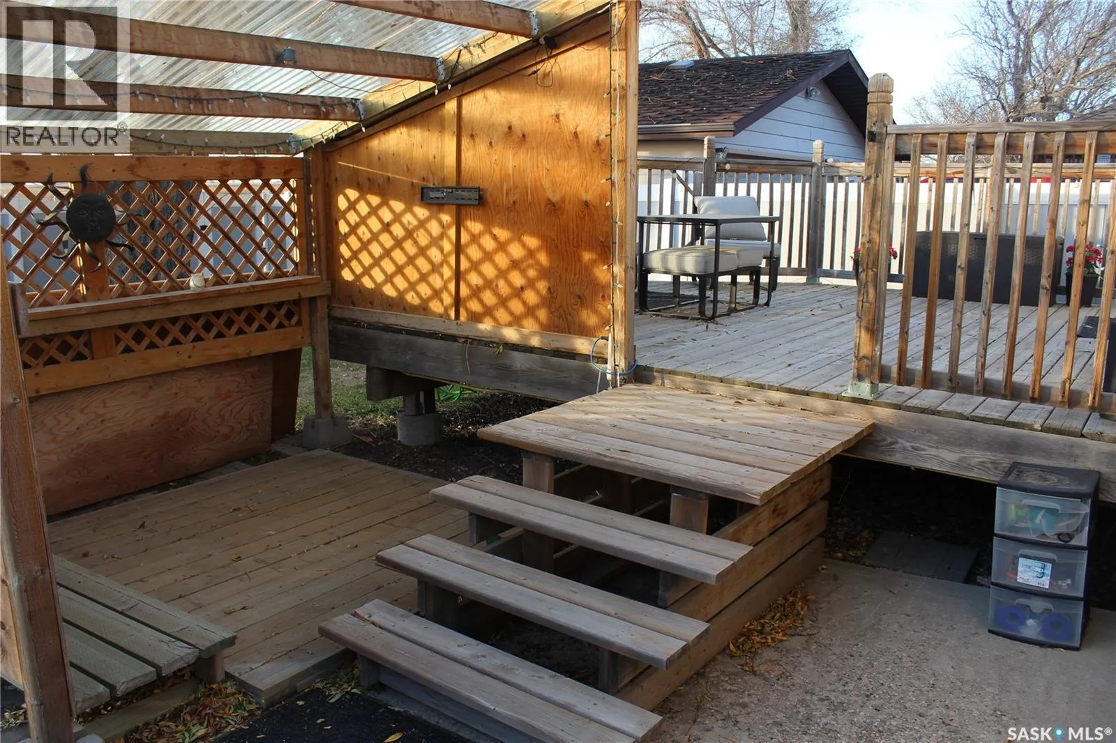 This is a great bungalow that will be very close to the new Costco when completed and the backyard open to a field with no neighbours at the back! The front exterior landscaping is maintenance free and has a large welcoming deck with newer driveway for two cars. As you enter you will notice the large foyer for greeting guests and plenty of closet space. The open concept living and kitchen area is great for entertaining with newer flooring and lighting. The kitchen offers plenty of cabinet space and all newer appliances are include. Down the hall is an updated four piece bath and one bedroom with an additional large master bedroom. The den with door to the large deck could easily be transformed to another bedroom if required. Downstairs (recently renovated) you will find a fantastic rec area and games area with new flooring and another den area that would not be a bedroom as window is not egress. The storage area offers laundry as well. The back yard is great and offers a large deck, area for hot tub, patio with fire pit at the back and is fully fenced. Great views of open field from the backyard! This house is solid and would be a great investment so make your appointment to view today! (id:27476)
