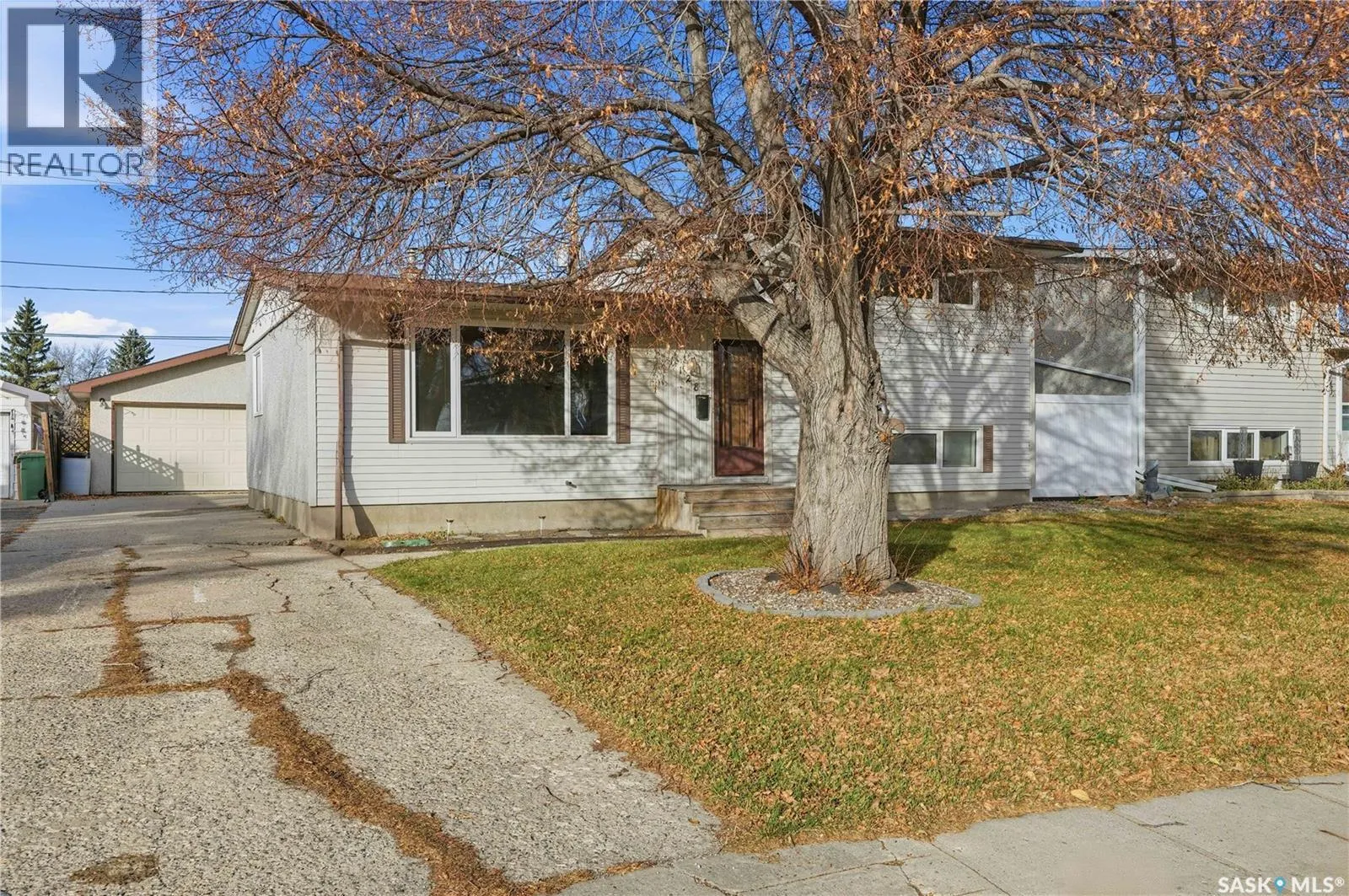 Great location on a quiet street in Regent Park! This big home is ready and waiting for a new family. The front entry with a convenient built-in bench, overlooks the living room and dining room that are flooded with natural light from the big windows. Youâll find original hardwood flooring here and in other rooms throughout this 1586sqft home. The kitchen has new laminate flooring, loads of cupboards, a pantry with slide out shelves and handy computer desk. The bay window over the sink looks out to the maintenance free 12x20ft composite deck and the big yard backing open space with new PVC fencing and a big 22x26 insulated garage (Gas line installed). Your family will certainly appreciated the lovely large bedrooms in this home â 2 on the 3rd level with the family bathroom and 2 on the 3rd level with brand new half bath. Two bedrooms have extra deep closets and the others have 2 closets in each. The lower level is finished with a family room and laundry room. There is tons of storage in the utility room and in the crawl space with concrete floor. This home has been freshly painted and features PVC windows, central air conditioning, some new flooring & light fixtures, updated bath, a big lot with 55ft frontage and more! All appliances and 2 freezers included. Close to shopping and schools, easy access to Lewvan Dr and Ring Road. Don't wait long, call for more information or a private viewing and move in before the holidays! (id:27476)