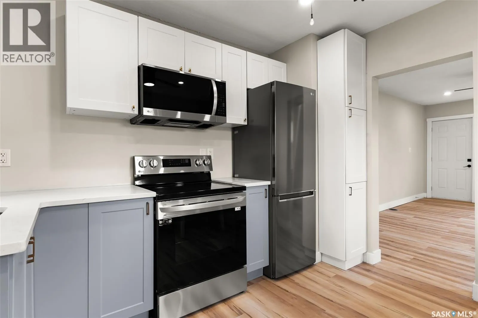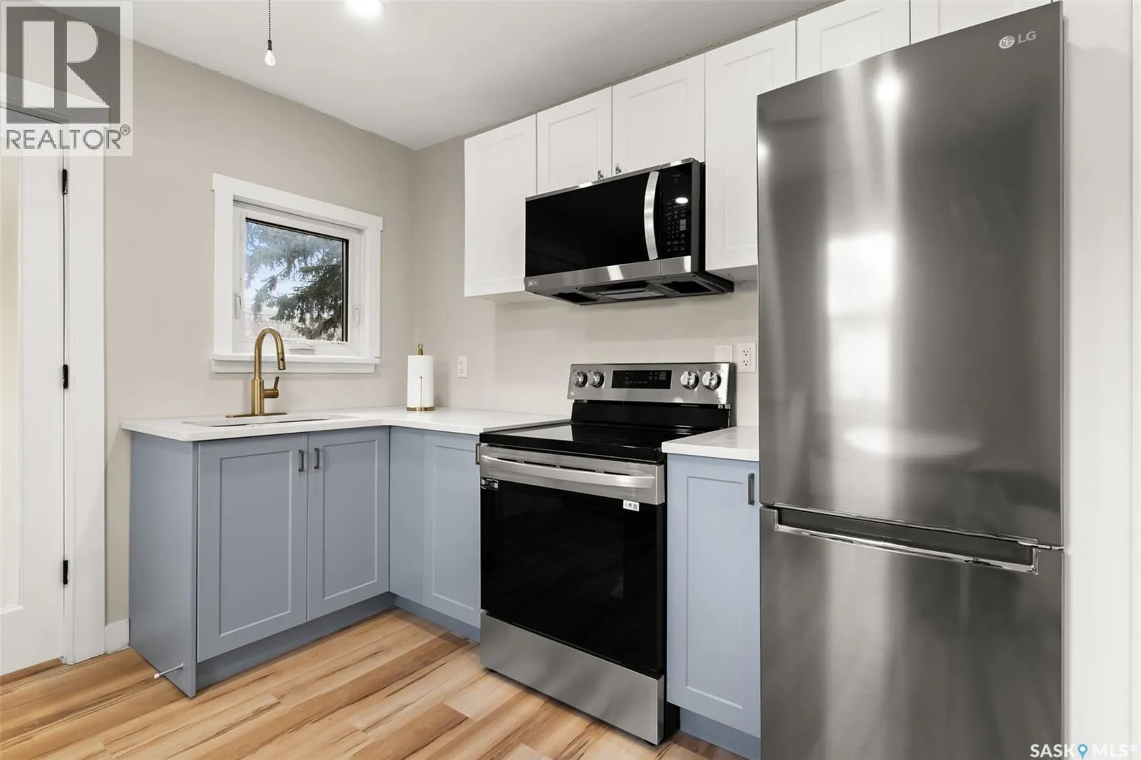 Welcome to 2301 Reynolds Street in Broders Annexâa refreshed bungalow offering move-in comfort in a mature, central location close to parks, schools, and downtown amenities. Thoughtful updates include fresh paint, modern lighting, and durable vinyl-plank flooring that carries through the bright living room and into the reimagined eat-in kitchen. The kitchen features crisp two-tone cabinetry, newer counters, brass-tone faucet/hardware, and stainless-steel appliances, including a microwave hood fan. Two comfortable bedrooms sit off the hallway beside an upgraded 4-piece bath with clean, contemporary finishes. Downstairs, a full, unfinished basement provides excellent storage and future development potential. Mechanical highlights include forced-air natural gas heat. Included: fridge, stove, microwave hood fan, washer, dryer, and window coverings. Outside, the fenced yard has alley access and room to add a future garage or parking pad. The backyard is perfect for customizing to your needs. (id:27476)