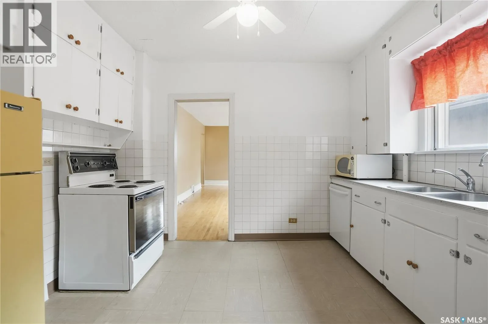 Very well cared for bungalow close to school. 2 bedroom, 1 bath with basement rec room, hardwood through main floor. Large bright living room with South and East windows. Nice kitchen with ample counter space including fridge, stove and dishwasher. Main bedroom has walk-in closet. 4 piece main bath with acrylic soaker tub. Basement offers rec room with wet bar area, Laundry area with washer and dryer and storage area. Large backyard with room for Garage off the alley. (id:27476)