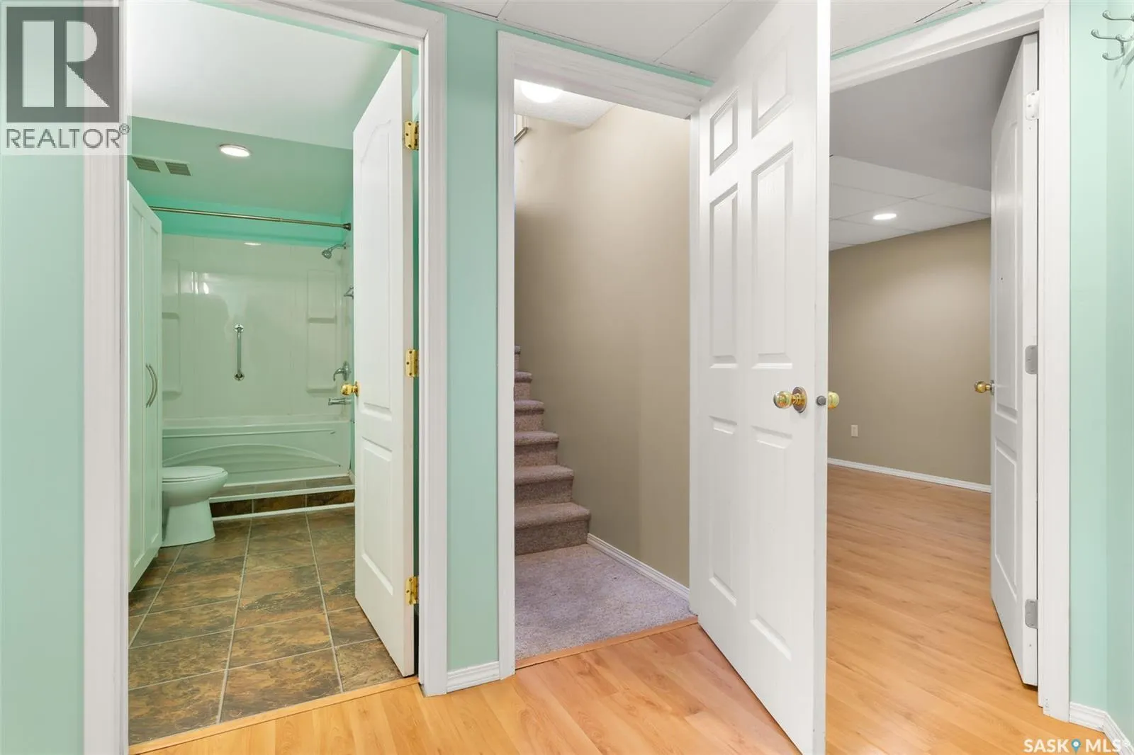 Welcome to 938 Brachman Bay, a beautifully maintained bungalow nestled in the highly desirable Parkridge neighbourhood. Situated on a quiet, family-friendly bay, this home offers the perfect blend of comfort, space, and convenience. Step inside to find a bright and inviting main floor featuring a spacious living room, functional kitchen with ample cabinetry, and a cozy dining area that overlooks the large backyard. The main level hosts three generous bedrooms and a complete full bathroom, making it ideal for families or anyone who appreciates single-level living. Downstairs, youâll find a non-regulation basement suite with two additional bedrooms and den/office space, a full kitchen, living area, and bathroom - perfect for extended family, guests, or potential rental income. The layout offers privacy while maintaining great flexibility for a variety of lifestyles. Outside, enjoy the expansive pie shaped, fully fenced yard, offering plenty of room for children or pets to play, gardening, or summer entertaining. The attached, heated double garage provides ample parking and storage. Parkridge is known for its quiet streets, excellent schools, and nearby parks, including Henry Braun School and Park and Parkridge Park. Youâll also appreciate the proximity to shopping, restaurants, walking paths, and all east-end amenities, making this location both peaceful and convenient. Clean, move-in ready, and full of potential, 938 Brachman Bay is the perfect place to call home. Donât miss your opportunity to own a spacious bungalow in one of Reginaâs most sought-after communities! (id:27476)
