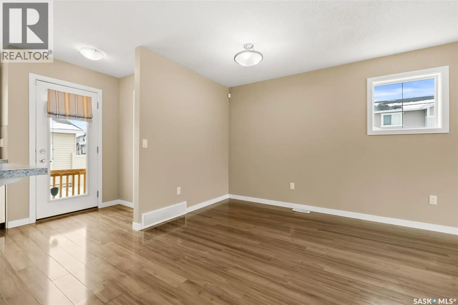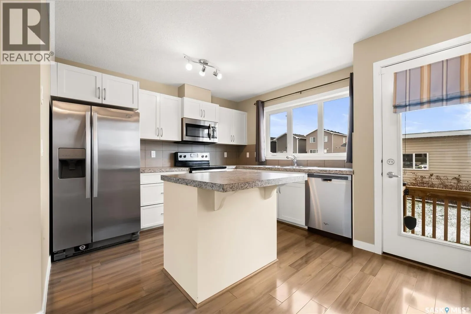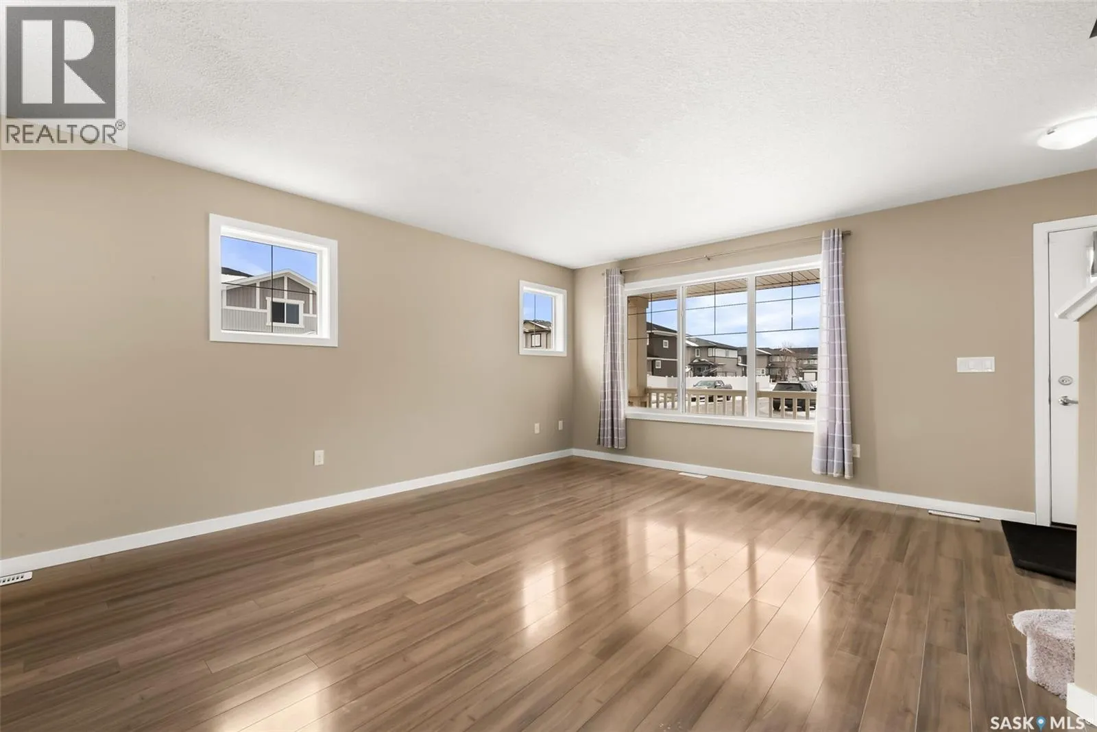 Nestled on a desirable corner lot in Regina's Harbour Landing, this beautifully maintained 1,151 sqft two-storey home is perfectly positioned just steps from Norseman Park, one of Regina's largest parks offering a full suite of outdoor fun and activities. Inside, a bright and welcoming atmosphere is created by an abundance of natural light flooding the open-concept main floor, where the living and dining areas flow seamlessly into a modern kitchen with stylish cabinetry, durable countertops, and stainless steel appliances. Upstairs, you'll find three comfortable bedrooms, including a spacious master suite with a convenient walk-in closet, all serviced by a well-appointed full bathroom, while the lovely backyard with a patio is ideal for entertaining. The home's impressive potential extends to the partially finished basement, offering exciting opportunities for future development and added living space. Beyond its charm, this home features significant, high-caliber investments including a premium professional spray foam insulated garageâa superior and costly upgrade ensuring exceptional energy efficiencyâand is complemented by a high-value 200-amp electrical upgrade, a substantial investment providing modern power capacity. Together with a tankless water heater, these top-tier updates offer unparalleled efficiency and are a testament to the superior quality and care invested in this exceptional property. This property is a must-seeâcontact your agent today for a private viewing. As per the Sellerâs direction, all offers will be presented on 11/17/2025 6:00PM. (id:27476)