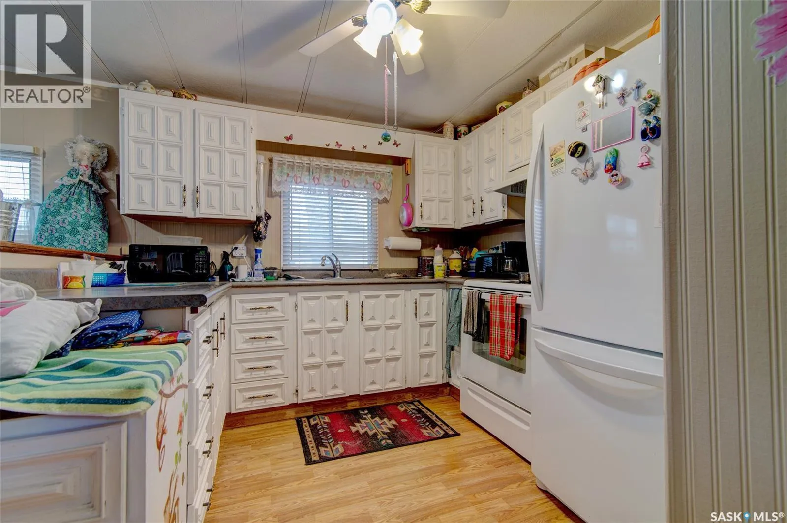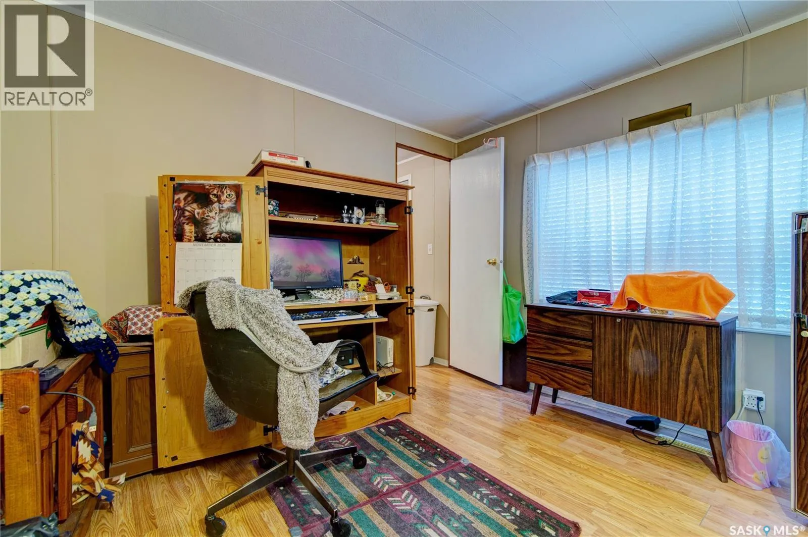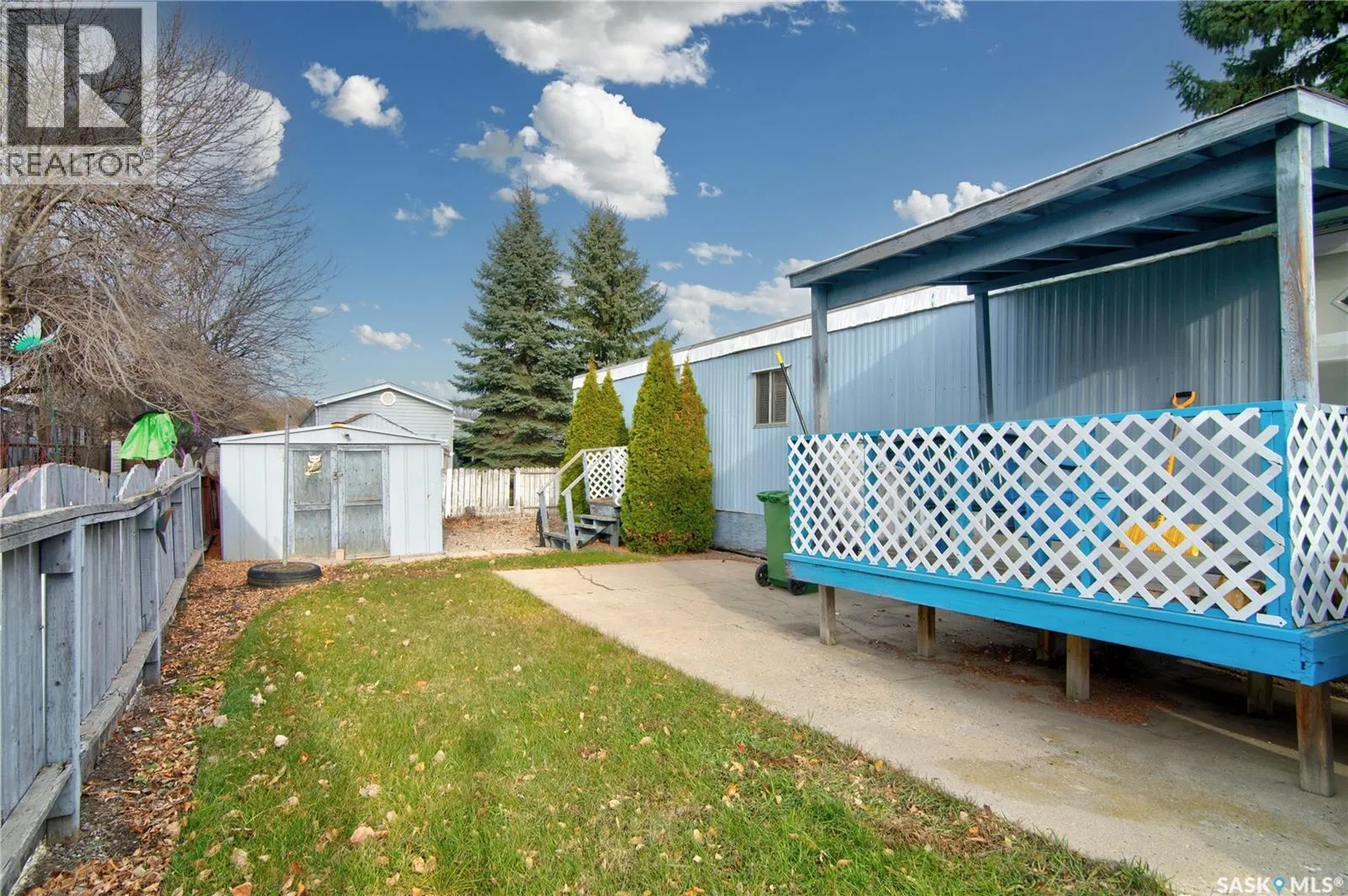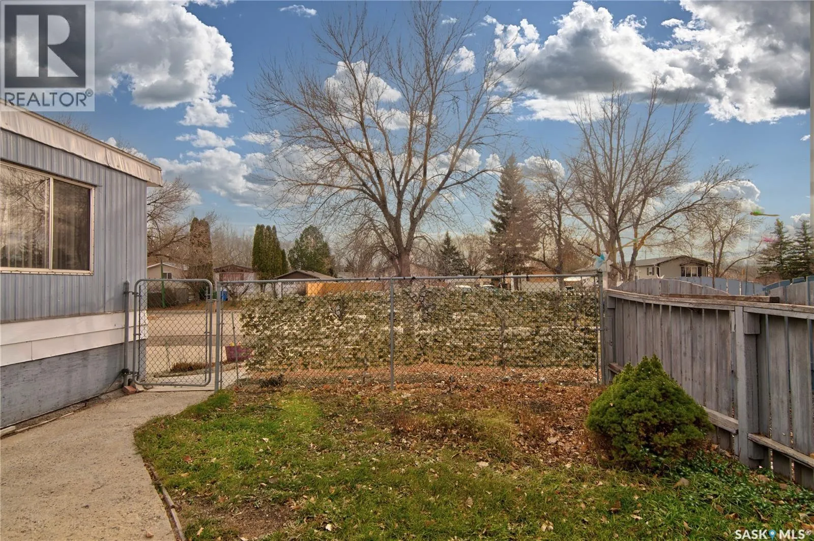Checkout this affordable starter or retirement home in a quiet trailer park North of Regina. Location is close to all amenities. This property boasts a huge yard with a huge shed in the back, providing plenty of storage. Furnace is newer, but the central air is older - the seller says it works like a charm. Some renovations have taken place over the years and property appears solid and very clean. Move in condition! Seller is willing to leave some furniture behind. Quick possession is available. Master bedroom is quite large as the trailer was a 3 bedroom and could be converted back. This home could also be a revenue home. Property is priced to sell with a quick possession. (id:27476)