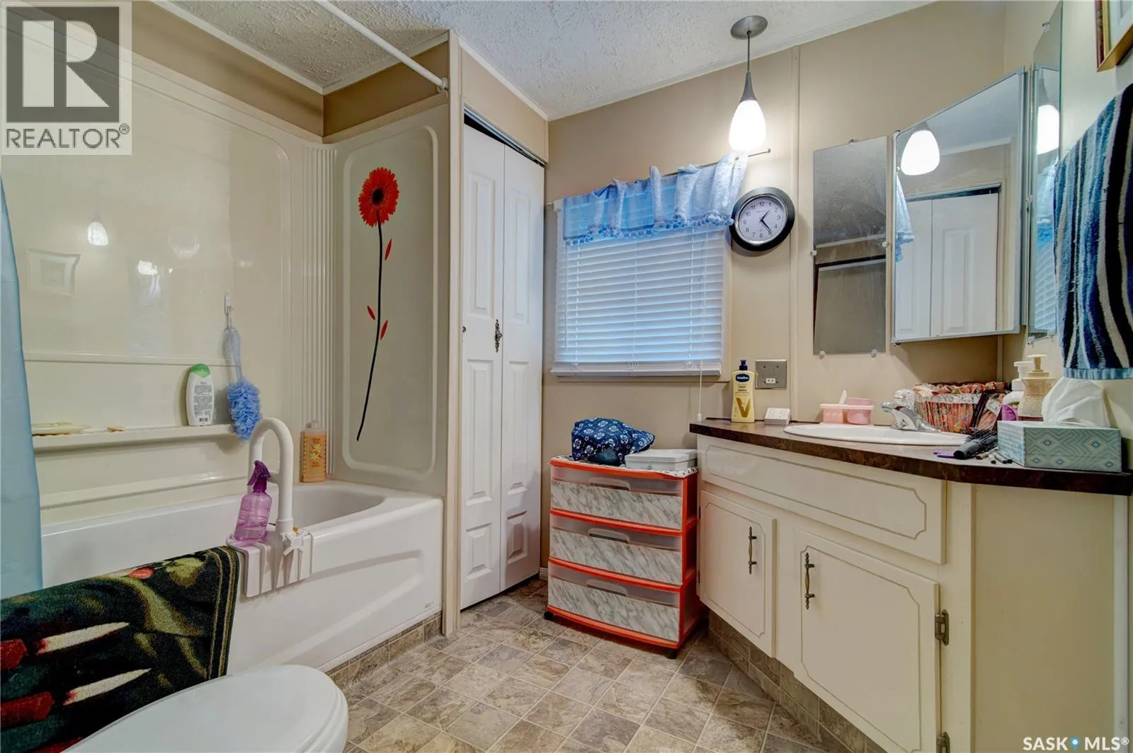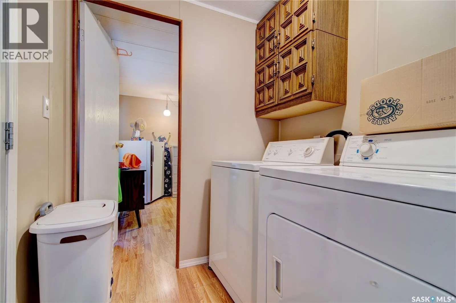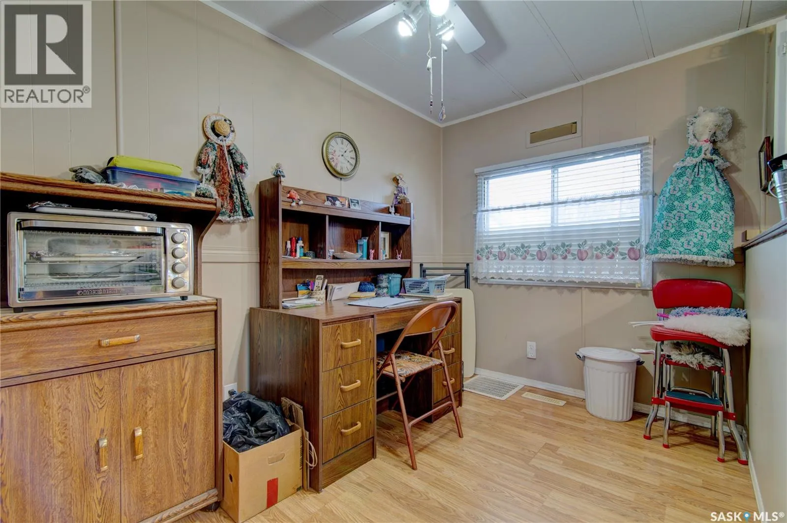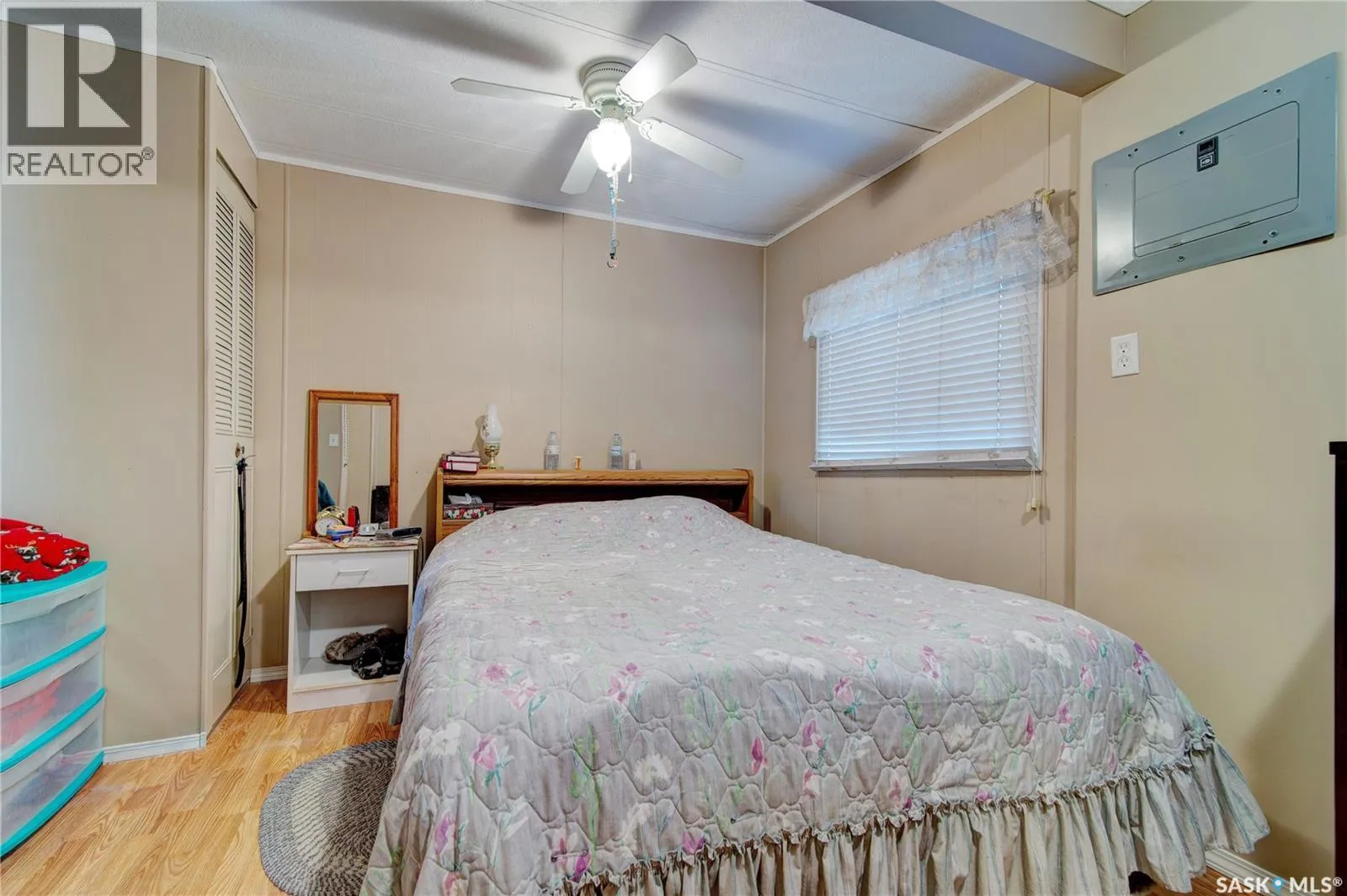 Checkout this affordable starter or retirement home in a quiet trailer park North of Regina. Location is close to all amenities. This property boasts a huge yard with a huge shed in the back, providing plenty of storage. Furnace is newer, but the central air is older - the seller says it works like a charm. Some renovations have taken place over the years and property appears solid and very clean. Move in condition! Seller is willing to leave some furniture behind. Quick possession is available. Master bedroom is quite large as the trailer was a 3 bedroom and could be converted back. This home could also be a revenue home. Property is priced to sell with a quick possession. (id:27476)