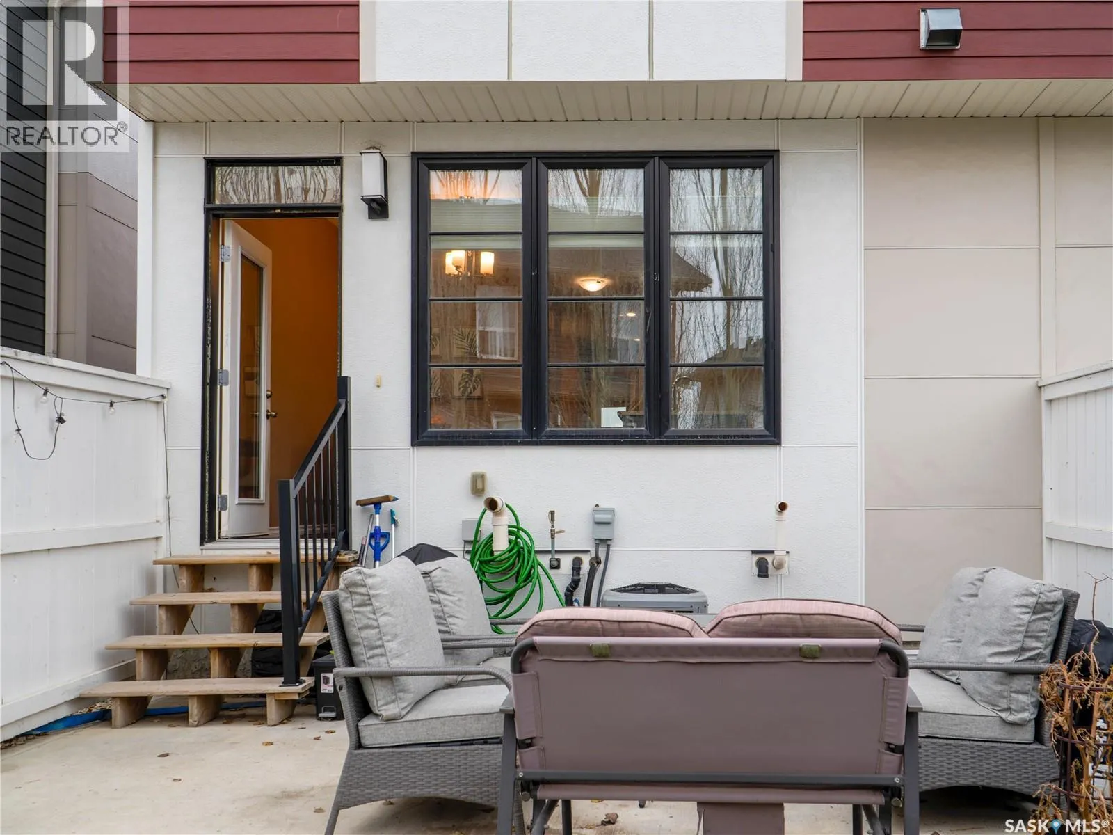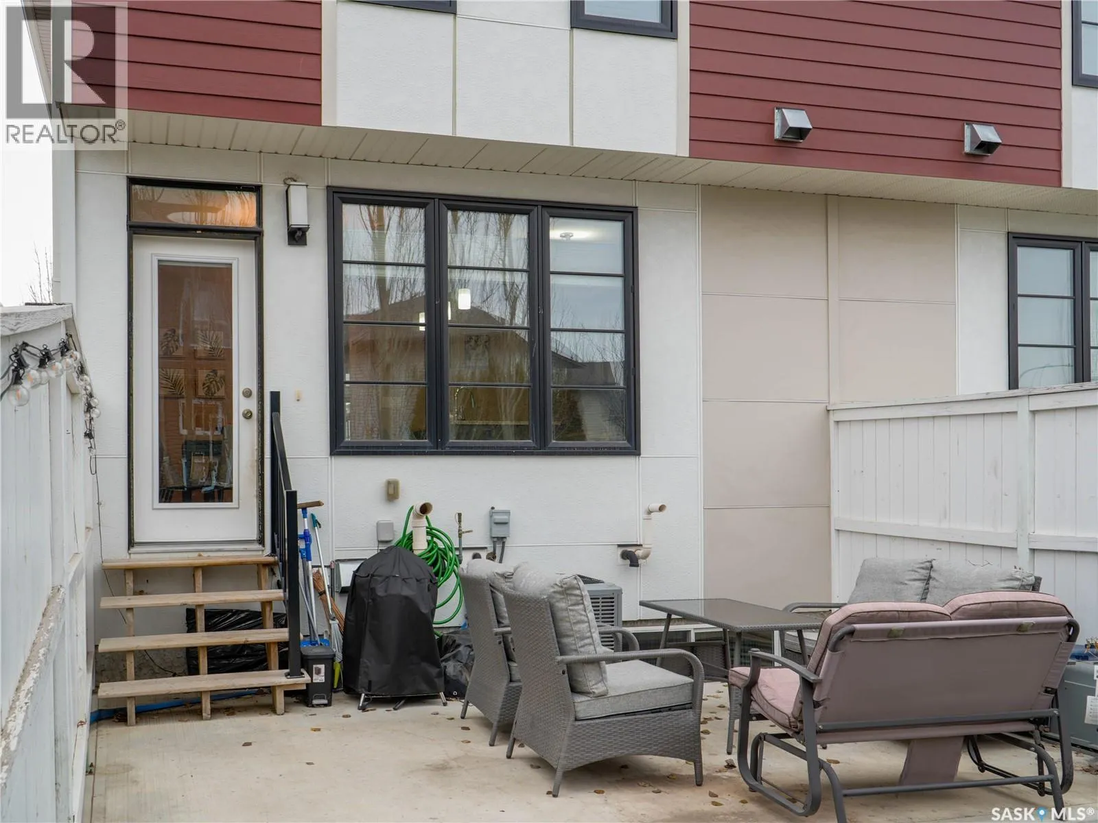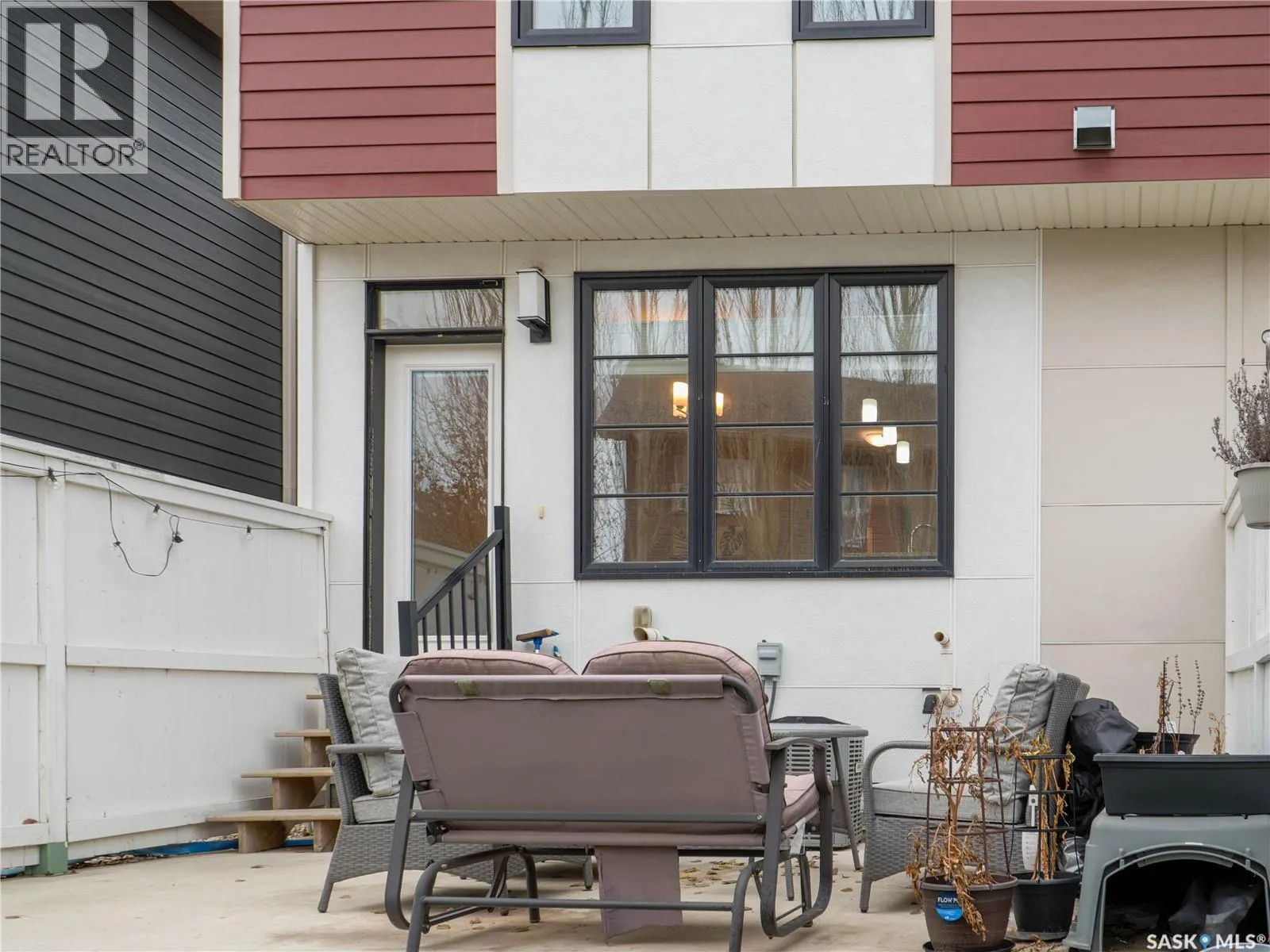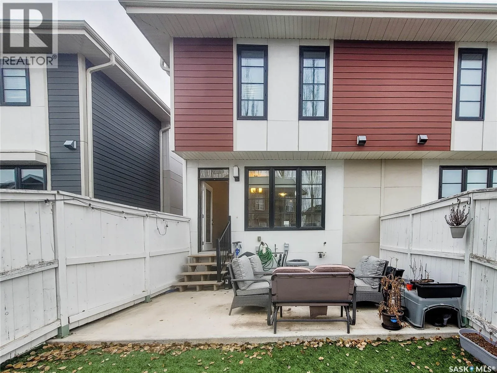 If you are looking for an elegant and well-maintained condominium in Reginaâs north end, consider 108â3229 Elgaard Drive in the desirable community of Hawkstone. Upon entry, you are greeted by quality finishes and a modern, cohesive color palette. The main floor features attractive linoleum flooring and large windows that bring in plenty of natural light. The functional kitchen includes stainless steel appliances, espresso maple cabinetry, and granite countertops, along with a spacious dining area. A comfortable living room, a convenient two-piece powder room, and garden doors leading to a private backyard complete the main level. Upstairs, the primary bedroom offers a generous layout with a walk-in closet. Two additional bedrooms and a four-piece bathroom make this home suitable for families, guests, or roommates. The lower level is open for future development, giving you the opportunity to customize the space. Additional highlights include central air conditioning, two dedicated parking stalls, low condo fees, and ample visitor parking. (id:27476)