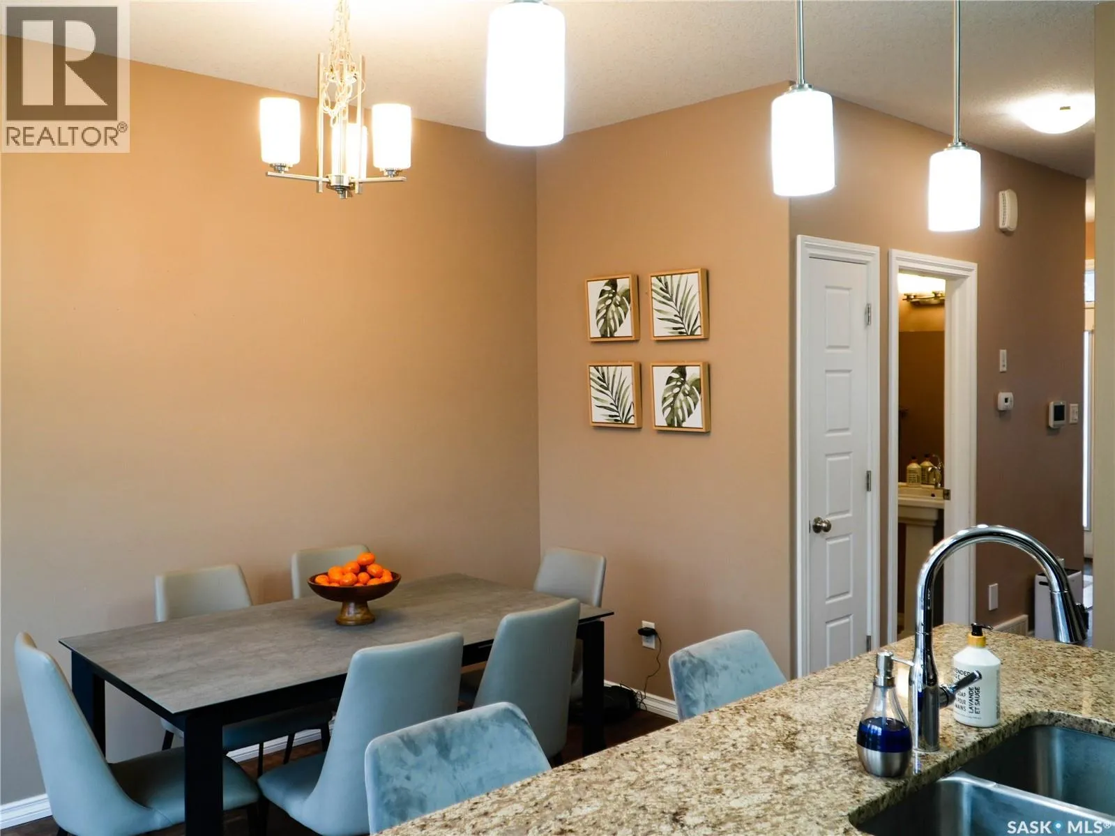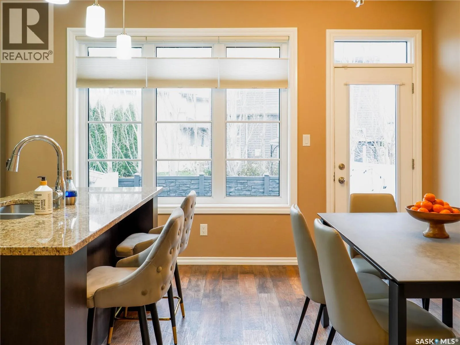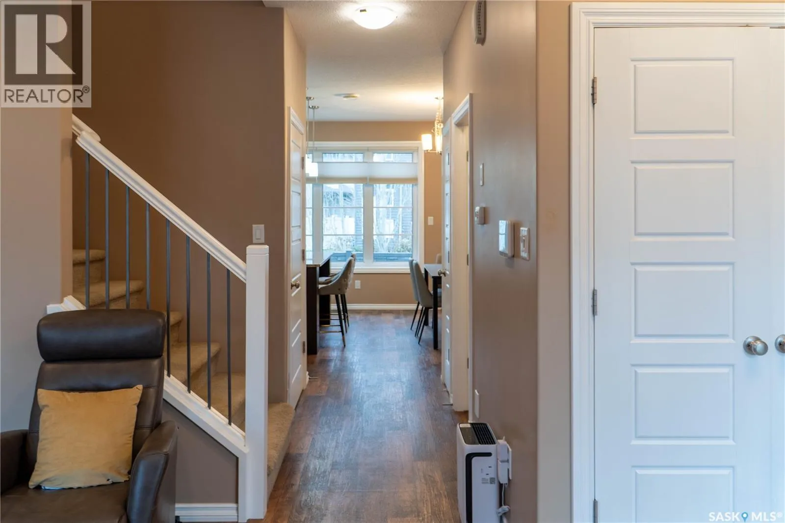 If you are looking for an elegant and well-maintained condominium in Reginaâs north end, consider 108â3229 Elgaard Drive in the desirable community of Hawkstone. Upon entry, you are greeted by quality finishes and a modern, cohesive color palette. The main floor features attractive linoleum flooring and large windows that bring in plenty of natural light. The functional kitchen includes stainless steel appliances, espresso maple cabinetry, and granite countertops, along with a spacious dining area. A comfortable living room, a convenient two-piece powder room, and garden doors leading to a private backyard complete the main level. Upstairs, the primary bedroom offers a generous layout with a walk-in closet. Two additional bedrooms and a four-piece bathroom make this home suitable for families, guests, or roommates. The lower level is open for future development, giving you the opportunity to customize the space. Additional highlights include central air conditioning, two dedicated parking stalls, low condo fees, and ample visitor parking. (id:27476)