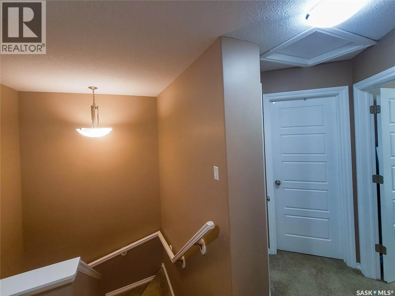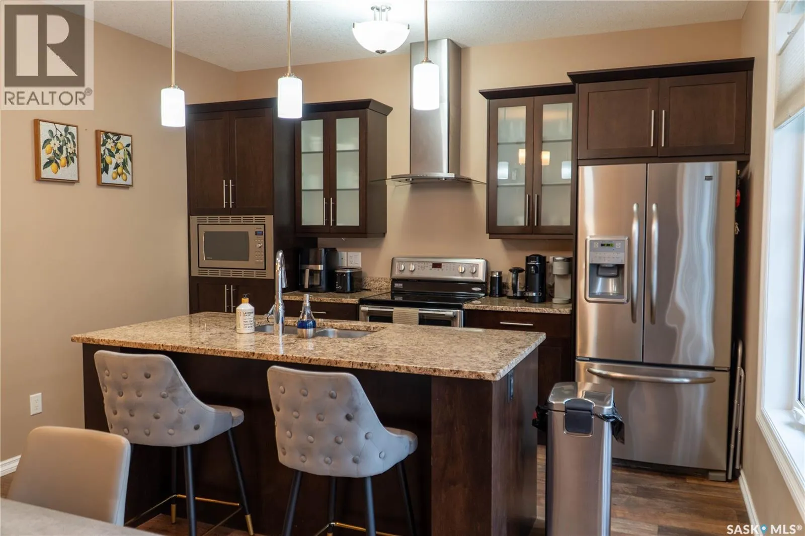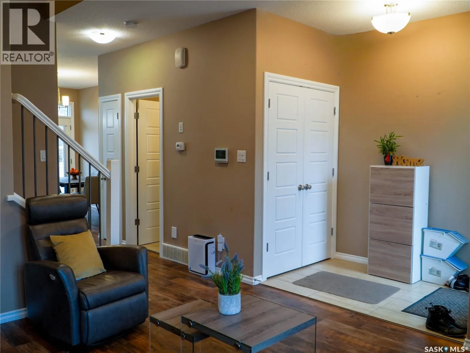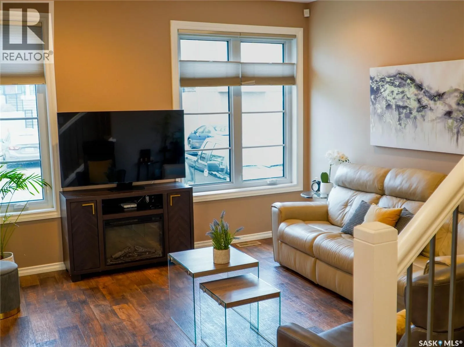 If you are looking for an elegant and well-maintained condominium in Reginaâs north end, consider 108â3229 Elgaard Drive in the desirable community of Hawkstone. Upon entry, you are greeted by quality finishes and a modern, cohesive color palette. The main floor features attractive linoleum flooring and large windows that bring in plenty of natural light. The functional kitchen includes stainless steel appliances, espresso maple cabinetry, and granite countertops, along with a spacious dining area. A comfortable living room, a convenient two-piece powder room, and garden doors leading to a private backyard complete the main level. Upstairs, the primary bedroom offers a generous layout with a walk-in closet. Two additional bedrooms and a four-piece bathroom make this home suitable for families, guests, or roommates. The lower level is open for future development, giving you the opportunity to customize the space. Additional highlights include central air conditioning, two dedicated parking stalls, low condo fees, and ample visitor parking. (id:27476)