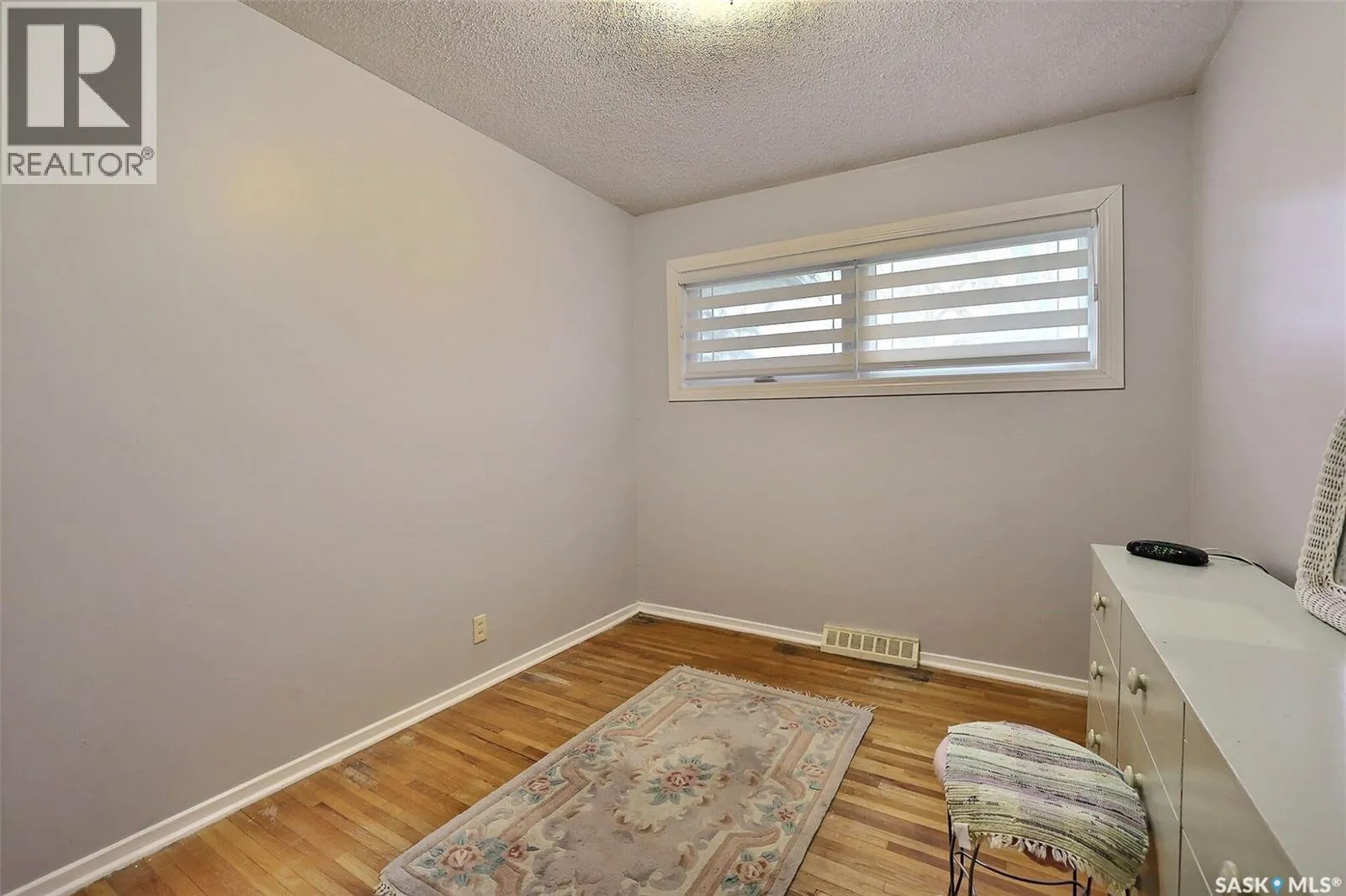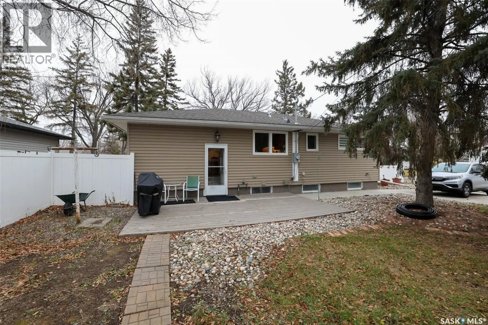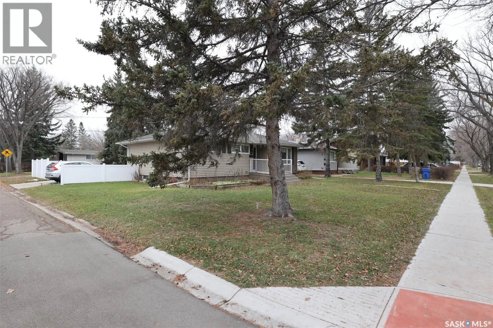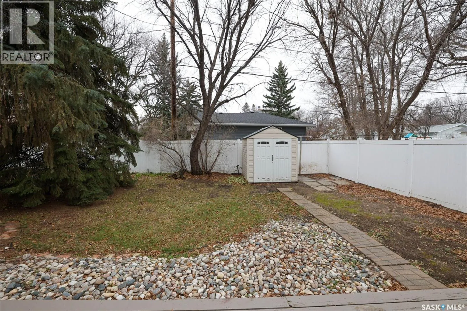 Fantastic bungalow in the heart of Whitmore Park! Situated on a corner lot just a short 5 minute drive to the University, you will see a home that has been well cared for and been with the same owner since 1976. The main floor features original hardwood floors, three bedrooms, one full bathroom, large living room, dining area and a good-sized kitchen. Exterior features include maintenance-free siding, upgraded shingles, vents and eavestroughs in 2018 and new sewer line to city pipe and backwater valve in 2025. Other value-added items to the home include high-efficient furnace, exterior doors, PVC windows, storage shed, and PVC fencing at the back. The basement is open for development with limitless potential. Imagine yourself living here in this quiet, family-friendly neighbourhood. To schedule your private viewing, please contact your REALTOR® today! (id:27476)