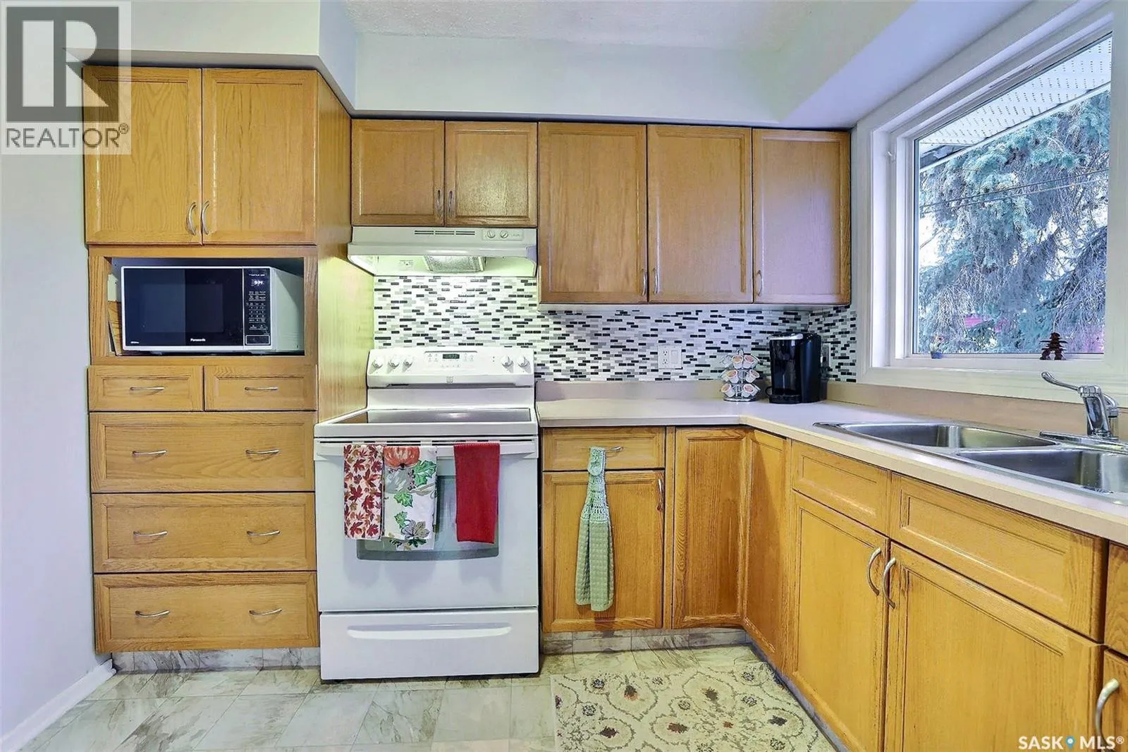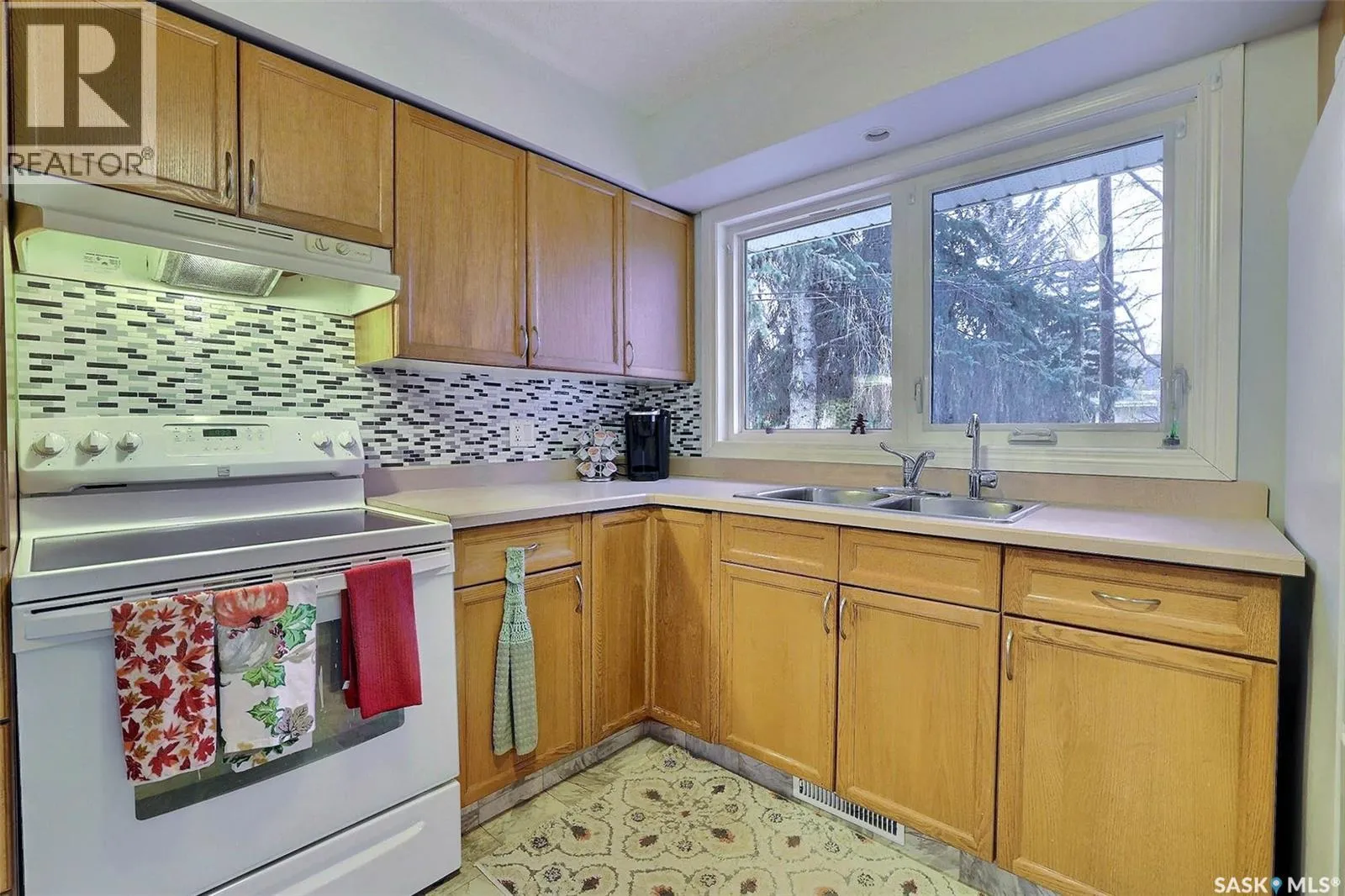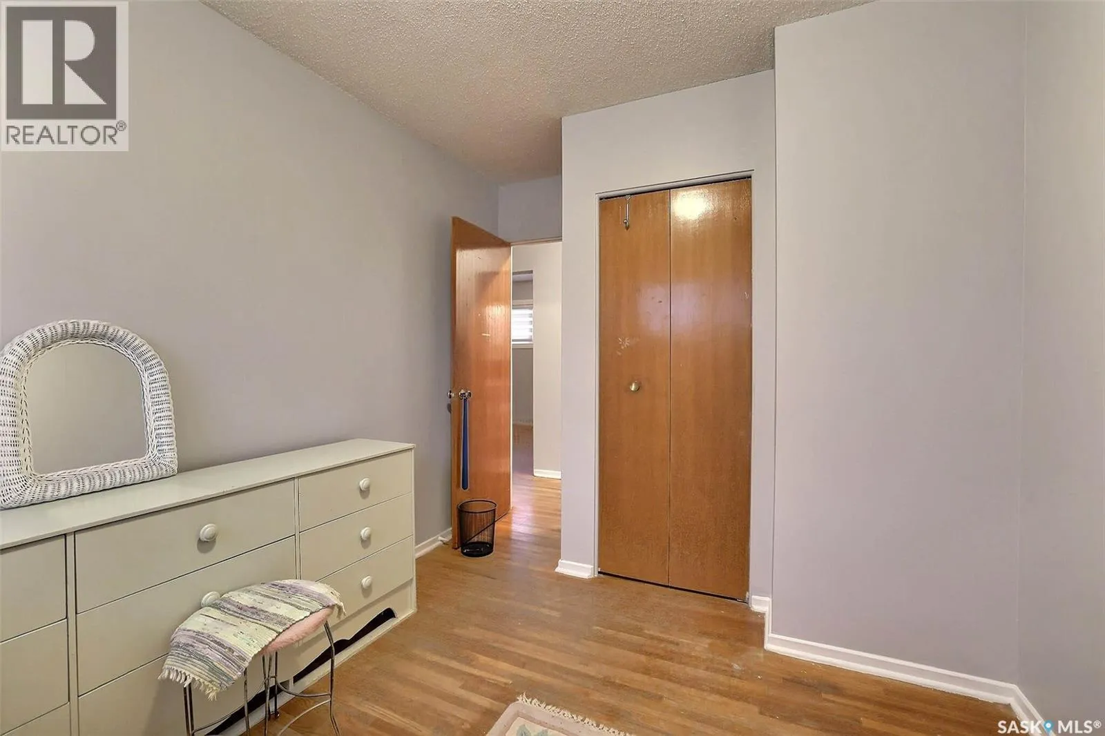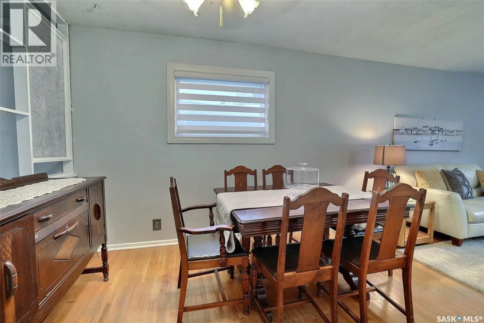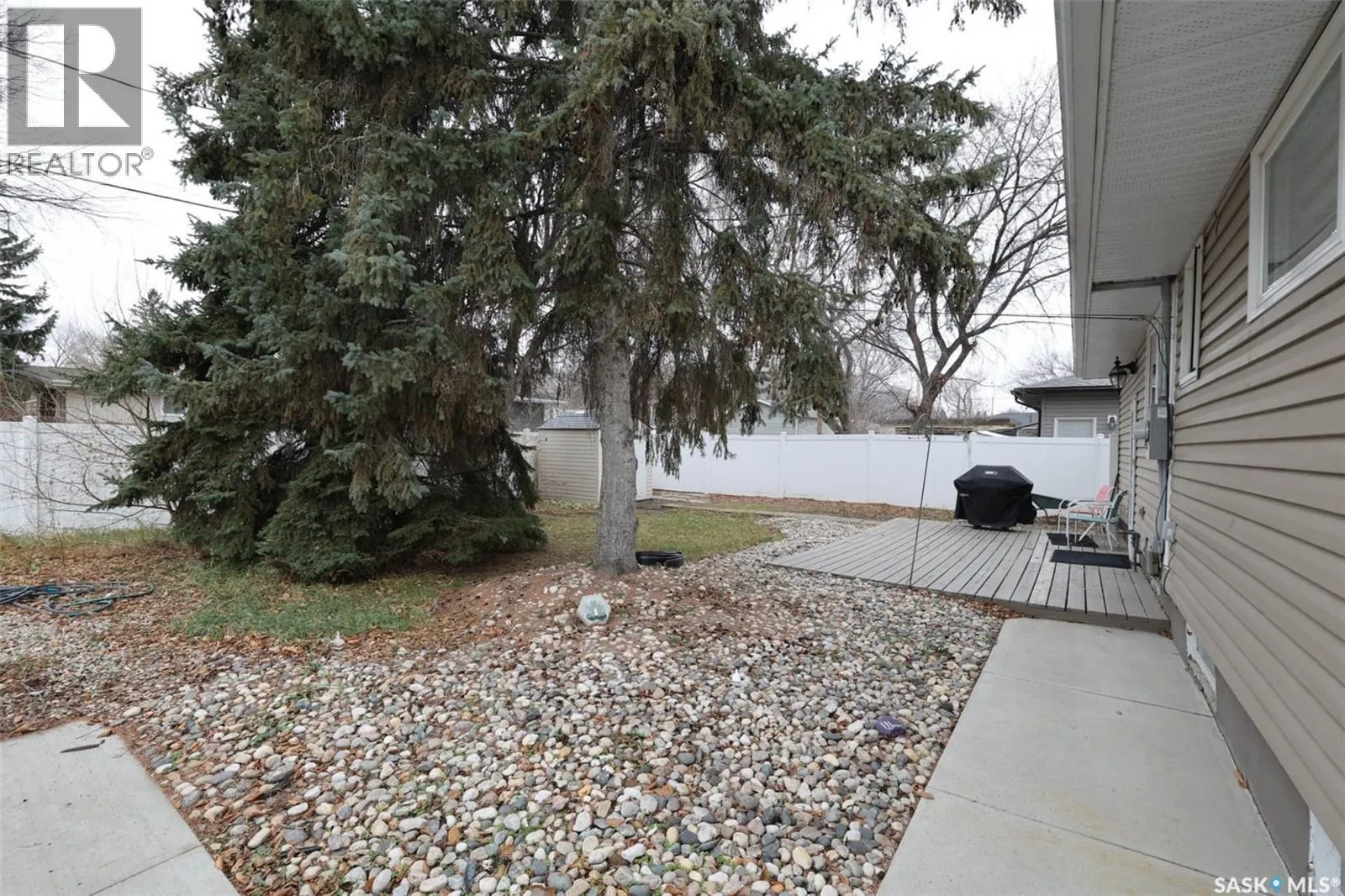 Fantastic bungalow in the heart of Whitmore Park! Situated on a corner lot just a short 5 minute drive to the University, you will see a home that has been well cared for and been with the same owner since 1976. The main floor features original hardwood floors, three bedrooms, one full bathroom, large living room, dining area and a good-sized kitchen. Exterior features include maintenance-free siding, upgraded shingles, vents and eavestroughs in 2018 and new sewer line to city pipe and backwater valve in 2025. Other value-added items to the home include high-efficient furnace, exterior doors, PVC windows, storage shed, and PVC fencing at the back. The basement is open for development with limitless potential. Imagine yourself living here in this quiet, family-friendly neighbourhood. To schedule your private viewing, please contact your REALTOR® today! (id:27476)