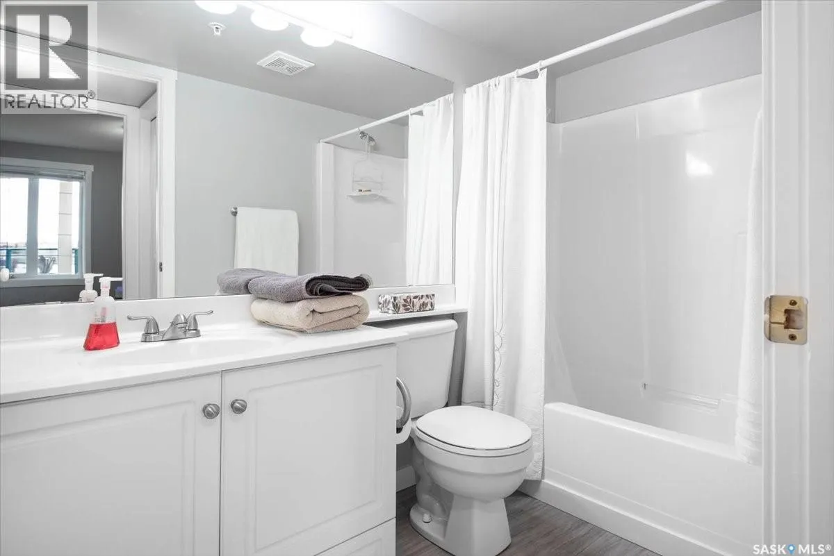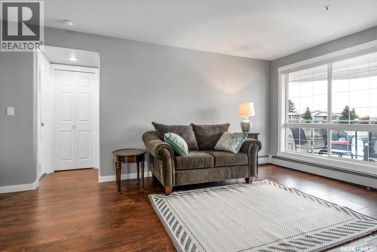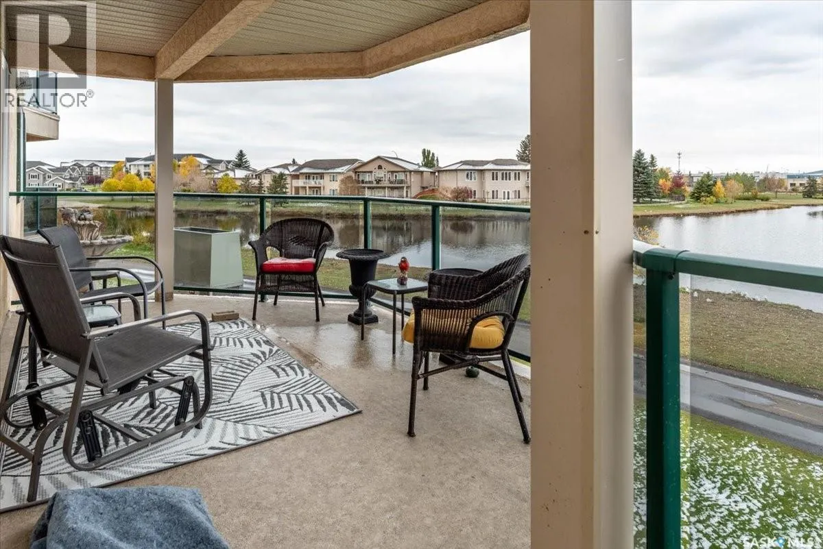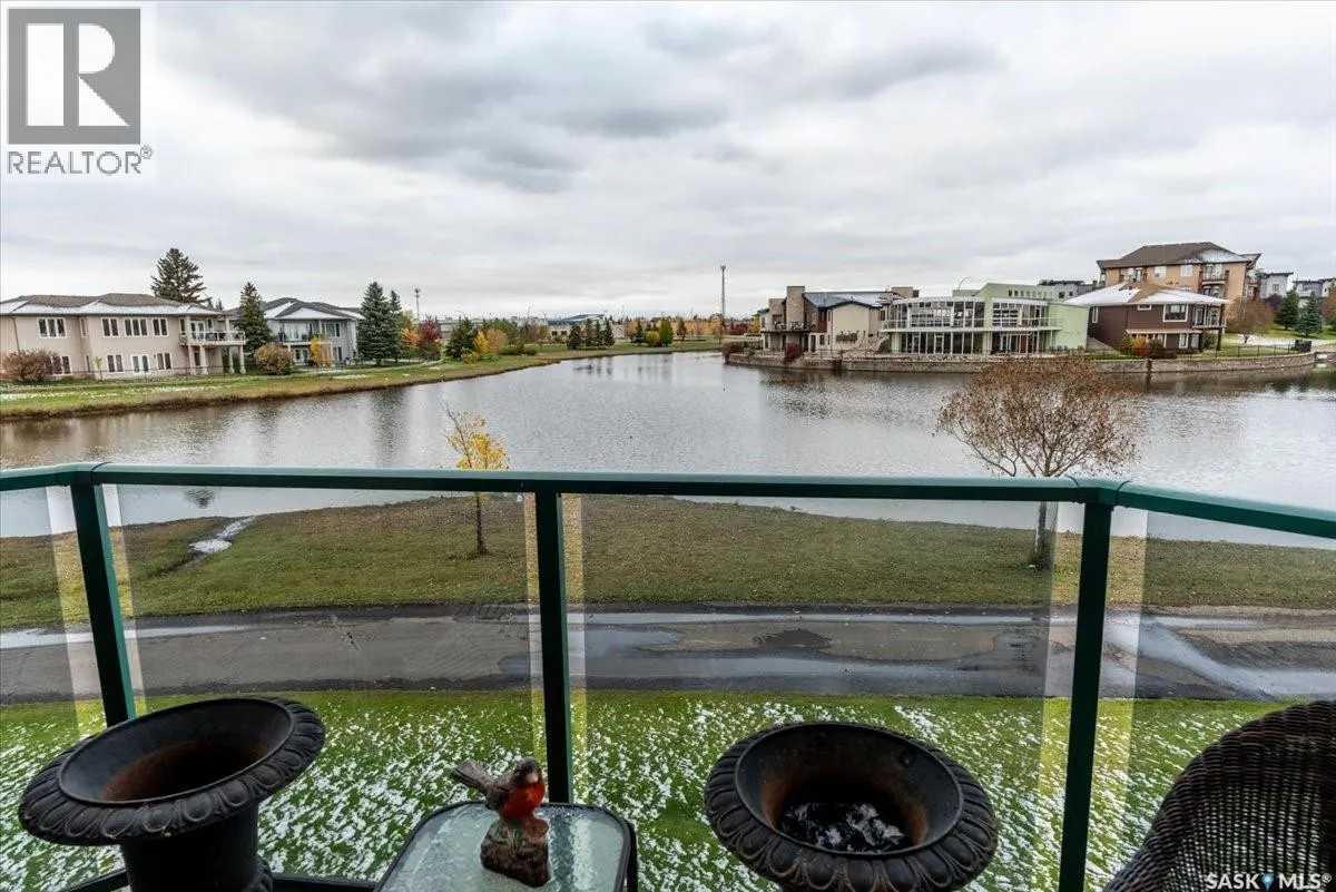 Located in Regina's highly sought after River Bend neighbourhood, the location simply cannot be beat with close proximity to Regina's top east end amenities including; Superstore, Wal-Mart, top restaurants, shopping, banks and many more. The north facing unit offers waterfront views, with a private well-sized balcony to enjoy you morning coffee and evening drinks. The first floor unit has been recently painted with a bright natural tone, new baseboards along with new flooring in the kitchen and baths. The kitchen offers plenty of cabinet and counter top space as the floor plan flows into the living room seamlessly. The primary bedroom features a 3-piece ensuite, with a 2nd bed and 4-piece bath completing the home. This condo includes underground parking keeping you out of the snow in the logn winter months along with extra storage. Have your agent book a showing today! (id:27476)