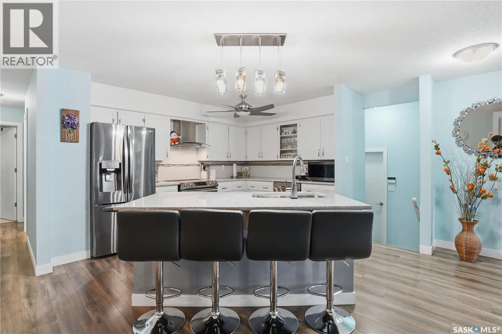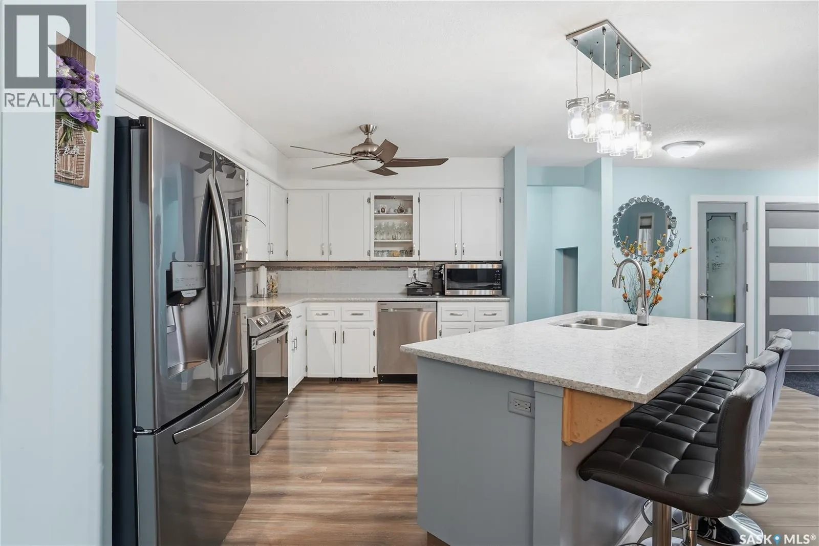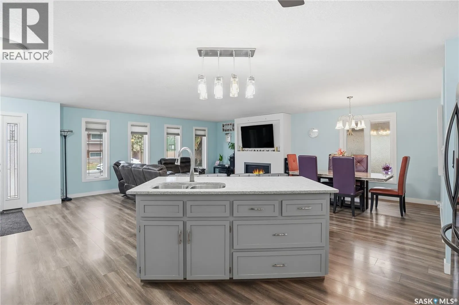 Great family home, 2x6 energy efficient construction, located on a quiet crescent close to elementary schools and parks. Nice street appeal with exterior LED lighting, wide open floor plan features living room with natural gas fireplace, dining area, kitchen with center island, plenty of cabinets, pantry and quartz countertops. There are 2 bedrooms on main floor plus laundry room (formerly a bedroom) The primary bedroom has 2 piece ensuite and built-in organizer in the closet, a full bath completes the main level, the Basement is fully finished with rec/room games room, 1 bedroom, den, full bath and plenty of storage space, direct entry to insulated 4 Car heated garage. Large well treed back yard with included sheds and patio area. The 900 sq ft garage with overhead storage offer endless opportunities for any garage enthusiast. All appliances, vinyl windows, Central air, E & O.E. As per the Sellerâs direction, all offers will be presented on 11/20/2025 4:00PM. (id:27476)
