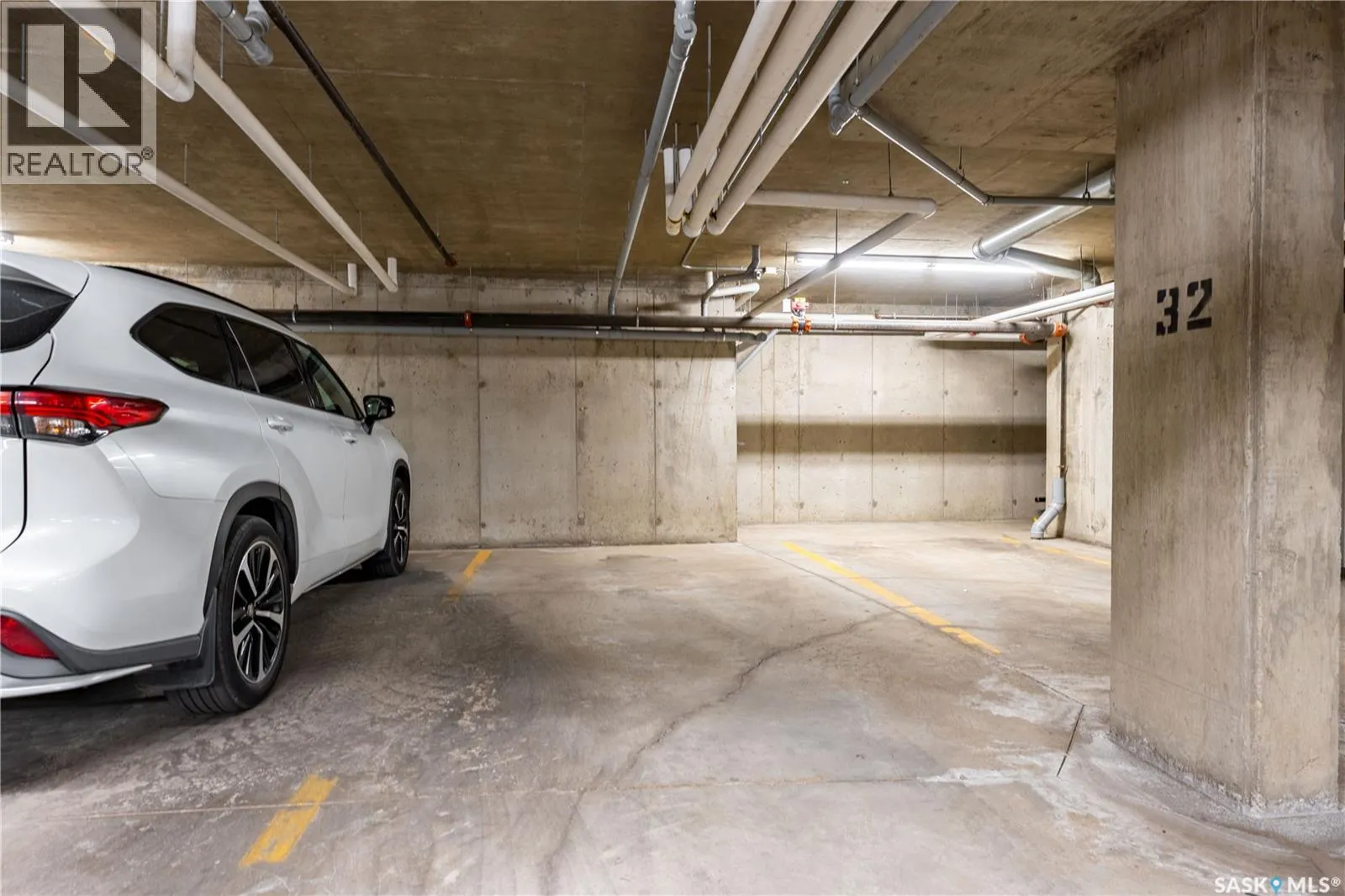 TWO conveniently located parking spots-one underground(32) and one surface stall(22) with immediate possession available on this move-in ready, mint condition 2 bedroom, den and 2 full bath home; all for $474.00 in condo fees with $75 towards reserve fund, estimate of $160 for water, sewer and heat, and, $239 towards overall condo maintenance which compares favorably with other complex complex monthly condo fees; owner pays power; the features of this unit include upgrades with hardwood in living area, ceramic tile in kitchen and back entry, stainless steel appliances and c/air; Levolor blinds; 2 carbon/smoke detectors replaced; recently cleaned carpets; fridge, stove, washer, dryer, dishwasher, c/air, microwave/range hood included. Water, sewer and heat included in condo fees. Extra hardwood and ceramic tile will be left with unit. (id:27476)