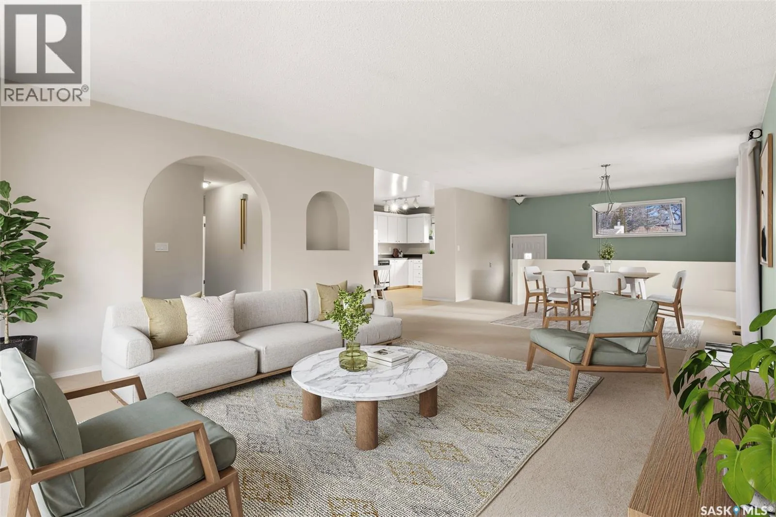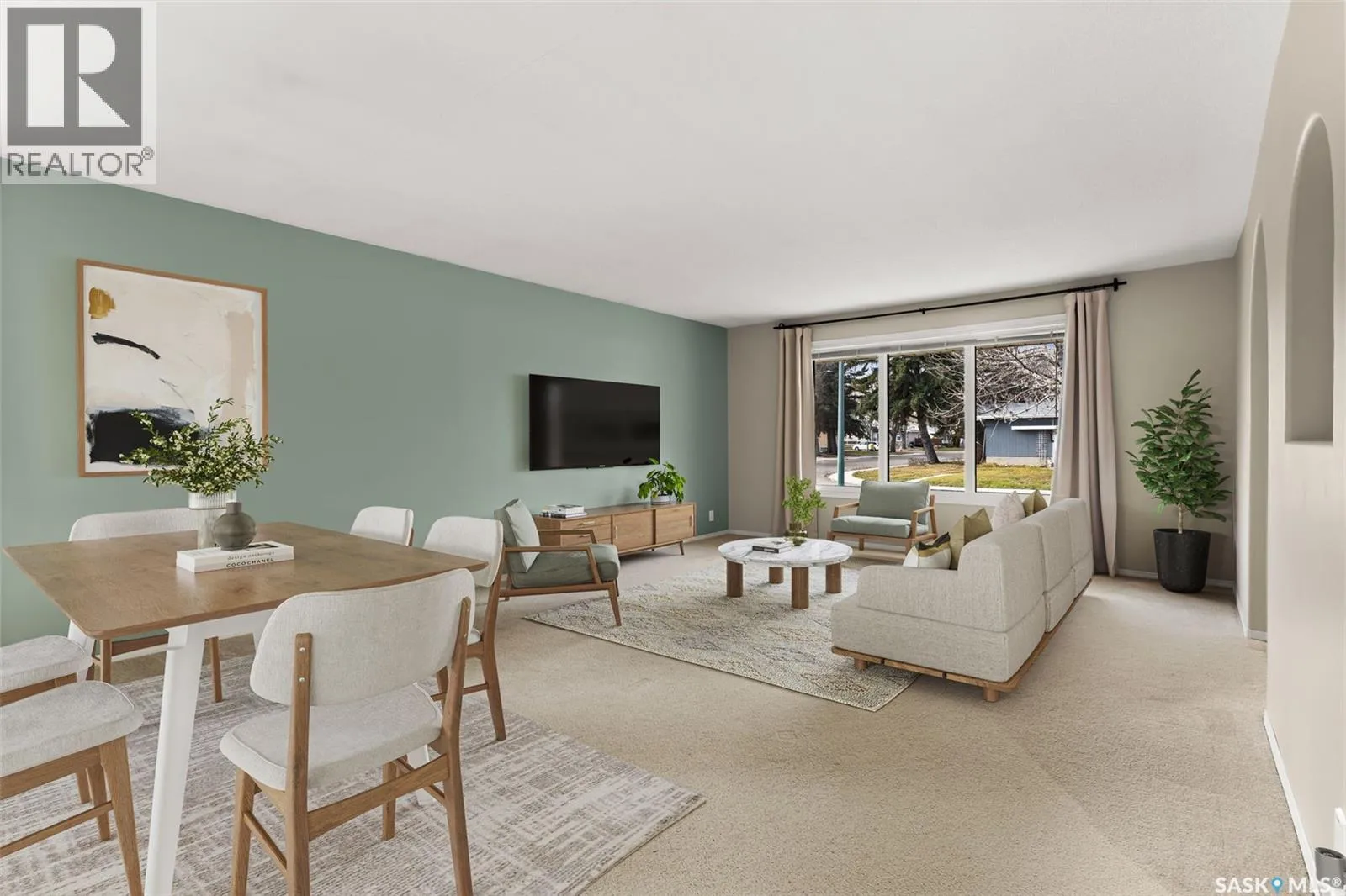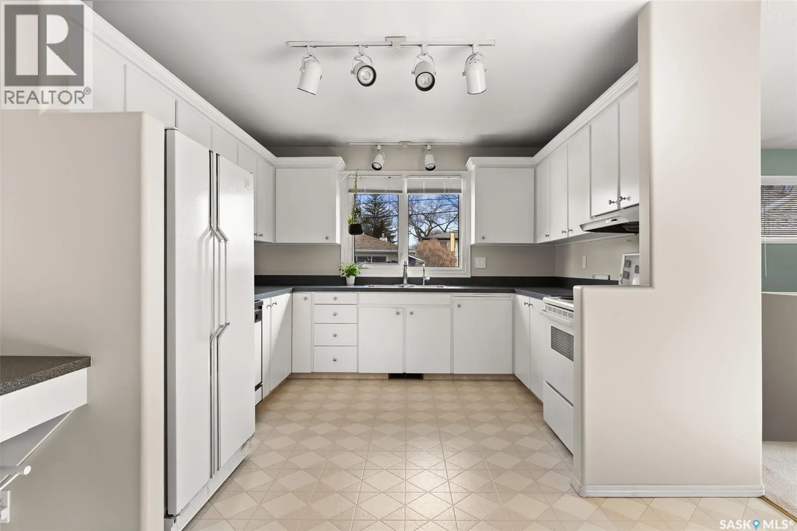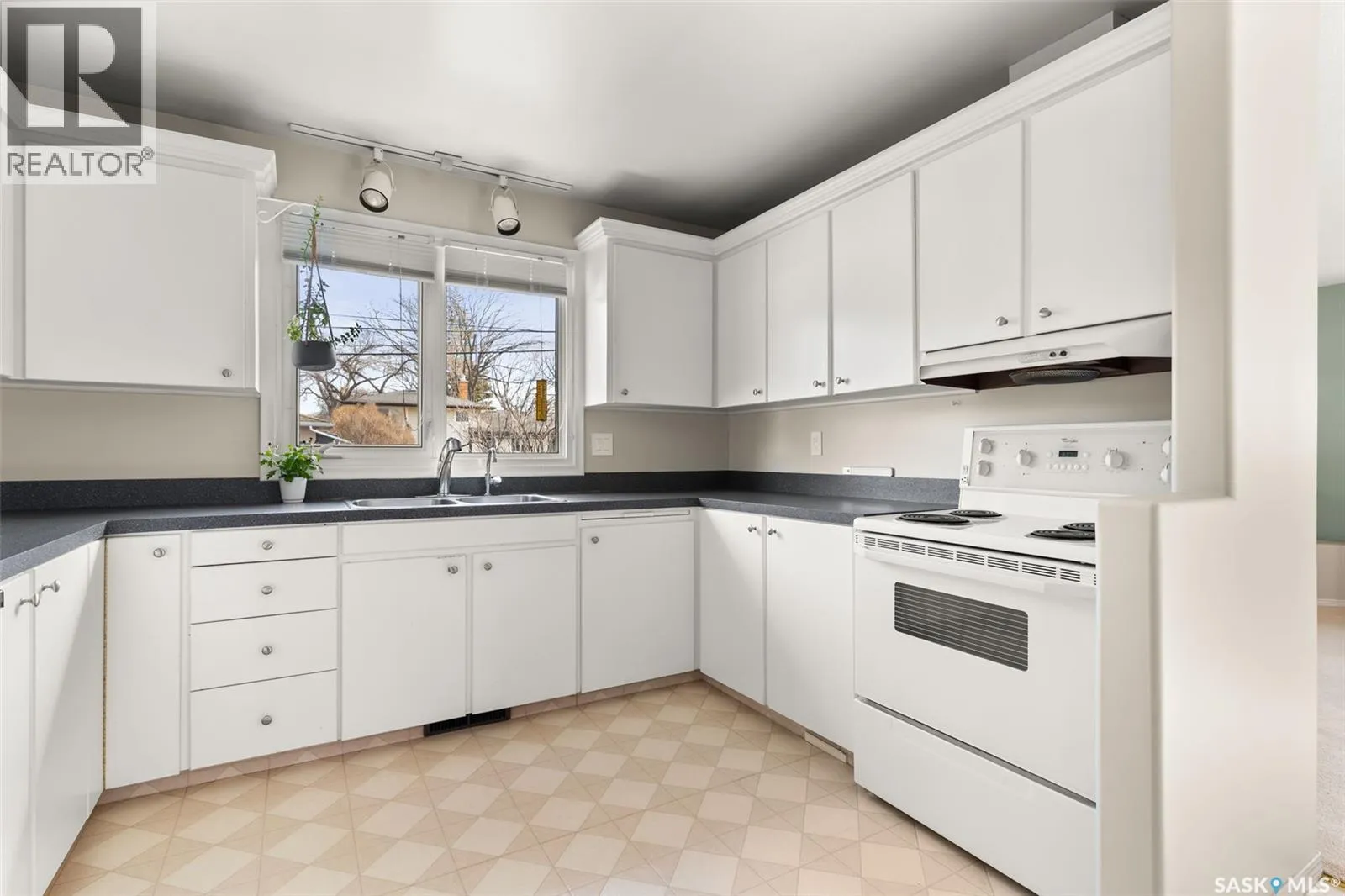 Welcome to this well maintained 1,489 sq ft bungalow, offering 3 bedrooms and 3 bathrooms on a quiet street in desirable Hillsdale. The home features a classic Tyndall stone front facade, giving it timeless charm and curb appeal. Inside, youâre greeted by a bright living and dining area, with a spacious kitchen at the back overlooking the private yard. The kitchen offers ample cupboard and counter space, separate eating area, and convenient main-floor laundryâeasily relocated back to the utility room if desired. The primary bedroom includes hardwood floors, dual closets, and a 3-piece ensuite. At the front of the home, youâll find two additional bedrooms with hardwood floors and a 4-piece bathroom. The lower level features a generous family room, a 3-piece bathroom, and a flexible bonus space perfect for an office, playroom, or games area. Outside, enjoy a single detached garage, ample driveway parking, and a lovely private fully fenced backyard. Conveniently located close to schools, all south Regina shopping, restaurants & services, and just minutes from Wascana Park and the University of Regina, this home perfectly blends comfort, updates, and a prime location. Donât miss the opportunity to own this exceptional Hillsdale bungalow. Note: Some photos have been virtually staged so you can see how to use the space. Contact your sales agent to schedule youâre viewing. As per the Sellerâs direction, all offers will be presented on 11/24/2025 11:00AM. (id:27476)