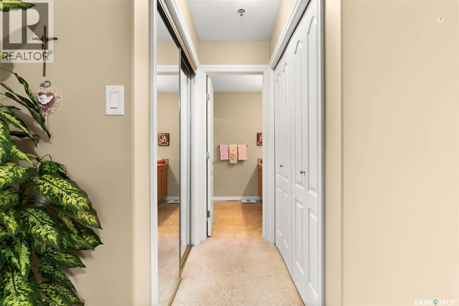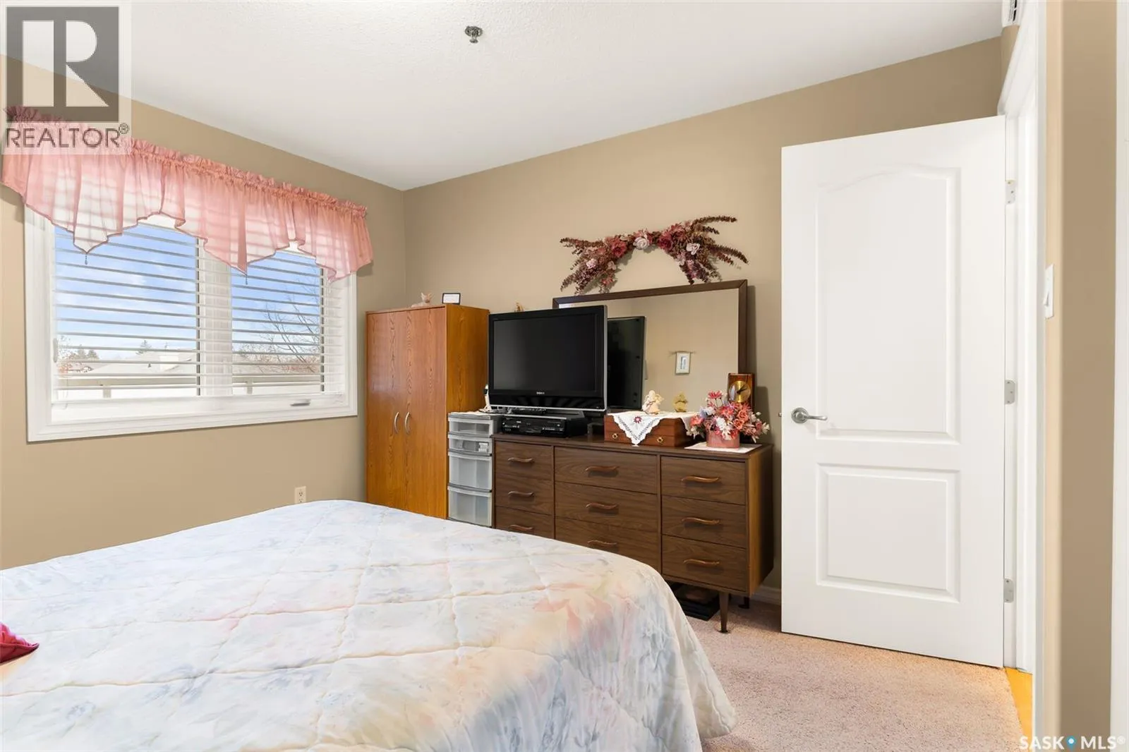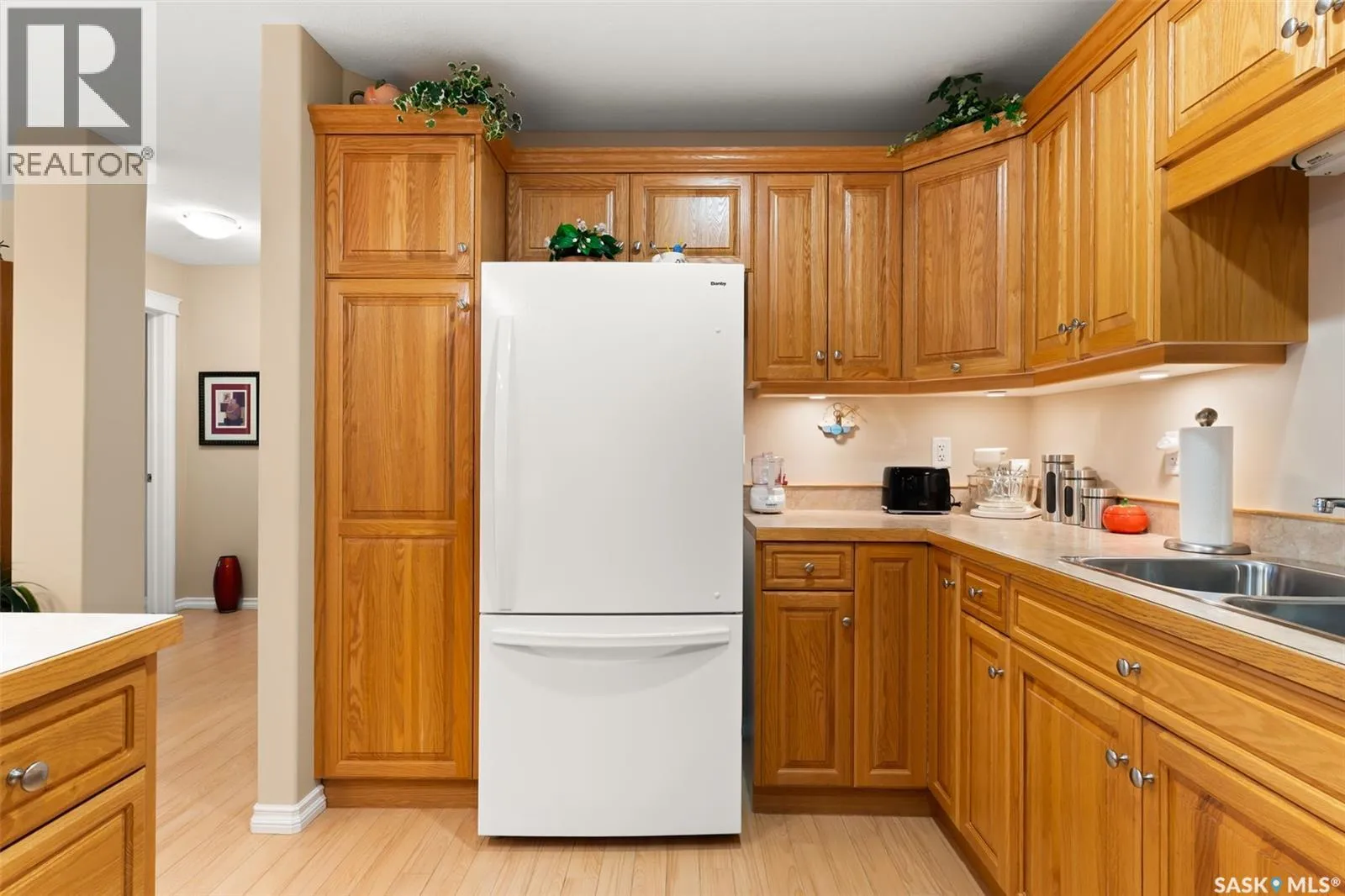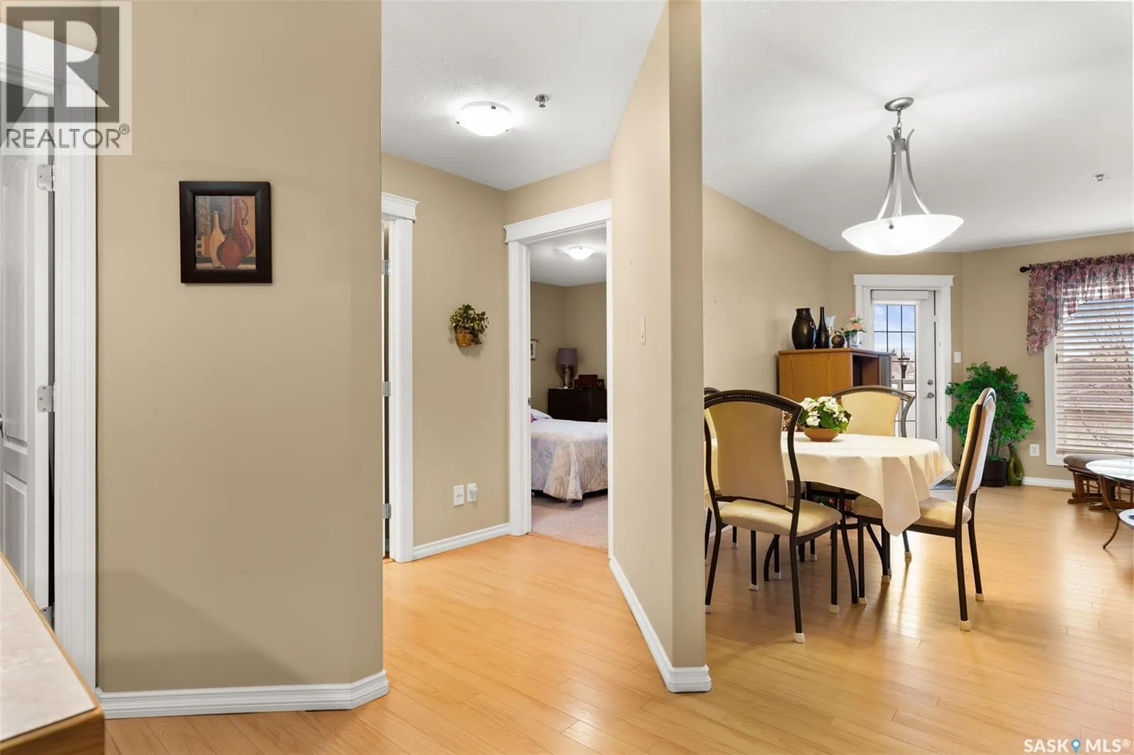 Donât miss the opportunity to own this west-facing condo featuring 2 bedrooms, 2 bathrooms, plus a den, a main living space filled with natural light. With 1,299 sq. ft., the layout begins with a spacious foyer that opens into the kitchen, dining, and living areas. The kitchen provides ample cabinets and counter space, while the dining area flows seamlessly into the family room. Step out onto the balconyâperfect for enjoying the afternoon sun. It also includes access to the furnace room with extra storage and a gas line for a BBQ hookup. The primary bedroom is generously sized, with a 3-piece ensuite offering excellent storage and counter space. The second bedroom is well-proportioned and conveniently located near the 4-piece bath, ideal for guests. The den is roomy, with a desk included to help you set up a dedicated workspace. In-suite laundry adds convenience and extra storage. The building offers thoughtful amenities: amenities room on the 2nd floor, guest suite on the 3rd floor, exercise room on the 4th floor. Youâll also appreciate the heated indoor parking stall with storage, plus a car wash bay on the parking level. Built by Fiorante Homes and located in desirable Wood Meadows, this condo is close to restaurants, shopping, and moreâa wonderful opportunity to enjoy east-end living. As per the Sellerâs direction, all offers will be presented on 11/24/2025 12:03AM. (id:27476)