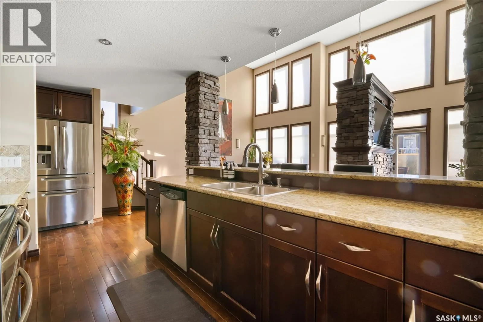 Welcome to this one-of-a-kind, custom-built 2,913 sq ft 2 storey with a triple attached garage in Windsor Park close to W.F. Ready Elementary School, Prince of Wales Park, Spruce Meadows Park and all east-end amenities. Upon entry, the tiled foyer leads to the open-concept main floor with 17ft ceilings and a floor-to-ceiling stone fireplace that divides the living and dining areas. Hardwood flooring flows throughout, and expansive floor to ceiling windows fill the space with natural light. The dining area offers views to the second floor and direct access to the back deck through garden doors. At the heart of the home is the gourmet kitchen, complete with stainless steel appliances, ample cabinetry & counter space, a large sit-up island with stone-accented pillars and a walk-in pantry. The main floor bedroom provides flexibility for guests or a home salon with R/I for a sink. Completing the main level is an office, 2-piece bathroom and mudroom/laundry area with extra storage and direct access to the garage. Upstairs, a spacious bonus room overlooks the living area below, maintaining the homeâs bright & open feel. The primary suite is a true retreat with a fireplace & luxurious 5-piece ensuite with dual sinks, jetted tub, walk-in shower and direct access to the walk-in closet. Two additional bedroomsâeach with its own walk-in closetâand a 4-piece bathroom complete the 2nd floor. The basement offers incredible potential with an interior side entrance, vapour barrier and insulation completed, drywall, R/I for a bathroom & wet bar and electrical outlets on exterior walls. With room for 2 additional bedrooms, a kitchen, bathroom & living area, it's ideal for multigenerational living or a suite development. Step outside to a fully PVC fenced backyard that includes a large deck with obscured glass panels, natural gas BBQ hookup and concrete patio below with shrubs for added privacy. This stunning home is move-in ready and offers exceptional quality, space and versatility. (id:27476)