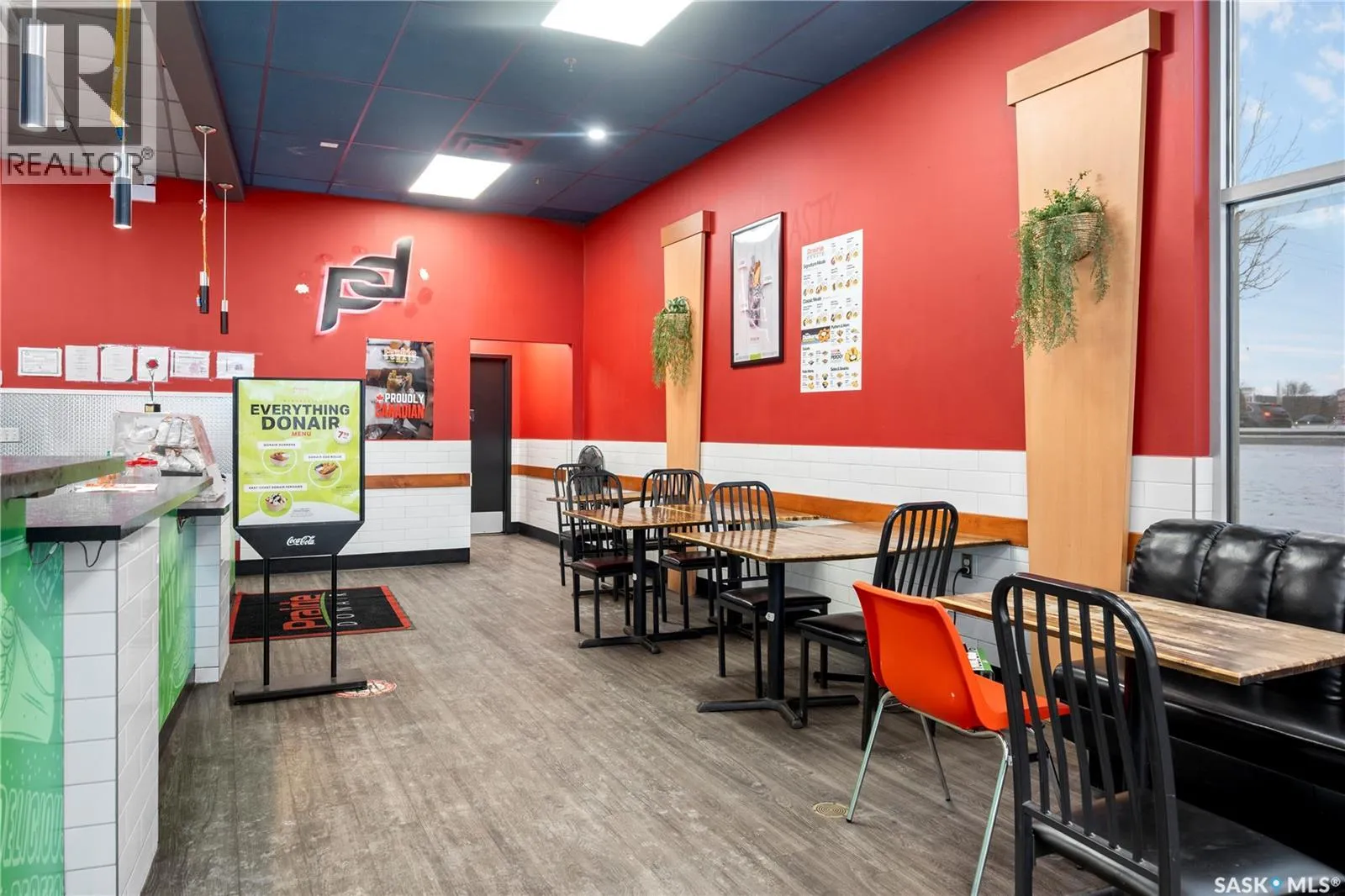 Excellent opportunity to own a well-established and profitable Prairie Donair franchise located in a high-density, high-traffic area on Rochdale Boulevard. This 1,500 sq. ft. operation features a clean, well-maintained interior with seating for dine-in guests as well as efficient take-out service. Positioned in one of Northwest Reginaâs busiest commercial corridors, the business benefits from strong visibility, consistent foot and vehicle traffic, ample on-site parking, and close proximity to major residential neighbourhoods and amenities. The sale includes all existing equipment, signage, permits, and the tradenameâproviding a true turnkey setup with a solid foundation and outstanding potential for continued growth. This is a rare opportunity to step into a successful, proven concept in a highly sought-after location. Donât miss your chance to own a profitable, reputable business in a prime, high-demand area. (id:27476)