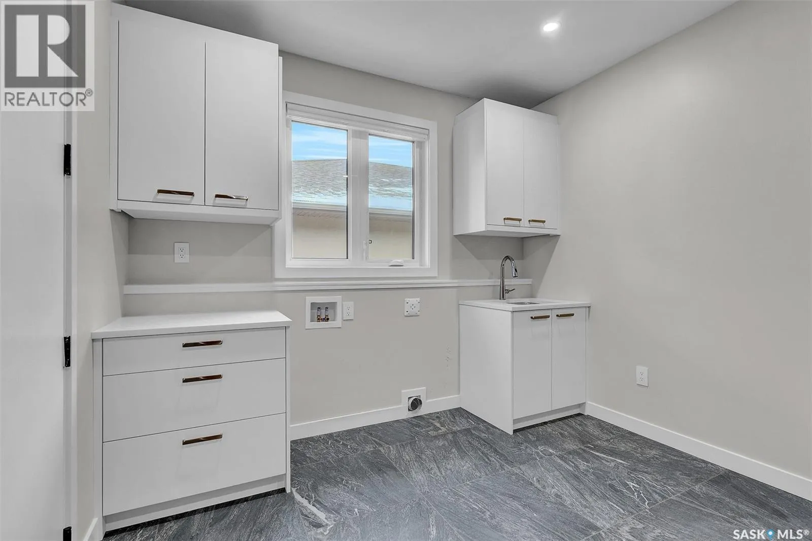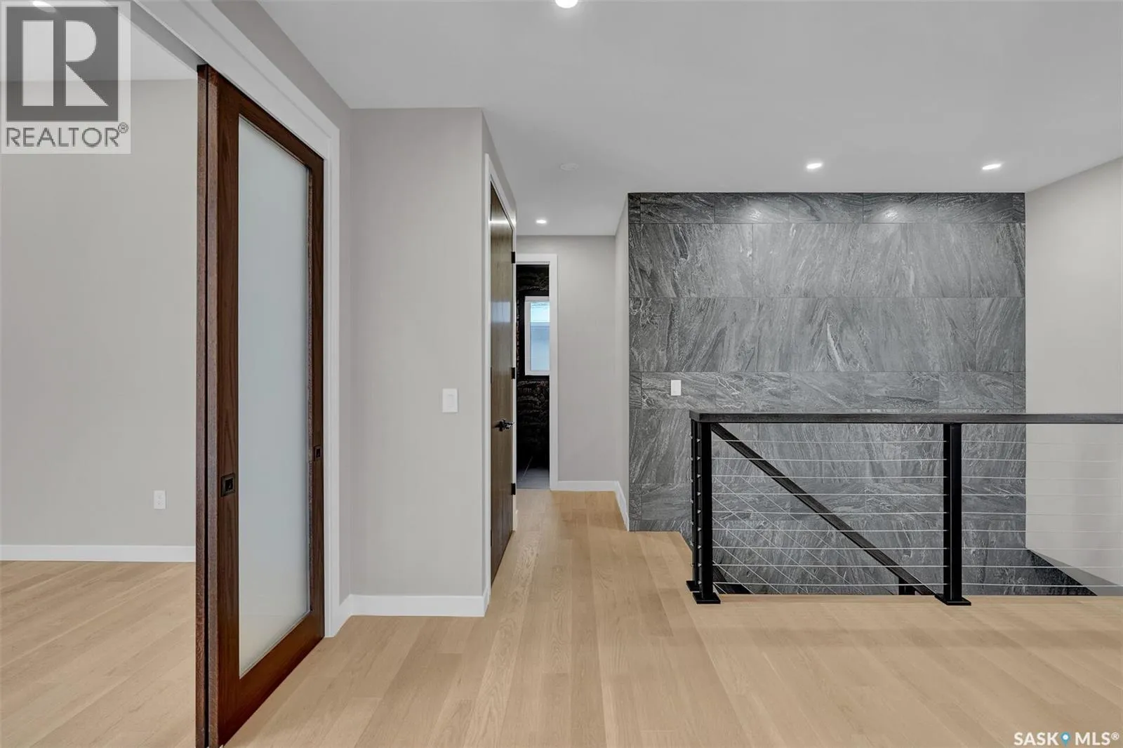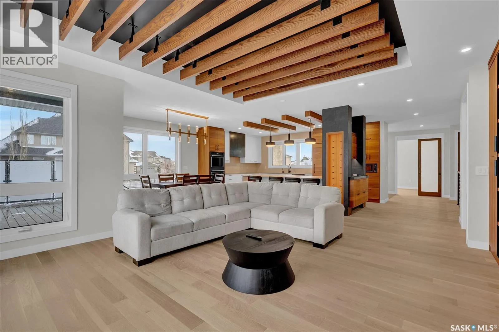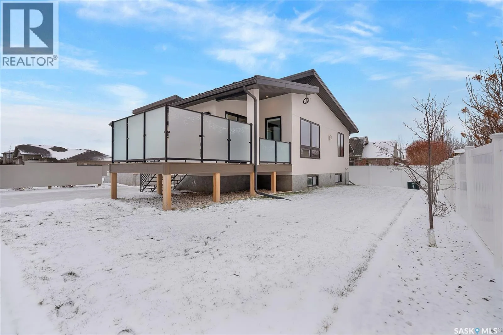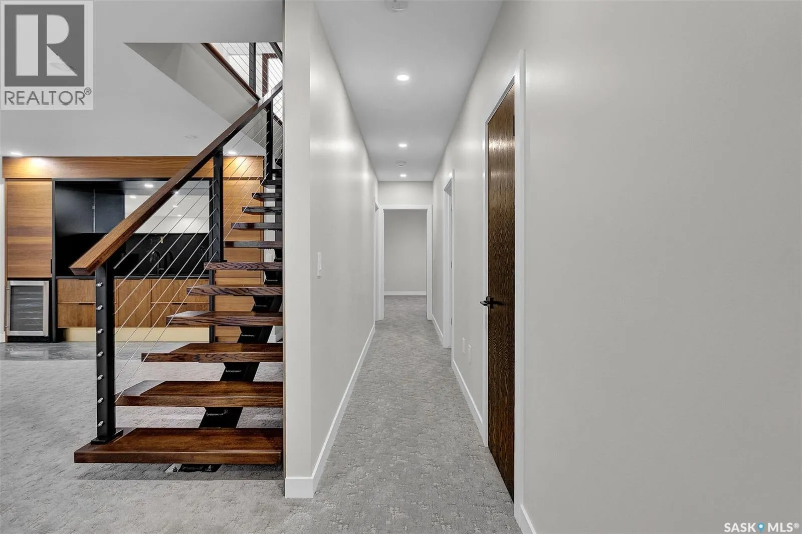 Mid-century modern by one of Regina's most respected builders: Westmount Homes (Tom Moore). Thoughtful design, remarkable craftsmanship & the builder's signature commitment to quality. Adjacent to an open space easement, this home will impress! Main floor 9' ceiling & suspended beams in great room ,gas fireplace wrapped in blackened steel, & custom millwork. Flooded with natural light, the space flows to dining area & the gourmet kitchen that is as functional as it is beautiful. Custom cabinetry, a large quartz topped island W generous amount of drawers & wine fridge. Built in JennAir fridge, coffee bar, blackened steel hood fan, induction cooktop (gas line available), double ovens ,light-sensored garbage/recycling drawer, & cabinet W black quartz countertop & wine racks. Front den has 11' ceiling & frosted sliding door. Primary bdrm features a showstopper ensuite:double sinks, floating vanity, heated floor, soaker tub, glass shower & walk-in closet. Laundry/mud room W wall of custom designed cupboards, cabinets & sink. Engineered hardwood floors & tile throughout main floor. Powder room. Tile wall adjacent to floating tread staircase W steel cable railing. Expansive family rm 2 large windows & custom-built wet bar W fridge. Two big bedrooms W walk-in closets, linen closet & stunning ¾ bath W glass shower. Storage space in furnace/utility room. 26' x 26' garage with 13'4" ceiling, floor drain and epoxy coated floor. Patio doors from the dining area open to the Trek deck with staggered frosted inserts in the railing and steps to the lower-level exposed aggregate patio.Underground sprinklers in front and back.The home is fully spray foamed, structural floor & built on piles. 200 AMP 84 circuit electrical panel, high efficient furnace & triple pane windows. Heavy duty soffits & eavestroughs & Standing Seam Metal Roof. Two stuccoed privacy walls in front. The home comes with Westmount Homes New Home Warranty. This home is a definite must to view! (id:27476)