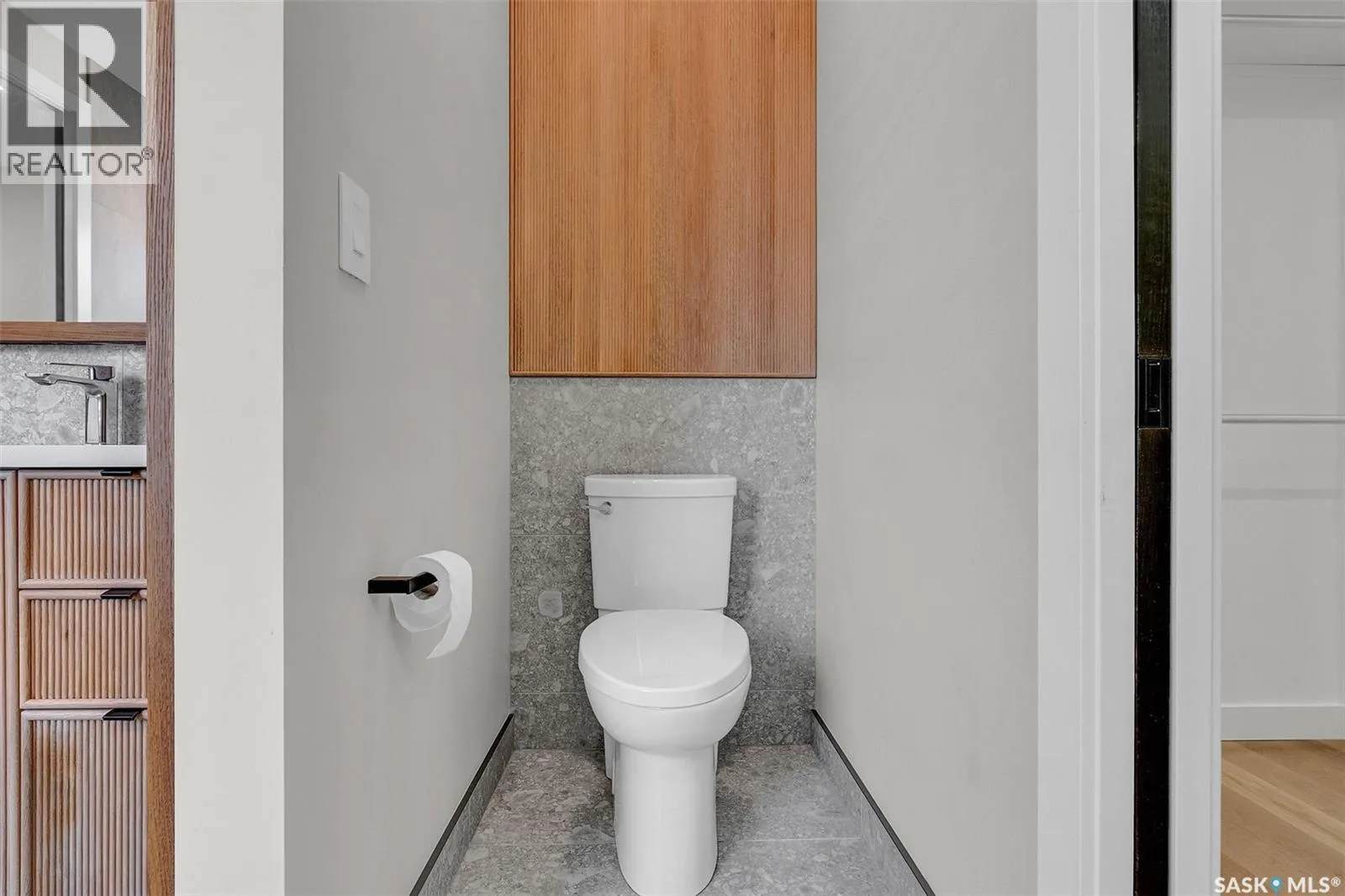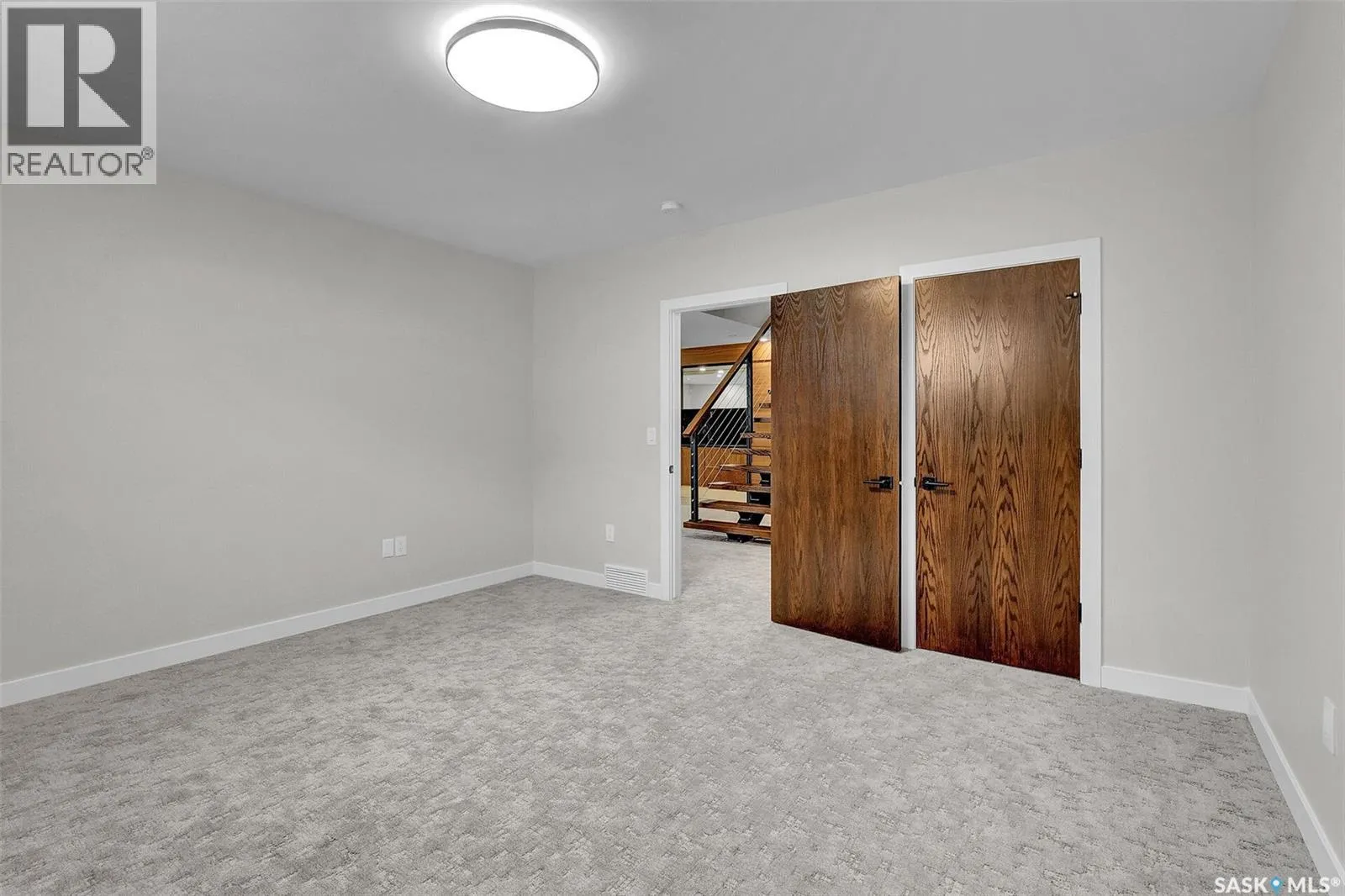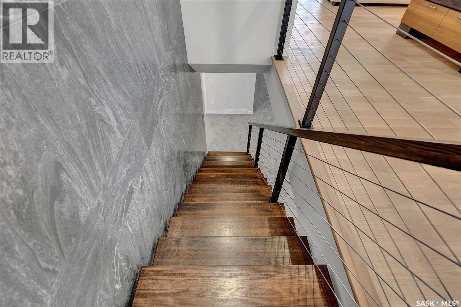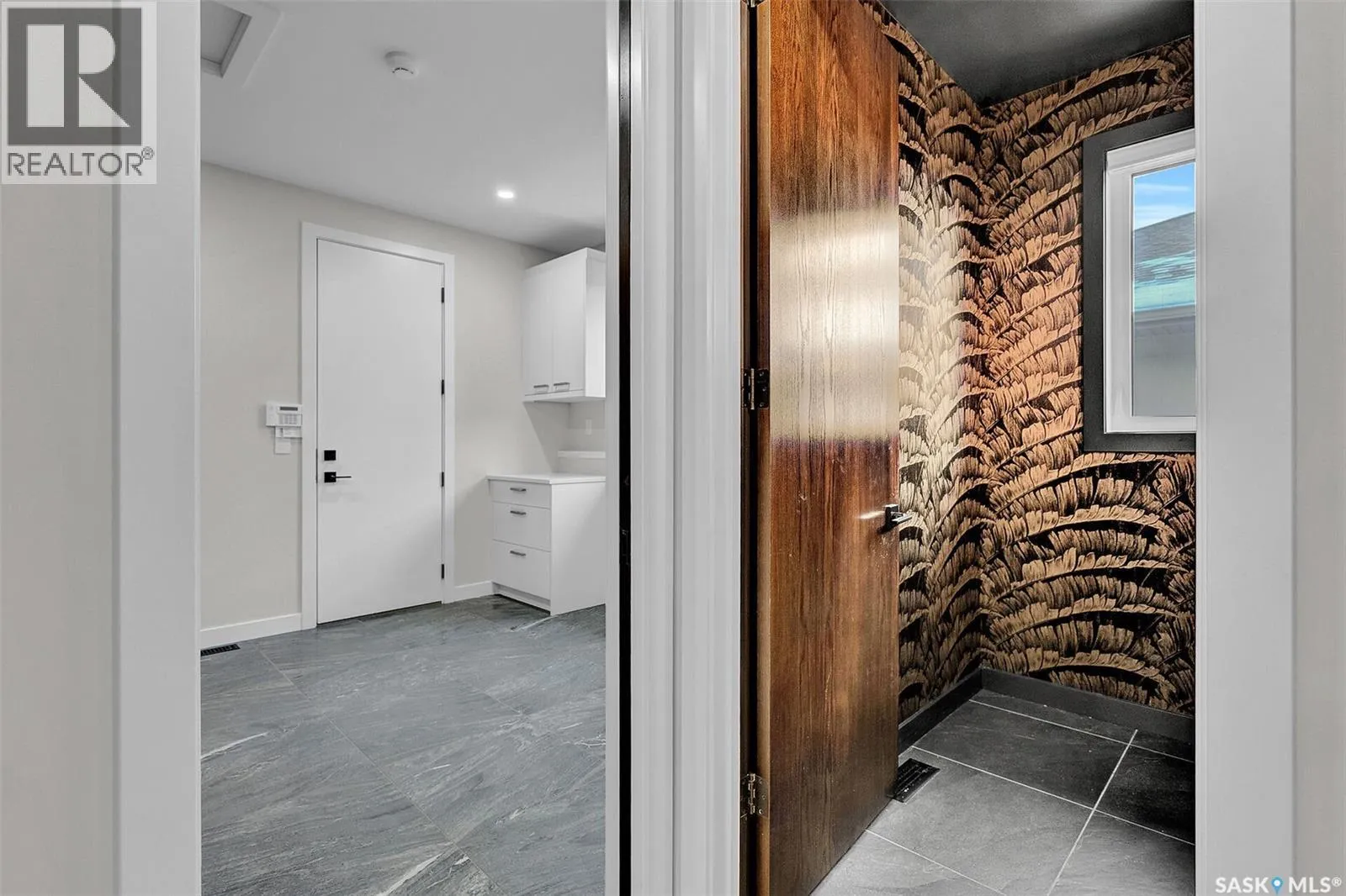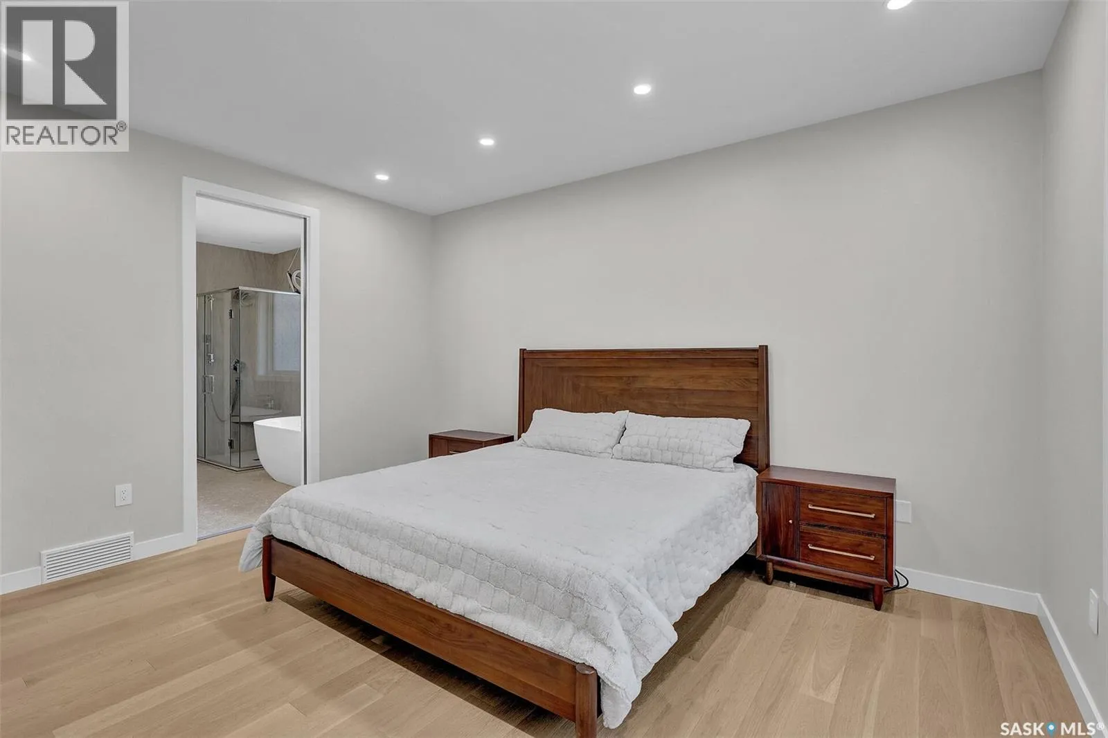 Mid-century modern by one of Regina's most respected builders: Westmount Homes (Tom Moore). Thoughtful design, remarkable craftsmanship & the builder's signature commitment to quality. Adjacent to an open space easement, this home will impress! Main floor 9' ceiling & suspended beams in great room ,gas fireplace wrapped in blackened steel, & custom millwork. Flooded with natural light, the space flows to dining area & the gourmet kitchen that is as functional as it is beautiful. Custom cabinetry, a large quartz topped island W generous amount of drawers & wine fridge. Built in JennAir fridge, coffee bar, blackened steel hood fan, induction cooktop (gas line available), double ovens ,light-sensored garbage/recycling drawer, & cabinet W black quartz countertop & wine racks. Front den has 11' ceiling & frosted sliding door. Primary bdrm features a showstopper ensuite:double sinks, floating vanity, heated floor, soaker tub, glass shower & walk-in closet. Laundry/mud room W wall of custom designed cupboards, cabinets & sink. Engineered hardwood floors & tile throughout main floor. Powder room. Tile wall adjacent to floating tread staircase W steel cable railing. Expansive family rm 2 large windows & custom-built wet bar W fridge. Two big bedrooms W walk-in closets, linen closet & stunning ¾ bath W glass shower. Storage space in furnace/utility room. 26' x 26' garage with 13'4" ceiling, floor drain and epoxy coated floor. Patio doors from the dining area open to the Trek deck with staggered frosted inserts in the railing and steps to the lower-level exposed aggregate patio.Underground sprinklers in front and back.The home is fully spray foamed, structural floor & built on piles. 200 AMP 84 circuit electrical panel, high efficient furnace & triple pane windows. Heavy duty soffits & eavestroughs & Standing Seam Metal Roof. Two stuccoed privacy walls in front. The home comes with Westmount Homes New Home Warranty. This home is a definite must to view! (id:27476)