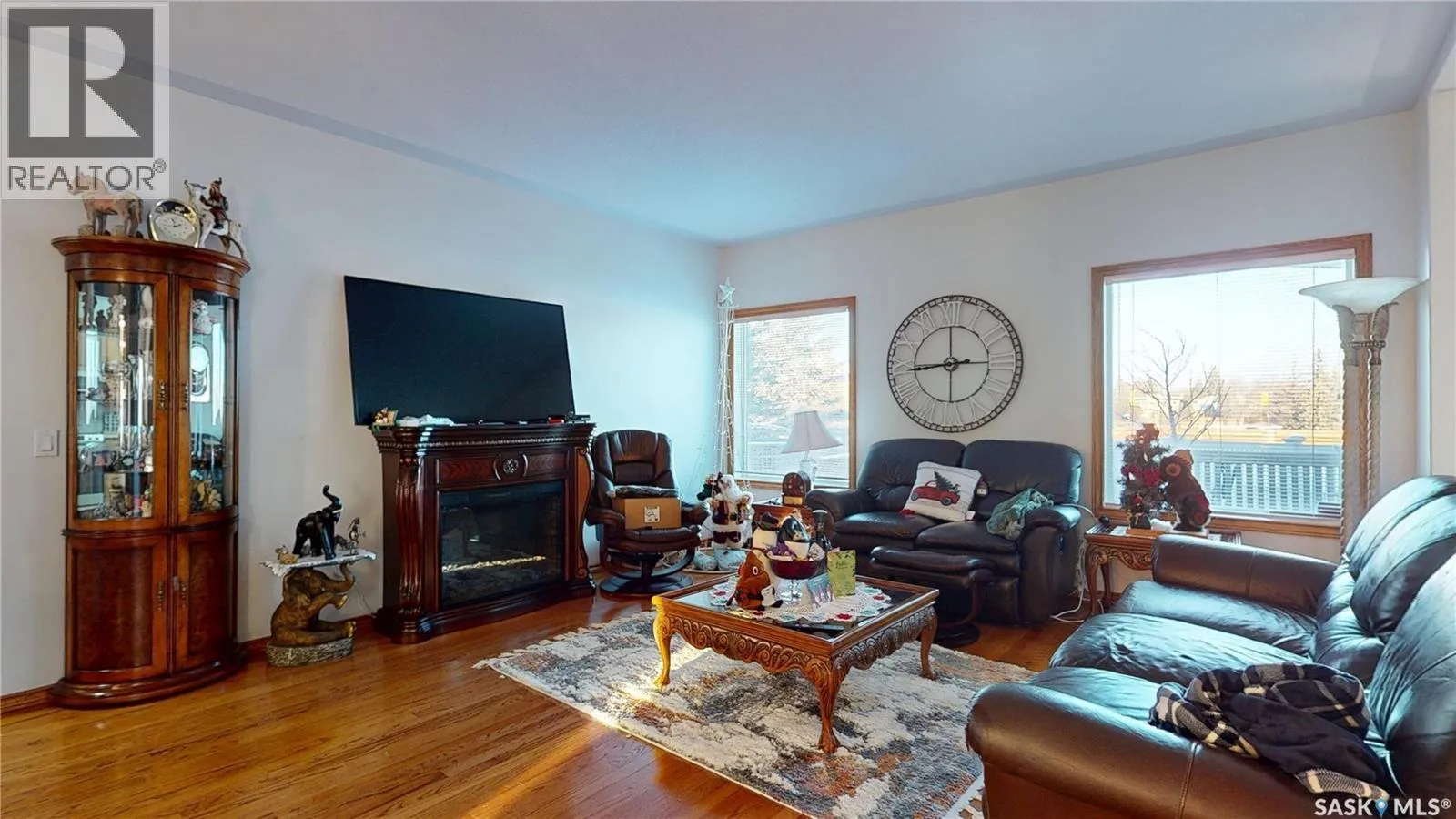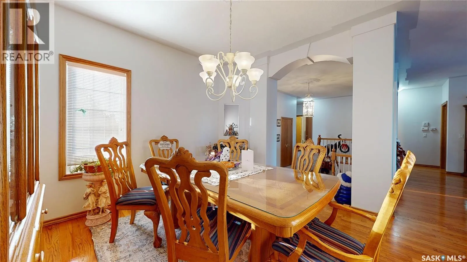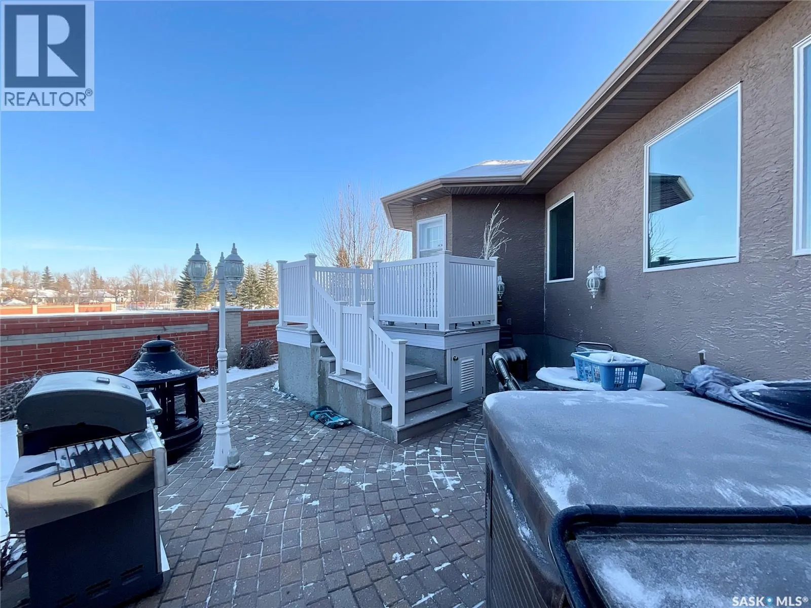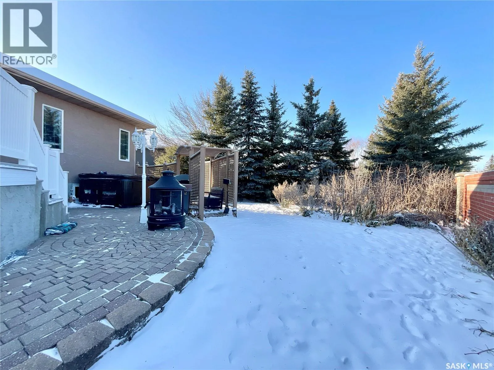 Welcome home to this beautifully crafted 1,721 sq. ft. bungalow in prestigious Wascana View! Custom built by Westmount Homes and lovingly cared for, this exceptional property sits on a quiet crescent just steps from a large park and an elementary schoolâan ideal setting for families and those seeking a peaceful, well-established neighbourhood. From the moment you arrive, the homeâs curb appeal stands out with its interlocking block driveway and inviting front entry. Inside, you'll find thoughtful design and quality craftsmanship throughout. The spacious foyer opens to elegant living and dining rooms featuring hardwood floors. The kitchen features an abundance of cabinetry by Rickâs Custom Cabinets, a convenient computer desk, perfect for everyday living and meal prep, a kitchen-dining area and a mudroom off the back door. The generous primary bedroom includes a walk-in closet and a full ensuite with a separate soaker tub and a large shower. A second bedroom with hardwood flooring, a second full bathroom, and main-floor laundry with built-in cabinetry and sink add comfort and convenience. Enjoy direct access to the insulated, drywalled double garage. The fully developed basement provides even more living space, including a large family room, two additional bedrooms, a full bathroom, storage rooms, and a workout area, making it ideal for any hobbies. The home is built with high-end construction features, including open-web floor trusses, a heated crawl space beneath the wooden basement floor, and two furnaces with central air (new) for year-round comfort, and new paint throughout. The backyard is beautifully landscaped and sits on a 8944 sq ft pie-shaped lot, featuring underground sprinklers, a deck, a large patio area, trees, bushes, and a gardening area, all with no neighbours behind you. This truly exceptional home is ready for its next perfect owner. Come experience all that this beautiful home has to offer! (id:27476)