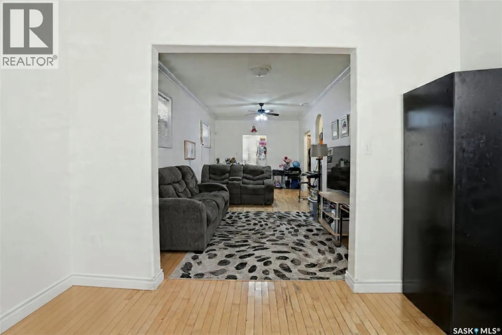 Own for Less Than Rent â Affordable, Move-In-Ready Bungalow! Why rent when you could own your own home for approximately $763/month, including mortgage and property taxes? (Estimated based on a 5-year fixed rate of 4.19% at time of listing.) A great opportunity for first-time buyers looking for affordability and long-term value. Over 800 sq. ft. bungalow features a bright main level with maple hardwood floors, 9' ceilings, crown mouldings, and rounded corners. The layout includes two spacious bedrooms, an updated 4-piece bathroom with a relaxing soaker tub and espresso vanity, a dining area, comfortable living room, and an inviting galley kitchen. The open basement is ready for future development, and the seller is including gyproc to help you get started. Outside, youâll find a fully fenced yard, a 12' x 12' deck, and convenient lane access with room to build a garage. Key updates include: Eaves, plumbing, electrical, sewer line, PVC triple-pane low-E argon windows (except front foyer) noted from a previous listing 2004. Shingles and insulated vinyl siding (2019) Located on a quiet, nice block, close to the Armories and just a few blocks from Pasqua Hospital. With low property taxes and a price that makes homeownership truly attainable, this home offers incredible value. Priced to sellâbook your viewing today! (id:27476)