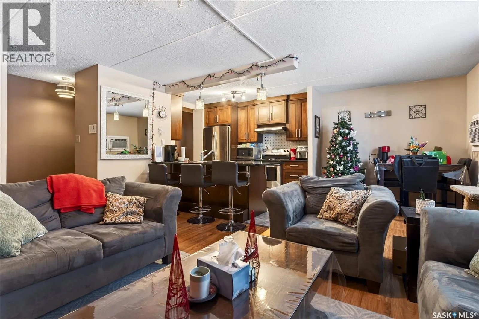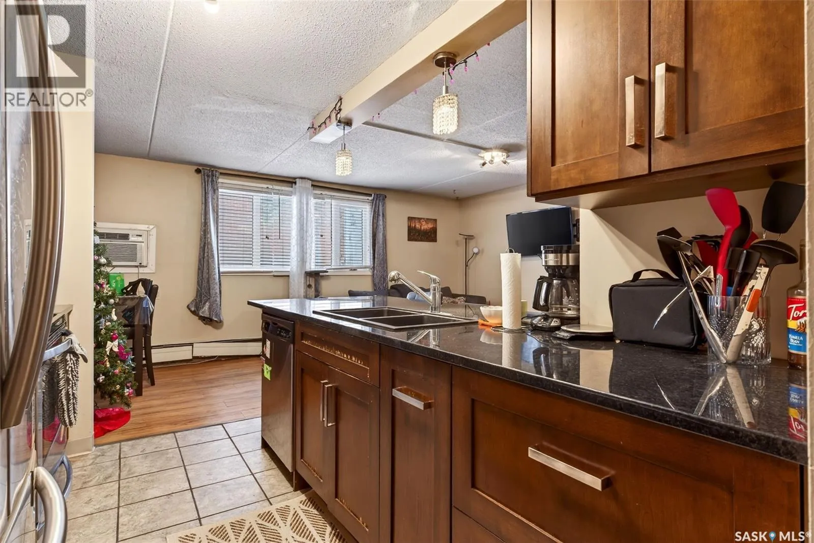 Welcome to this beautifully updated 2 bedroom, 1 bathroom condo located in the highly desirable Hillsdale neighbourhood, just steps from the University of Regina. This unit has seen extensive renovations over the years and offers a modern, open-concept layout that feels both stylish and functional, beginning with an updated entry door and triple-pane windows that enhance both comfort and energy efficiency. The kitchen features granite countertops, stainless steel appliances including a built-in dishwasher, rich brown cabinetry, and a convenient eat-up bar that flows seamlessly into the spacious living room, perfect for relaxing or entertaining. Durable ceramic tile runs through the entry, kitchen, bathroom, and laundry room, while vinyl plank flooring extends throughout the remainder of the unit for a cohesive and low-maintenance finish. Both bedrooms are generously sized, and the updated 4-piece bathroom showcases matching granite countertops and cabinetry that ties beautifully into the kitchen design. In-suite laundry adds everyday convenience and truly sets this condo apart. Whether youâre a student, professional, first-time buyer, or investor, the location is hard to beat. Just a stoneâs throw from the University of Regina, Stoneâs Throw Café, parks, transit, and all south-end amenities. An excellent opportunity to own rather than rent, or to add a strong rental property to your portfolio. (id:27476)