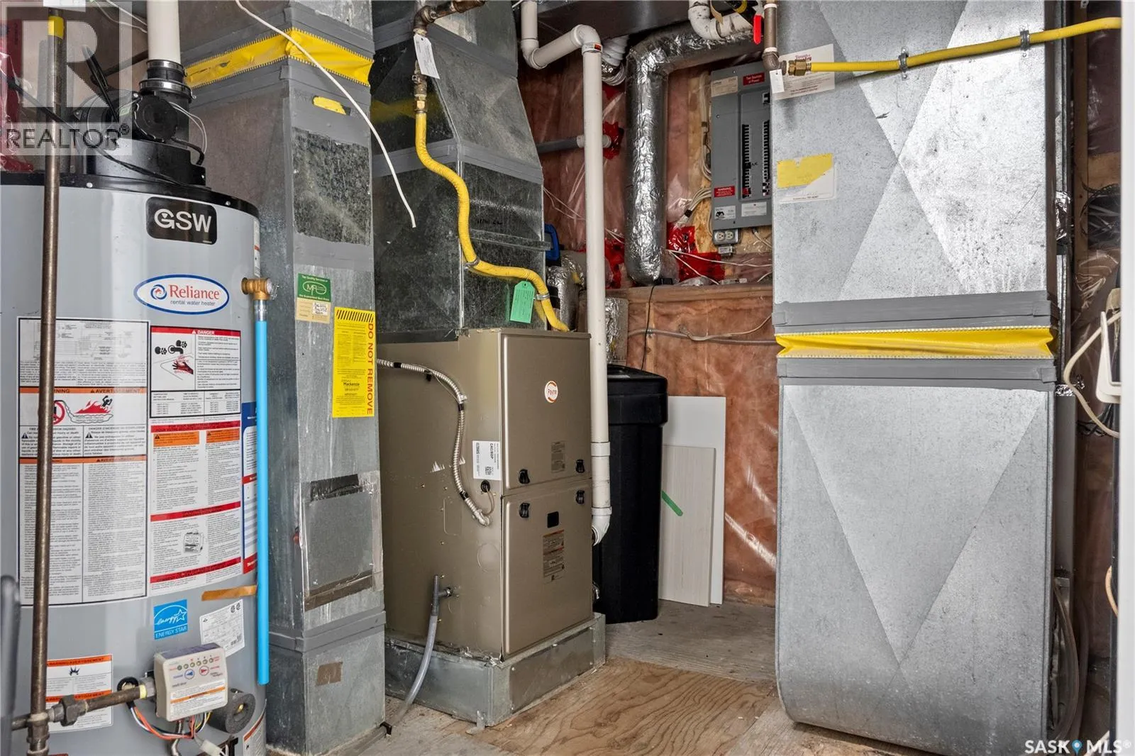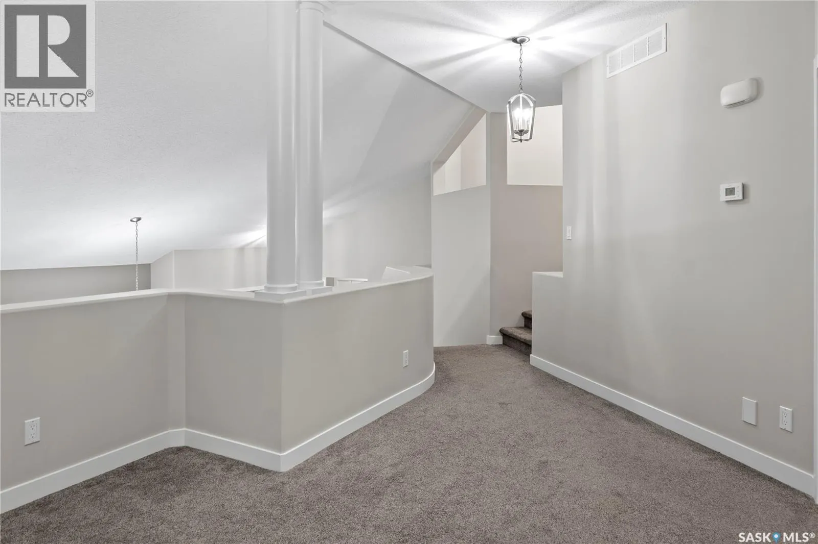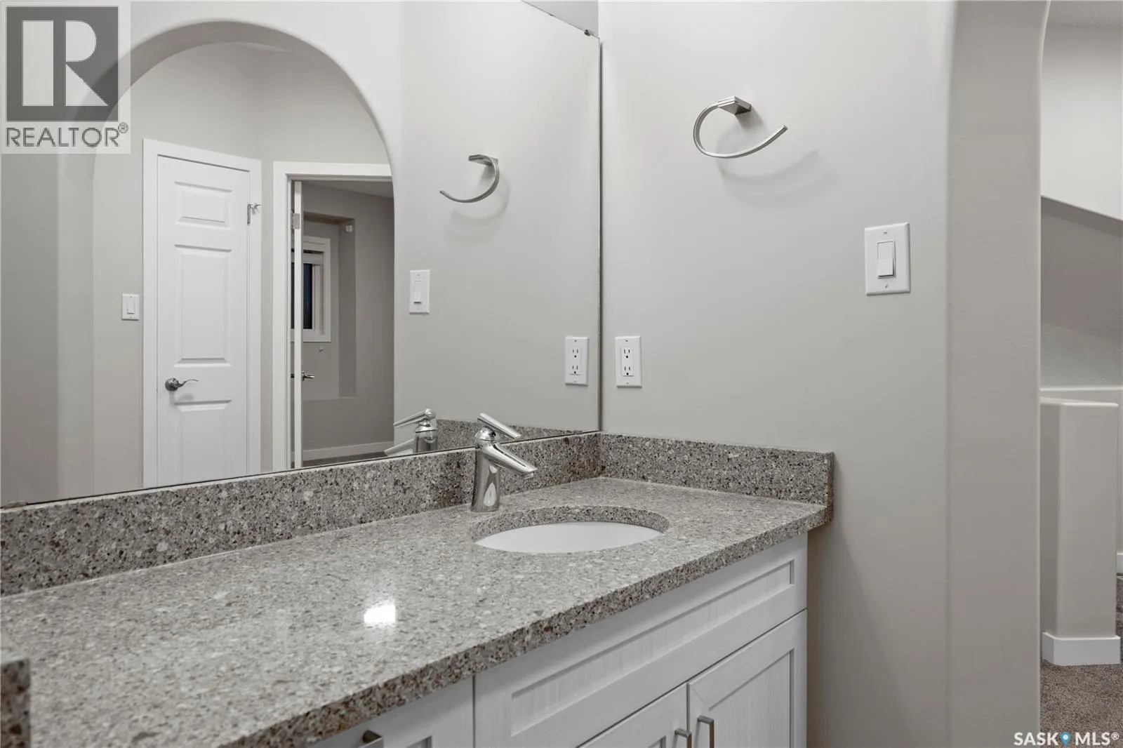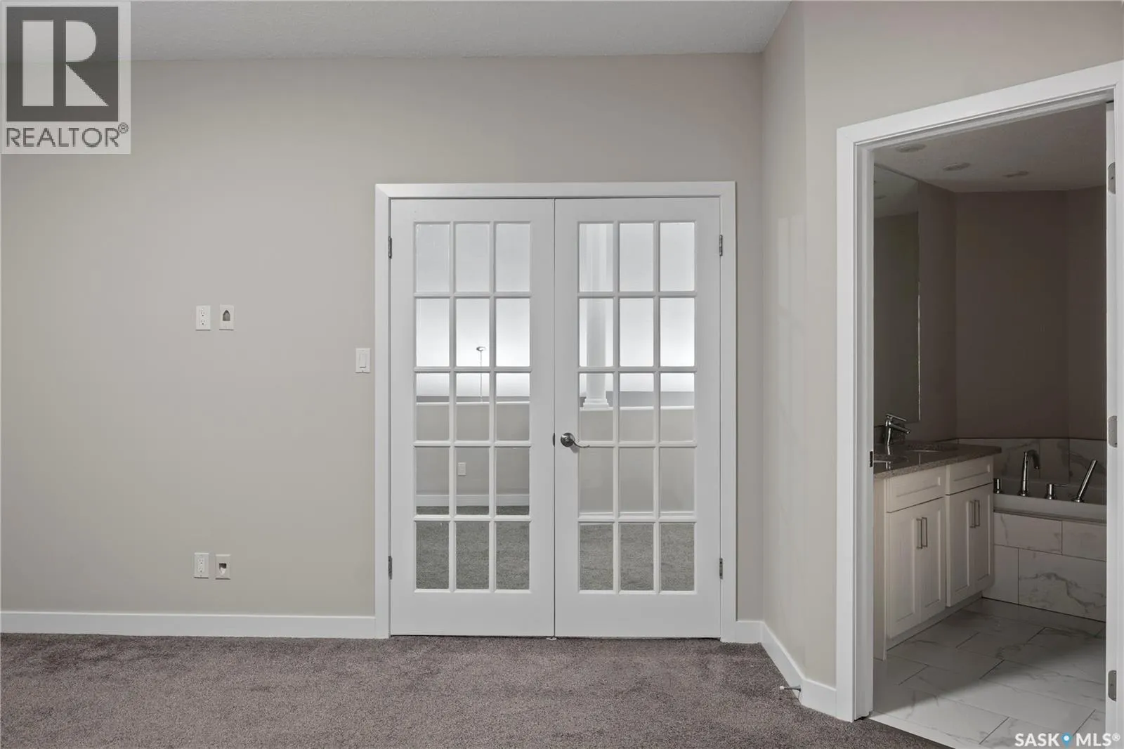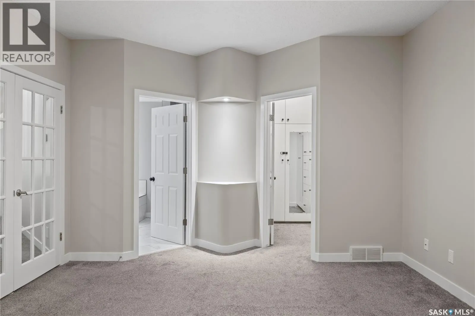 Welcome to 5006 Wascana Vista Court. This former show home is nestled in the sought-after Wascana View neighborhood. This quiet cul-de-sac location backs onto a walking path, offering convenient access to east-end amenities and schools. This two-story split home features 4bd, 3ba, and a spacious 32x24 triple attached insulated garage. The exterior and landscaping are very low maintenance, with a xeriscaped front yard, stucco siding, and a backyard with multiple patio areas and artificial turf. Upon entering, you are greeted by a foyer with 2 closets and tile flooring. A curved staircase descends into the expansive great room, featuring massive windows that provide views of the greenspace. The formal dining room is separated from the great room by a 3 sided gas fireplace. Overlooking the dining room is the updated kitchen, complete with ample cabinet space, quartz countertops, a tile backsplash, and included stainless steel appliances. Next, an additional versatile room can serve as a family room, or reading nook. Adjacent is a main floor bedroom, with natural light from a rear window. The main floor also includes a 2pc bathroom, a large laundry room, and a utility room housing 2 new furnaces and a air conditioner (installed June 2025), a rented water heater, and an r/o system. A storage area completes this level. Ascending a curved staircase, you arrive at a bonus room, located next to the master. The master suite has French doors, expansive windows, a custom-built walk-in closet, and a luxurious 5pc ensuite bathroom with 2 sinks, a jet tub, a custom tile shower, and heated floors. A few more stairs lead to the top floor that has an additional nook, 2 generous bedrooms, and a 5pc bathroom equipped with double sinks and a deep soaker bathtub. The entire home has been recently painted, and significant energy efficiency upgrades were made in 2023, including new shingles and solar panels. Certain photos have been digitally staged and are clearly marked. (id:27476)